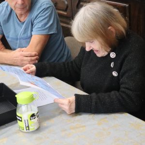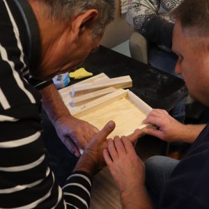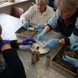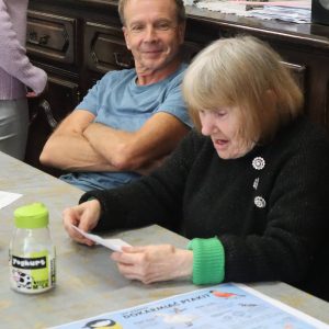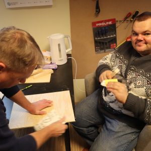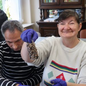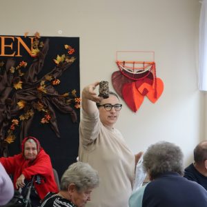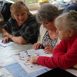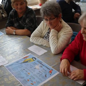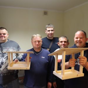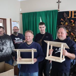 Podsumowaniem i jednocześnie zakończeniem naszego spotkania, było zaprezentowanie wykonanych przez męską grupę ochotników, która pod czujnym okiem Pana Wojtka wykonała dwa piękne karmiki dla ptaków.