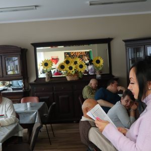 Wiosną wspólnie z uczestnikami sadziliśmy metodą partyzancką słonecznik, jednak jak to z partyzantką bywa nie wszystkie nasiona przyniosły owoce, ale te które wyrosły, otoczyliśmy należytą opieką „zawodowych ogrodników”. Ponadto, kiedy nastał dzień zbiorów okazało się, że koneserami słonecznika zostali nasi uczestnicy oraz część kadry i w przepięknej słonecznej scenerii podczas degustacji tych zdrowych i pysznych nasion, całkowicie zapomnieli o dokarmianiu ptaków zimą.