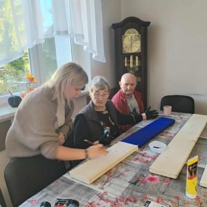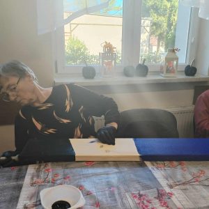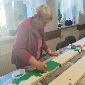 Nasi uczestnicy obchodzili dzień jesieni spędzili czas w twórczej i radosnej atmosferze. Główną atrakcją było wspólne wykonywanie drewnianych jesiennych skrzatów z desek. Każdy otrzymał kawałek drewna, farby i różne materiały ozdobne, dzięki którym zwykła deska zamieniała się w wesołego jesiennego skrzata.