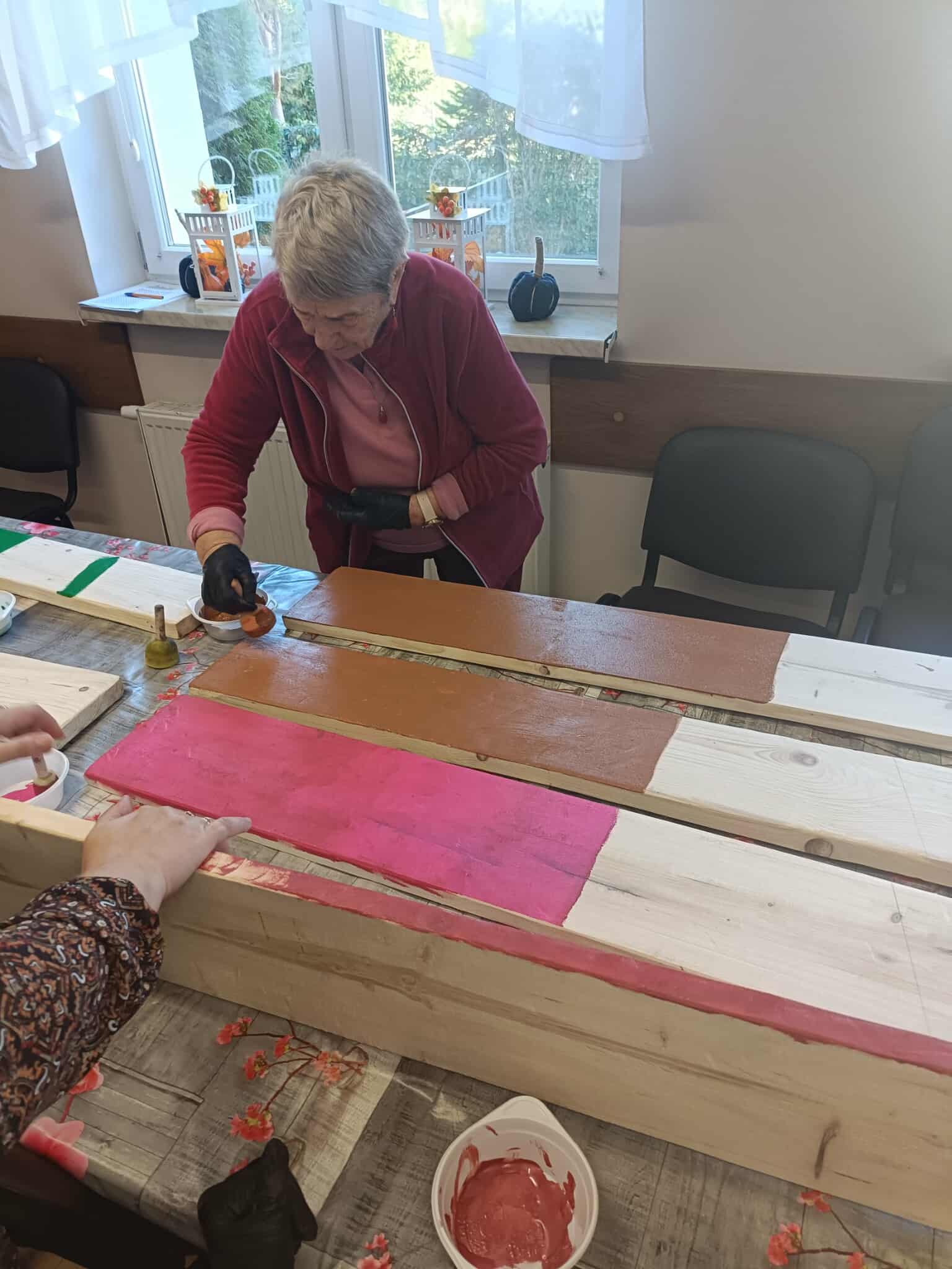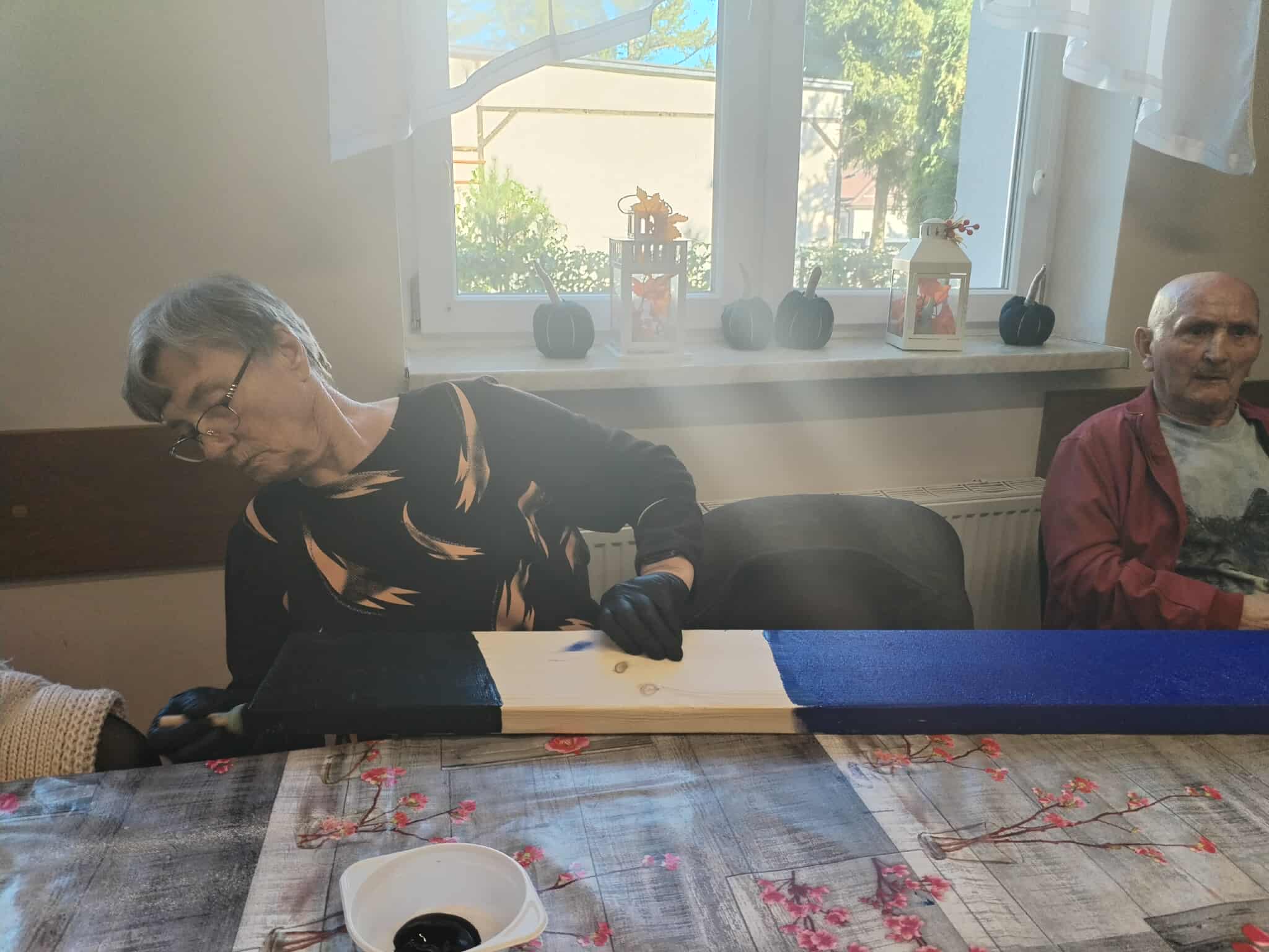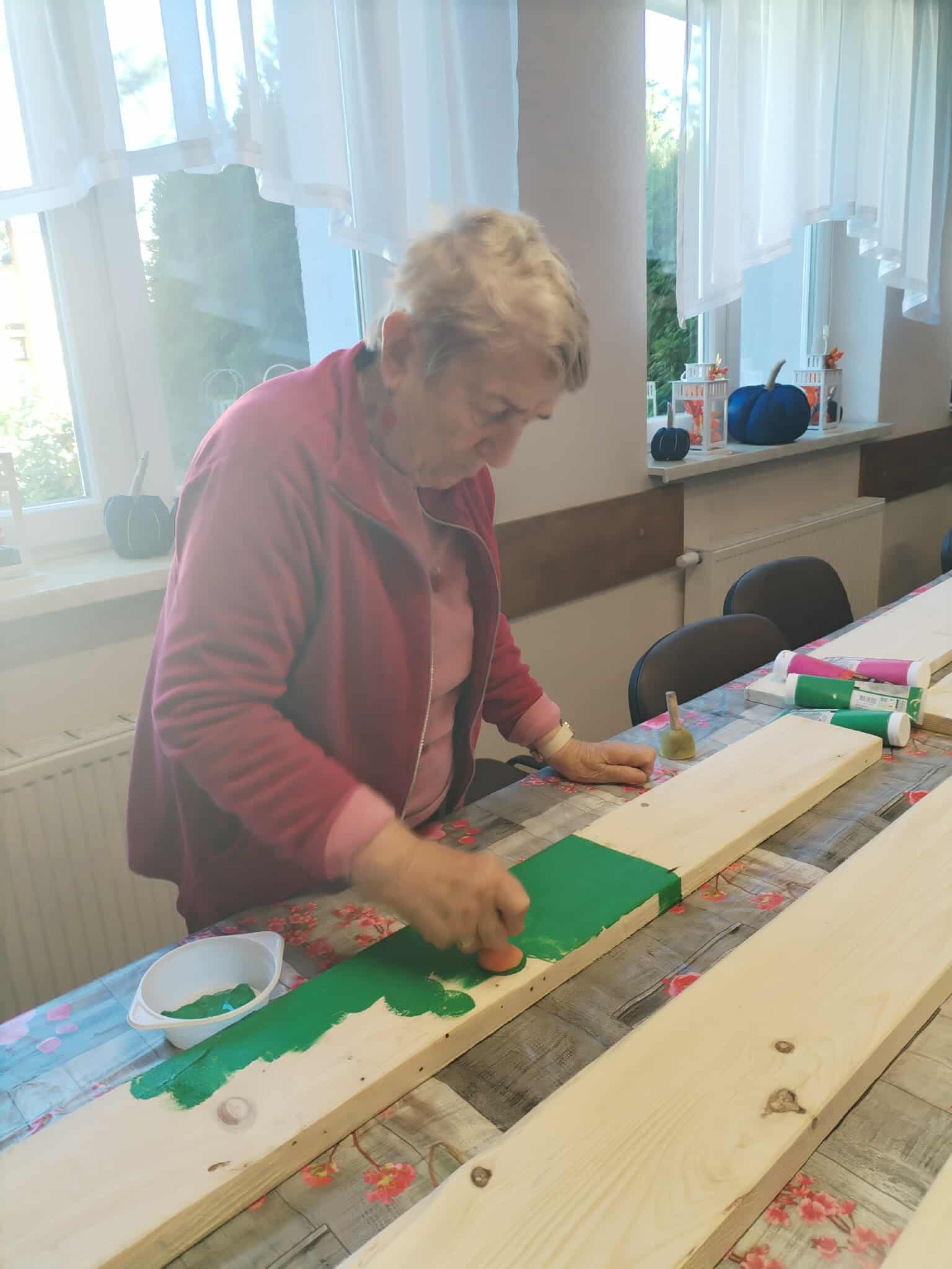 Nasi uczestnicy obchodzili dzień jesieni spędzili czas w twórczej i radosnej atmosferze. Główną atrakcją było wspólne wykonywanie drewnianych jesiennych skrzatów z desek. Każdy otrzymał kawałek drewna, farby i różne materiały ozdobne, dzięki którym zwykła deska zamieniała się w wesołego jesiennego skrzata.
