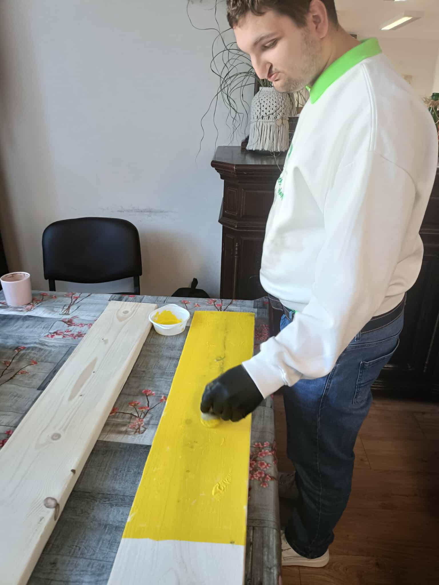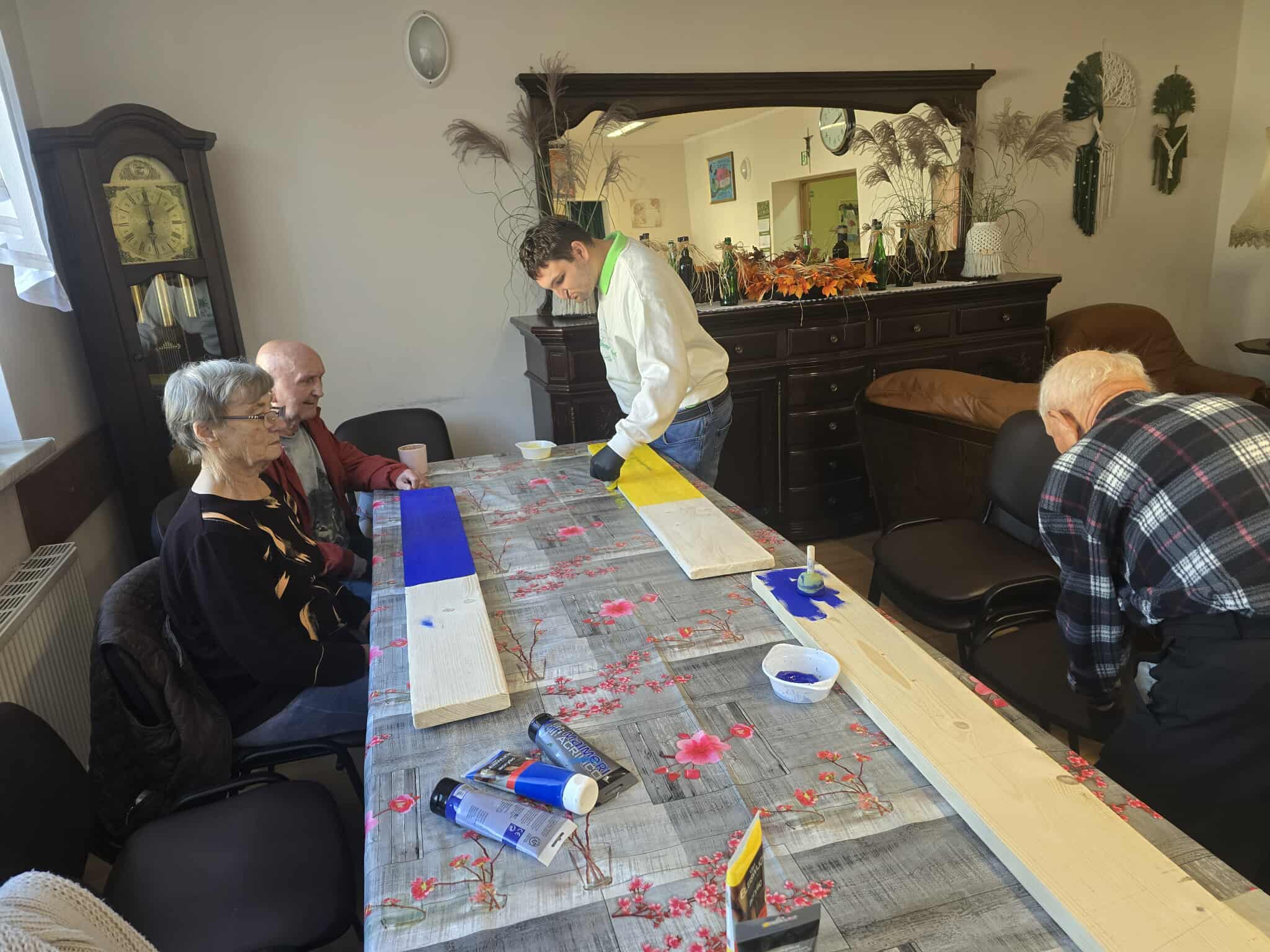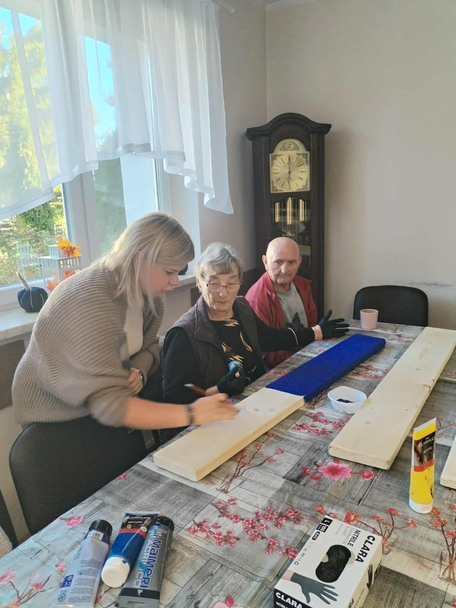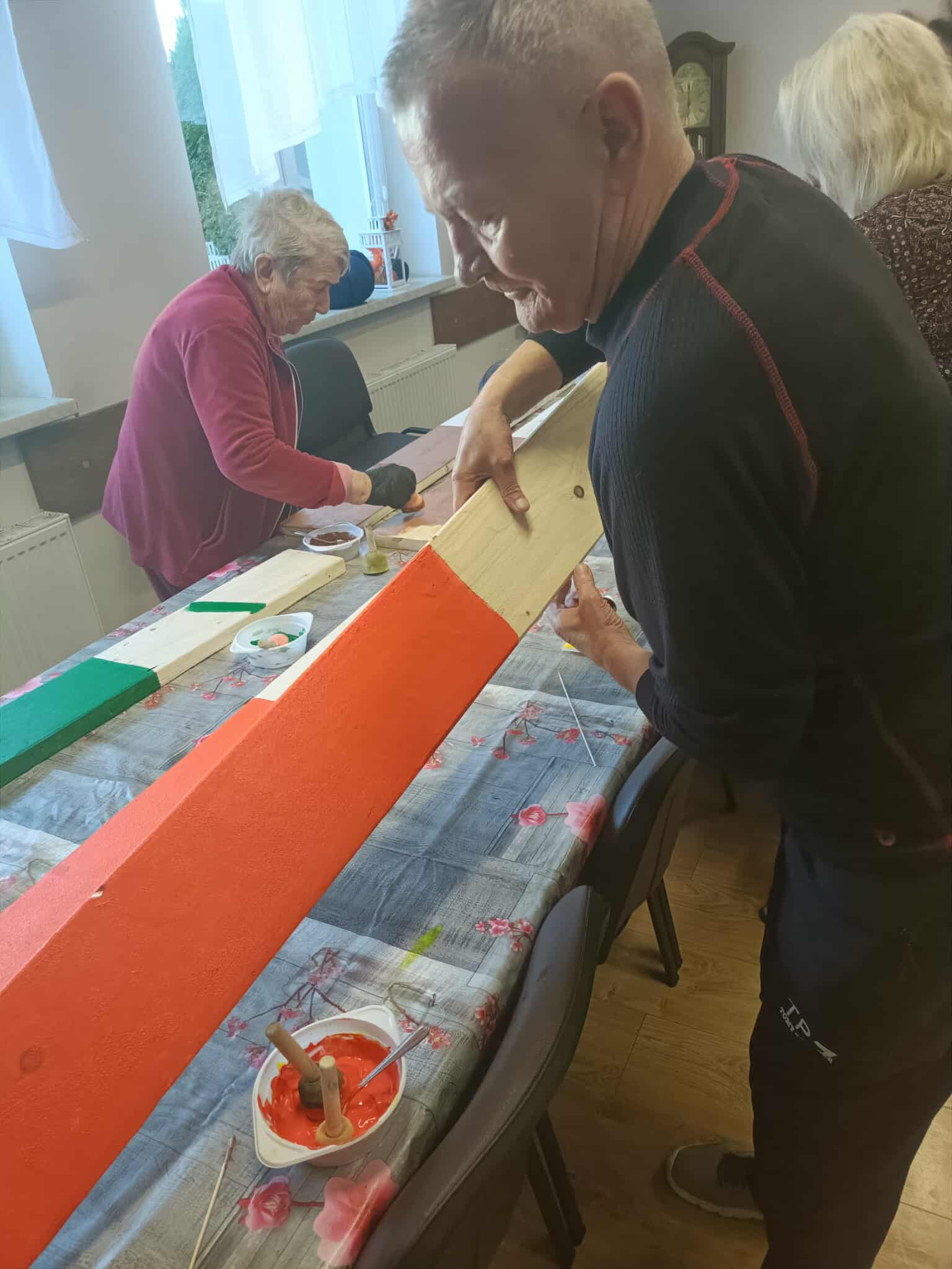 Nasi uczestnicy obchodzili dzień jesieni spędzili czas w twórczej i radosnej atmosferze. Główną atrakcją było wspólne wykonywanie drewnianych jesiennych skrzatów z desek. Każdy otrzymał kawałek drewna, farby i różne materiały ozdobne, dzięki którym zwykła deska zamieniała się w wesołego jesiennego skrzata.
