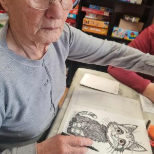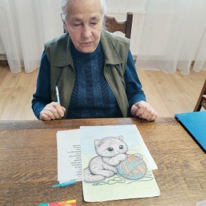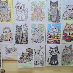 Bogactwo narzędzi pozwoliło każdemu wyrazić siebie w indywidualny sposób – powstały zarówno realistyczne portrety kotów, jak i fantazyjne, bajkowe interpretacje. Praca twórcza sprzyjała relaksowi, rozwijaniu wyobraźni oraz ćwiczeniu koncentracji i sprawności manualnej.