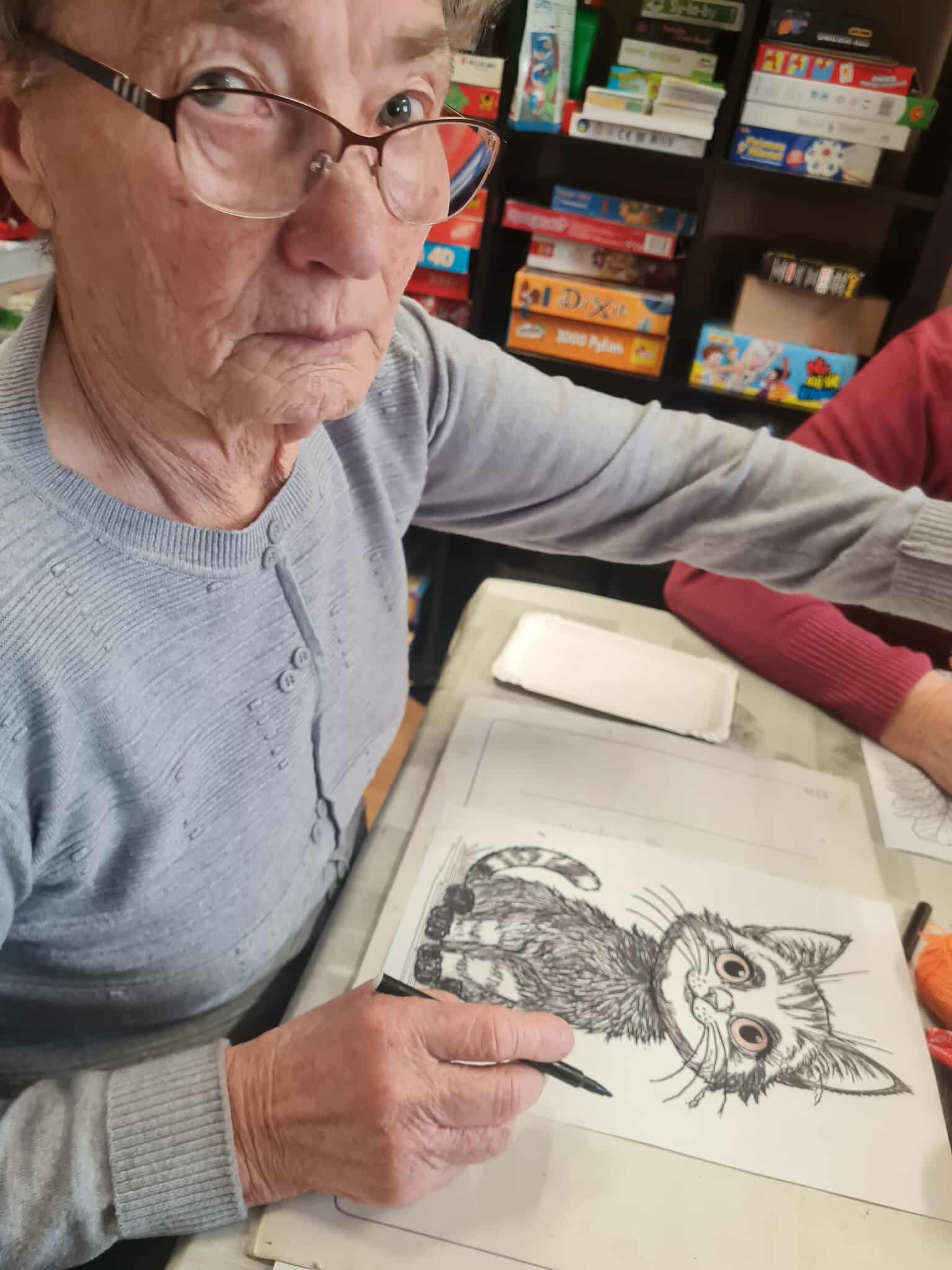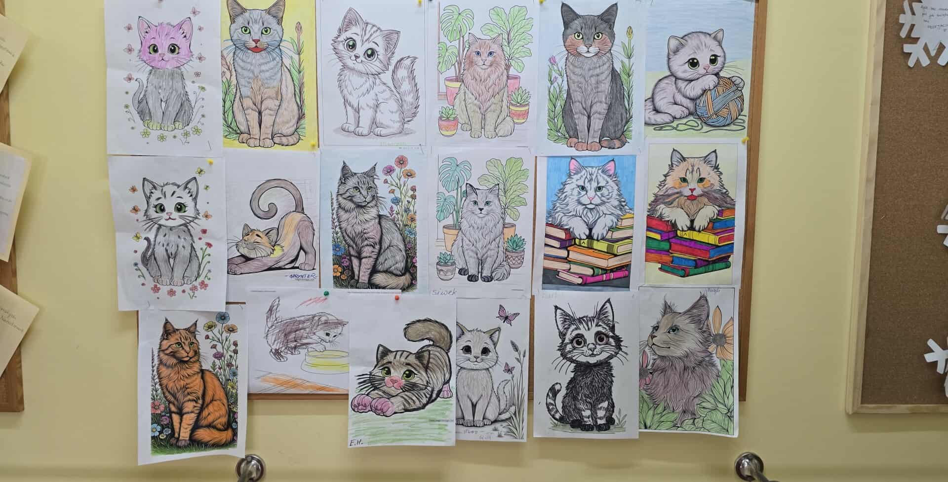 Bogactwo narzędzi pozwoliło każdemu wyrazić siebie w indywidualny sposób – powstały zarówno realistyczne portrety kotów, jak i fantazyjne, bajkowe interpretacje. Praca twórcza sprzyjała relaksowi, rozwijaniu wyobraźni oraz ćwiczeniu koncentracji i sprawności manualnej.