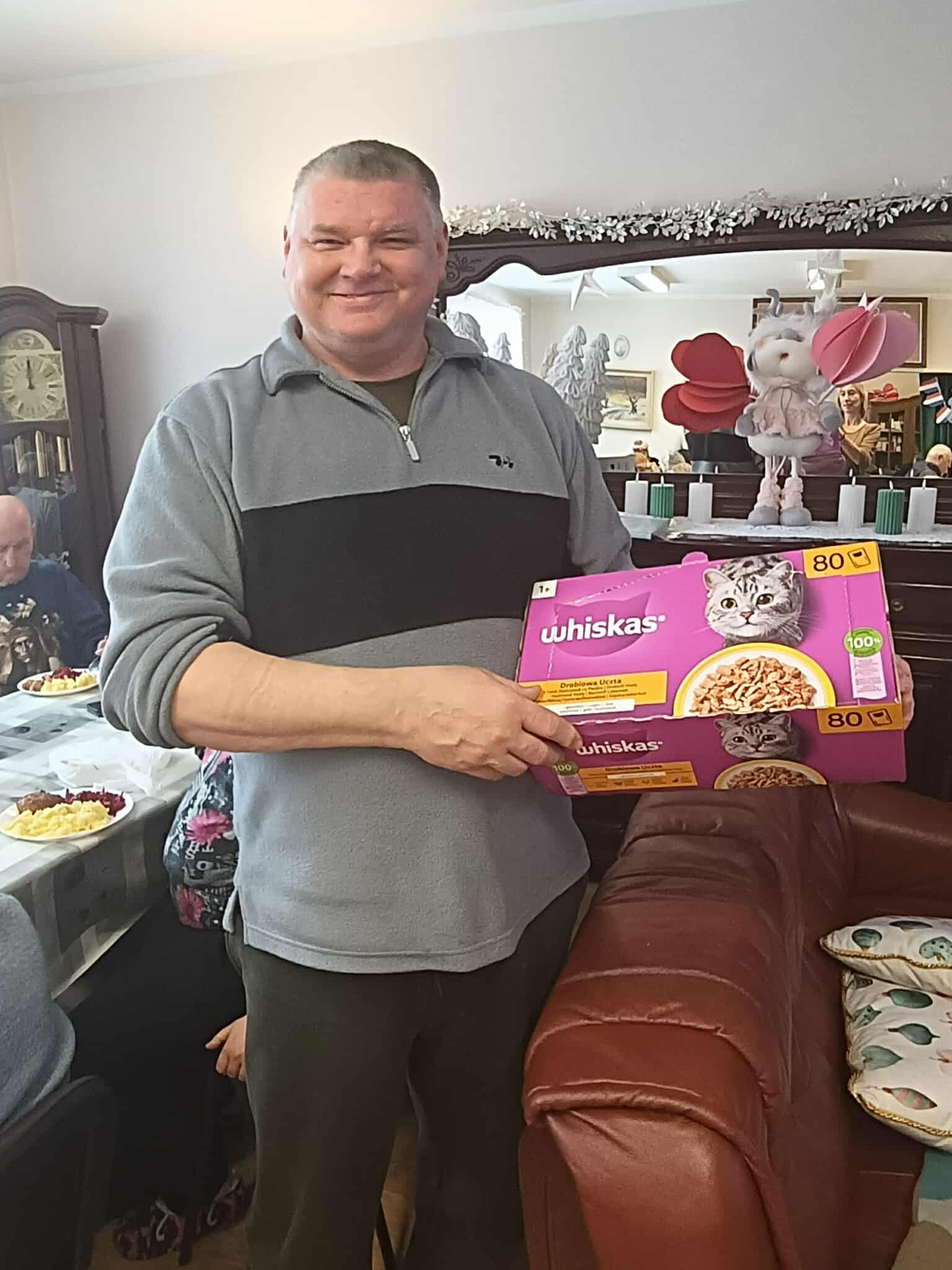 Osoby posiadające kotki otrzymały mokrą karmę dla swoich pupili – drobny upominek, który sprawił wiele radości i był praktycznym elementem świętowania.