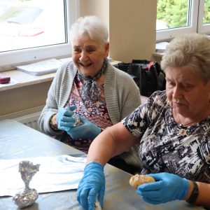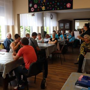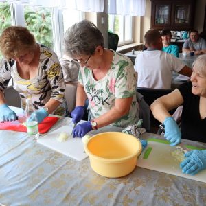 Dziś uczestnicy mogli wysłuchać wielu ciekawych informacji o tamtejszej kuchni i nie tylko… Poza prostymi przepisami na łatwe i niedrogie potrawy oraz prezentacją tradycyjnych strojów, nasi podopieczni poprawili sobie nastrój oglądając z zaciekawieniem krótki filmik prezentujący gwarę wielkopolską. Słowo, które spodobało im się najbardziej to ĆMIK czyli papieros i do końca dnia wzajemnie „ zapraszali” się na ćmika.