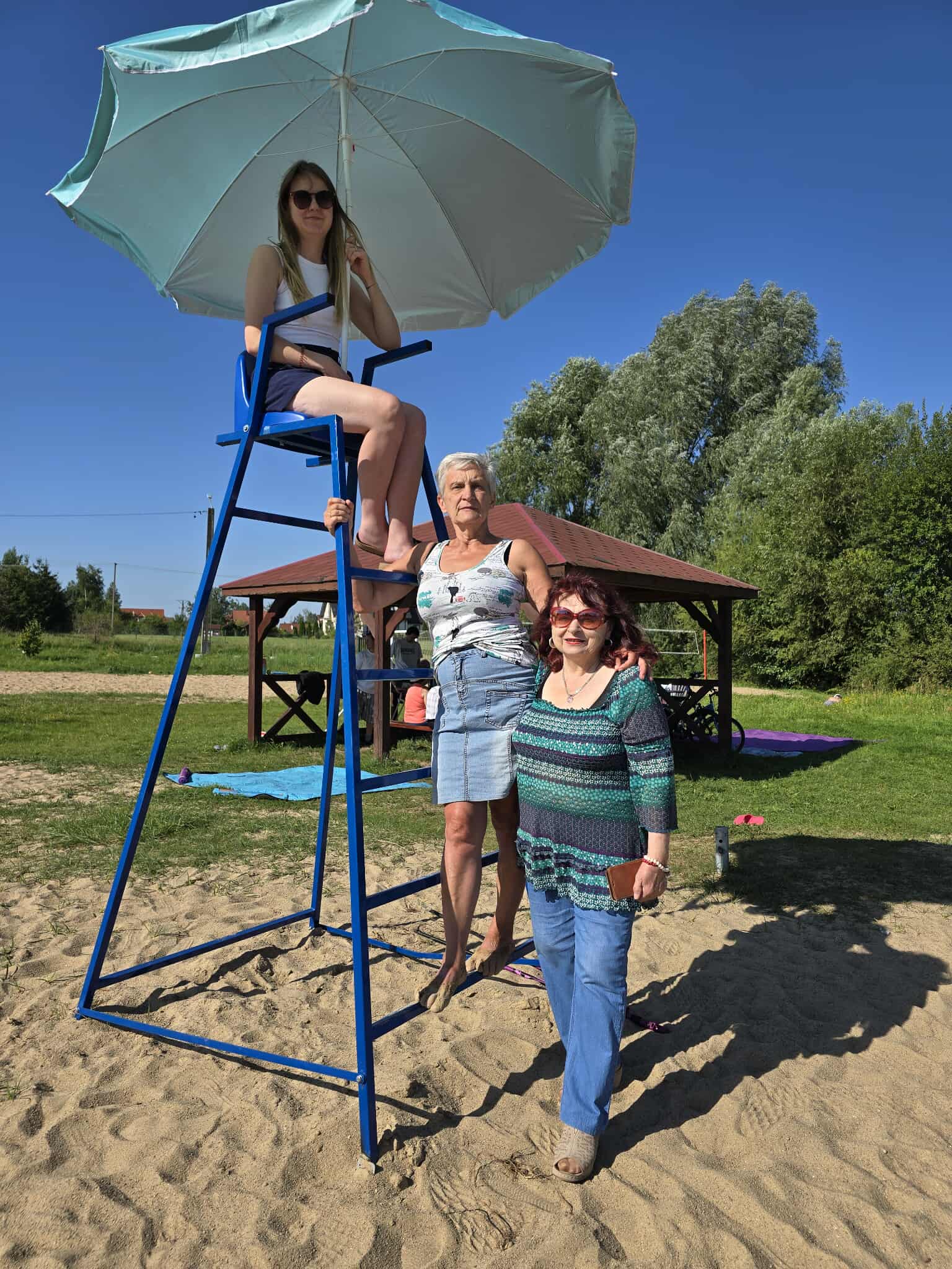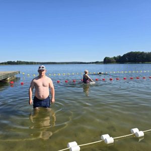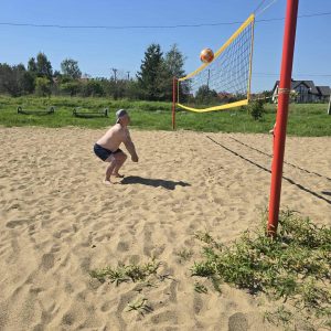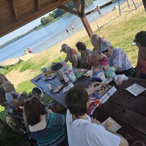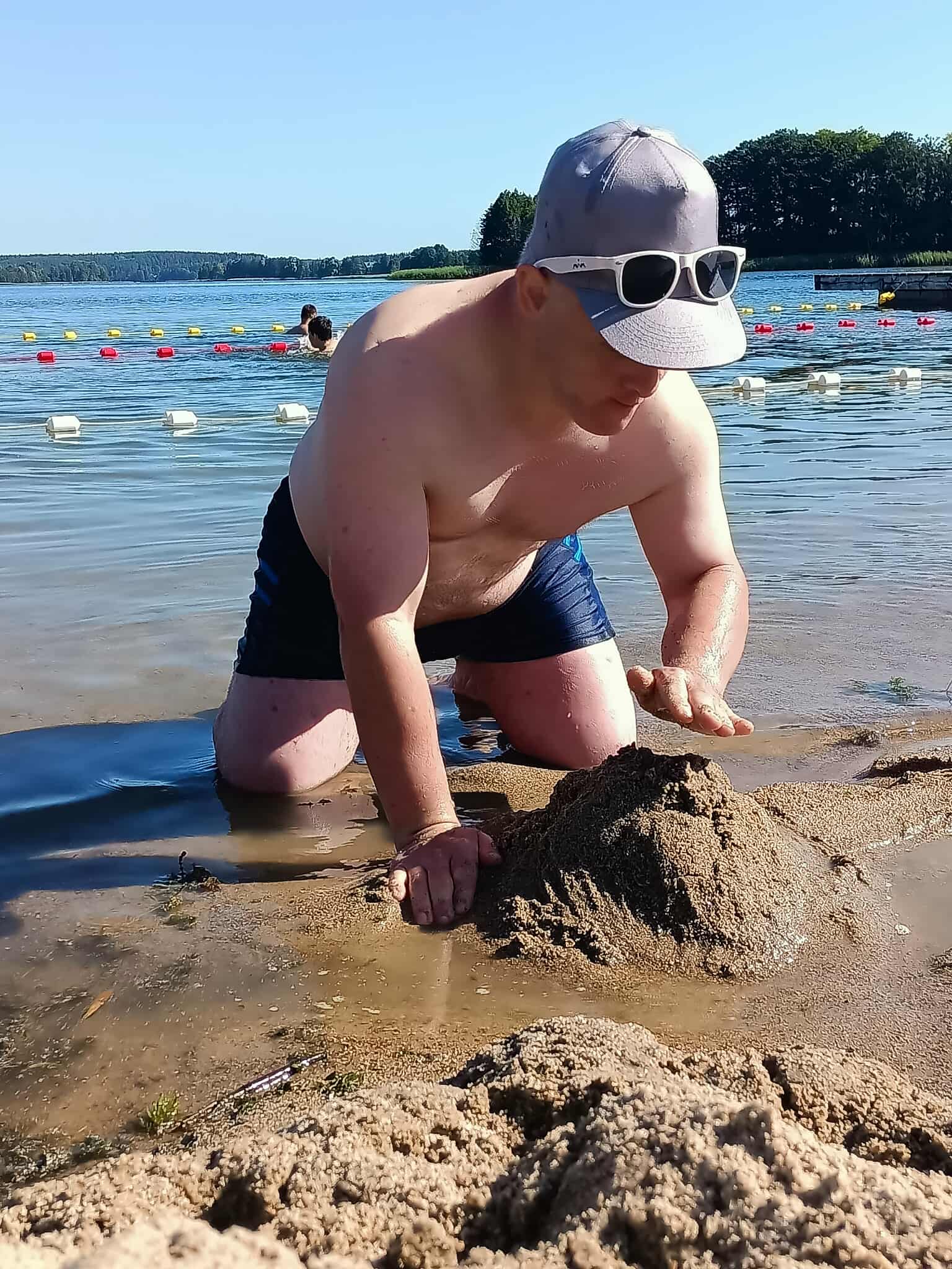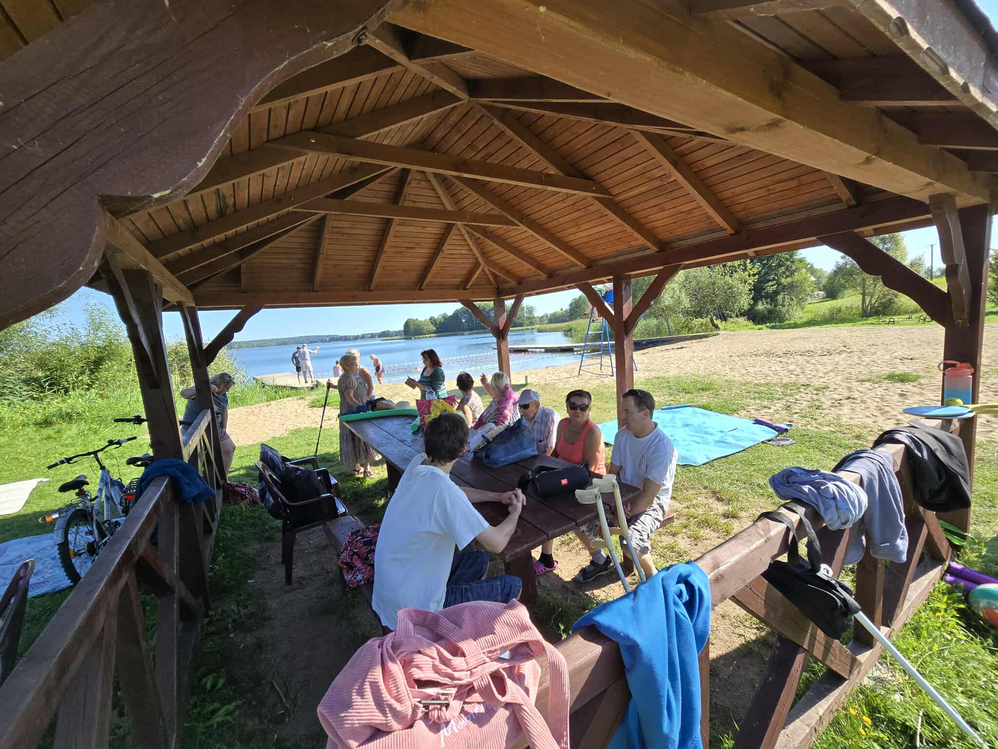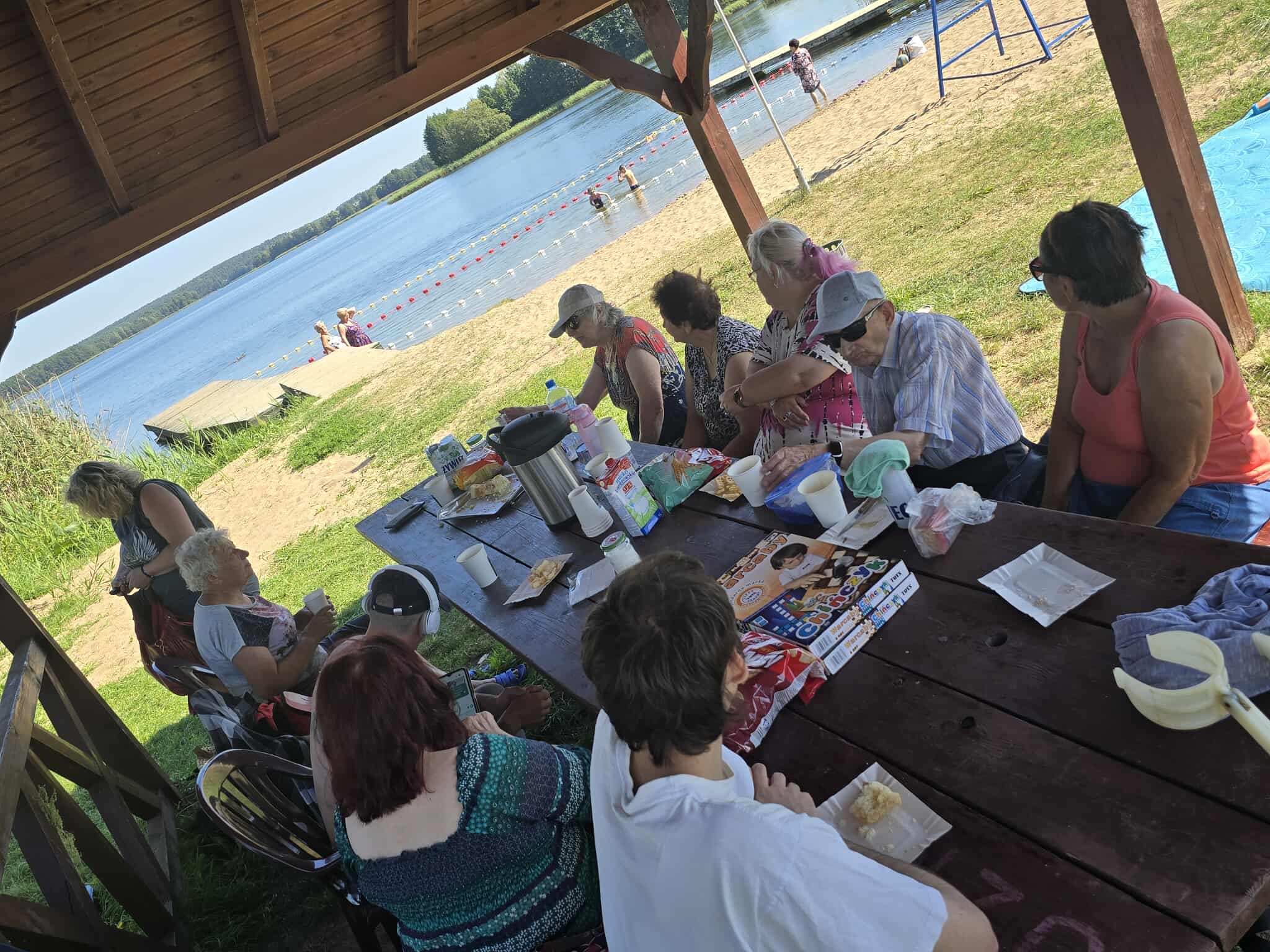 Z okazji Dnia ręcznika plażowego- wybraliśmy się z naszymi uczestnikami się nad jezioro Kalwa, gdzie pod opieką ratownika, bezpiecznie oddawaliśmy się indywidualnym przyjemnościom. Jedni szukali ochłody w przyjemnie orzeźwiającej wodzie, inni spacerowali po piaszczystej plaży czy odpoczywali na pomoście zażywając kąpieli słonecznej. Grupka biesiadowała w urokliwej altanie gdzie popijając aromatyczną kawę w towarzystwie domowych wypieków, skupiali się na grach planszowych czy towarzyskich rozmowach. Jeszcze inni- bardziej aktywni- grali w siatkówkę plażową i ćwiczyli na stojącej nieopodal zewnętrznej siłowni.
