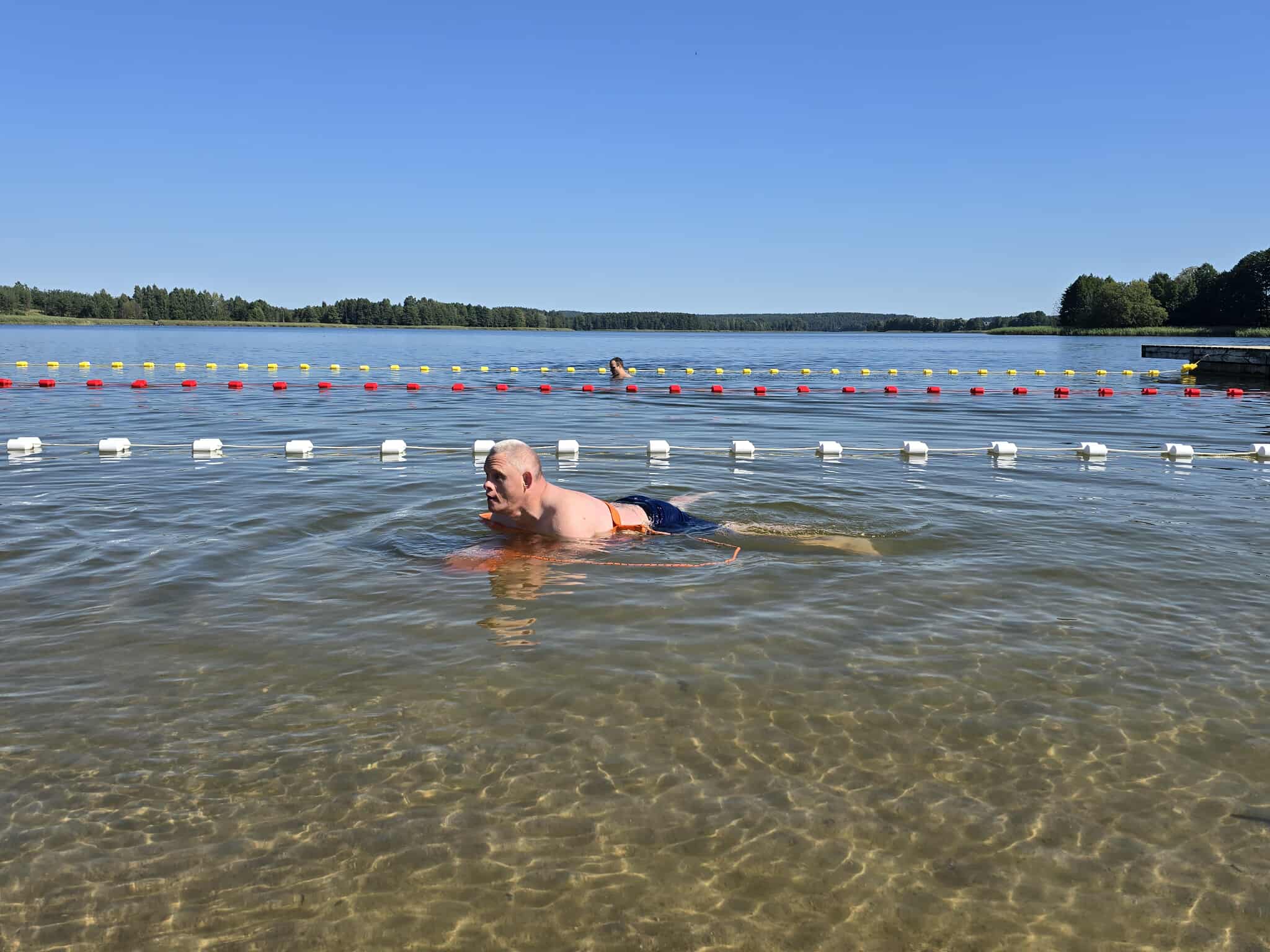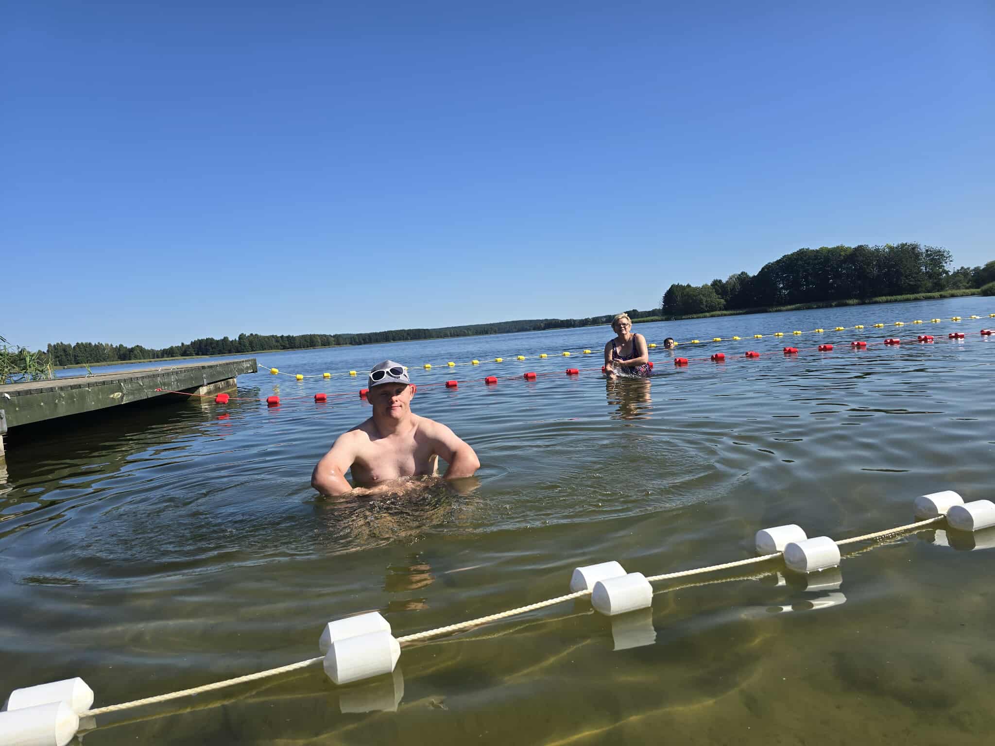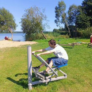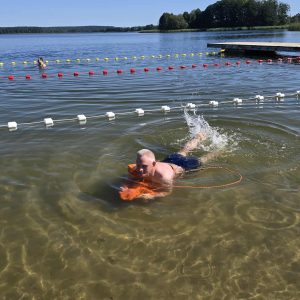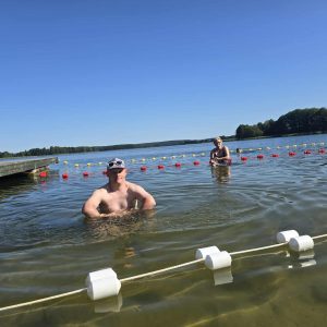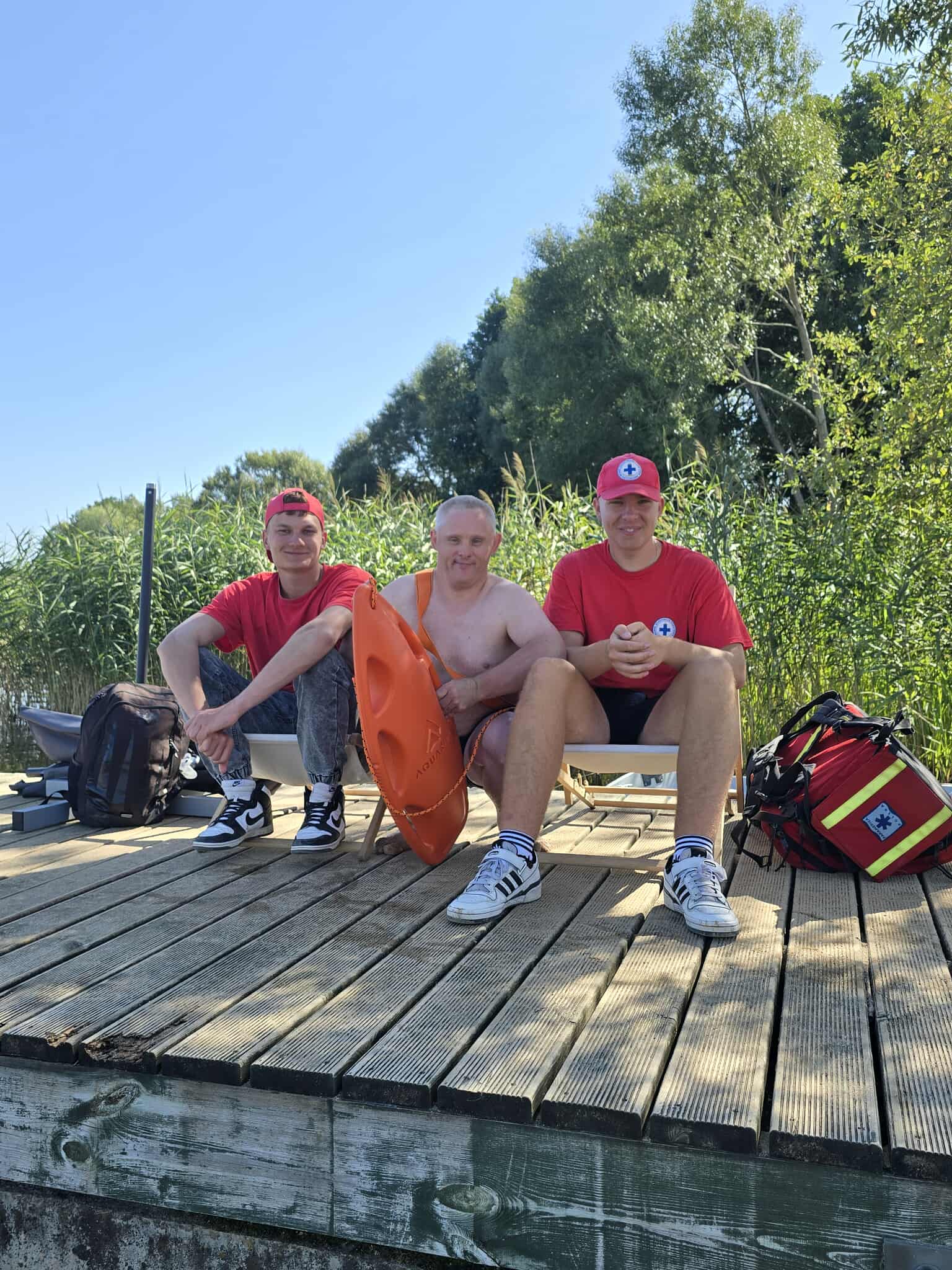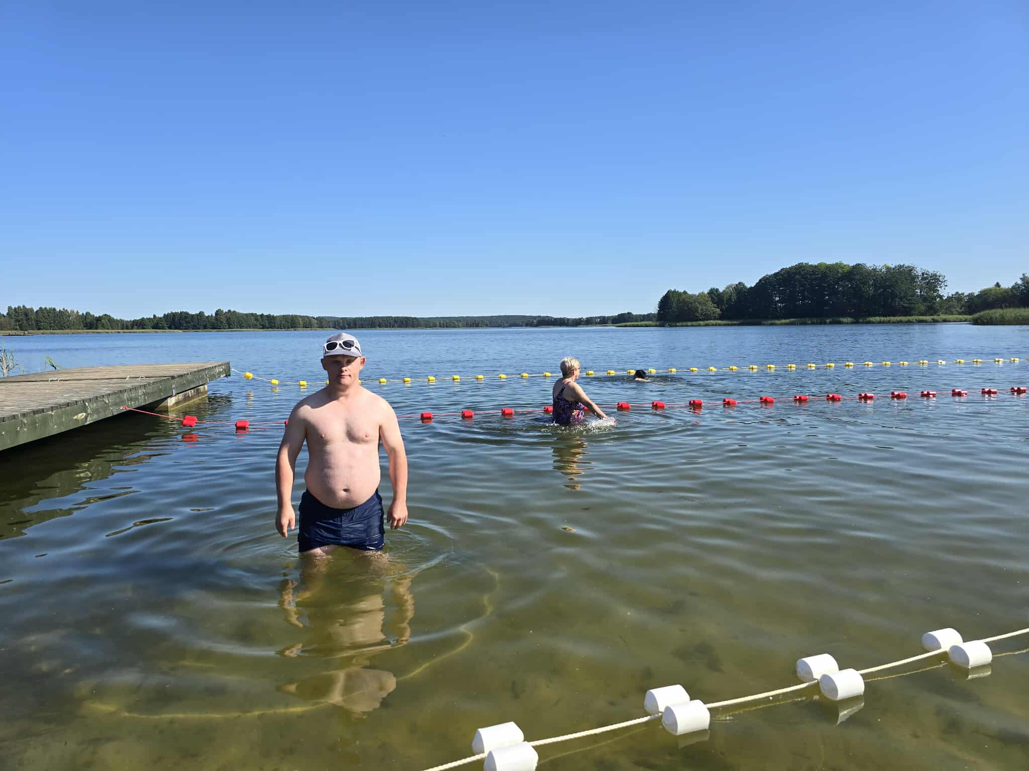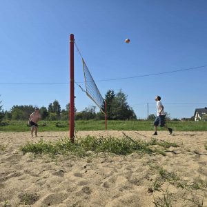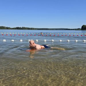 Z okazji Dnia ręcznika plażowego- wybraliśmy się z naszymi uczestnikami się nad jezioro Kalwa, gdzie pod opieką ratownika, bezpiecznie oddawaliśmy się indywidualnym przyjemnościom. Jedni szukali ochłody w przyjemnie orzeźwiającej wodzie, inni spacerowali po piaszczystej plaży czy odpoczywali na pomoście zażywając kąpieli słonecznej. Grupka biesiadowała w urokliwej altanie gdzie popijając aromatyczną kawę w towarzystwie domowych wypieków, skupiali się na grach planszowych czy towarzyskich rozmowach. Jeszcze inni- bardziej aktywni- grali w siatkówkę plażową i ćwiczyli na stojącej nieopodal zewnętrznej siłowni.
