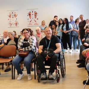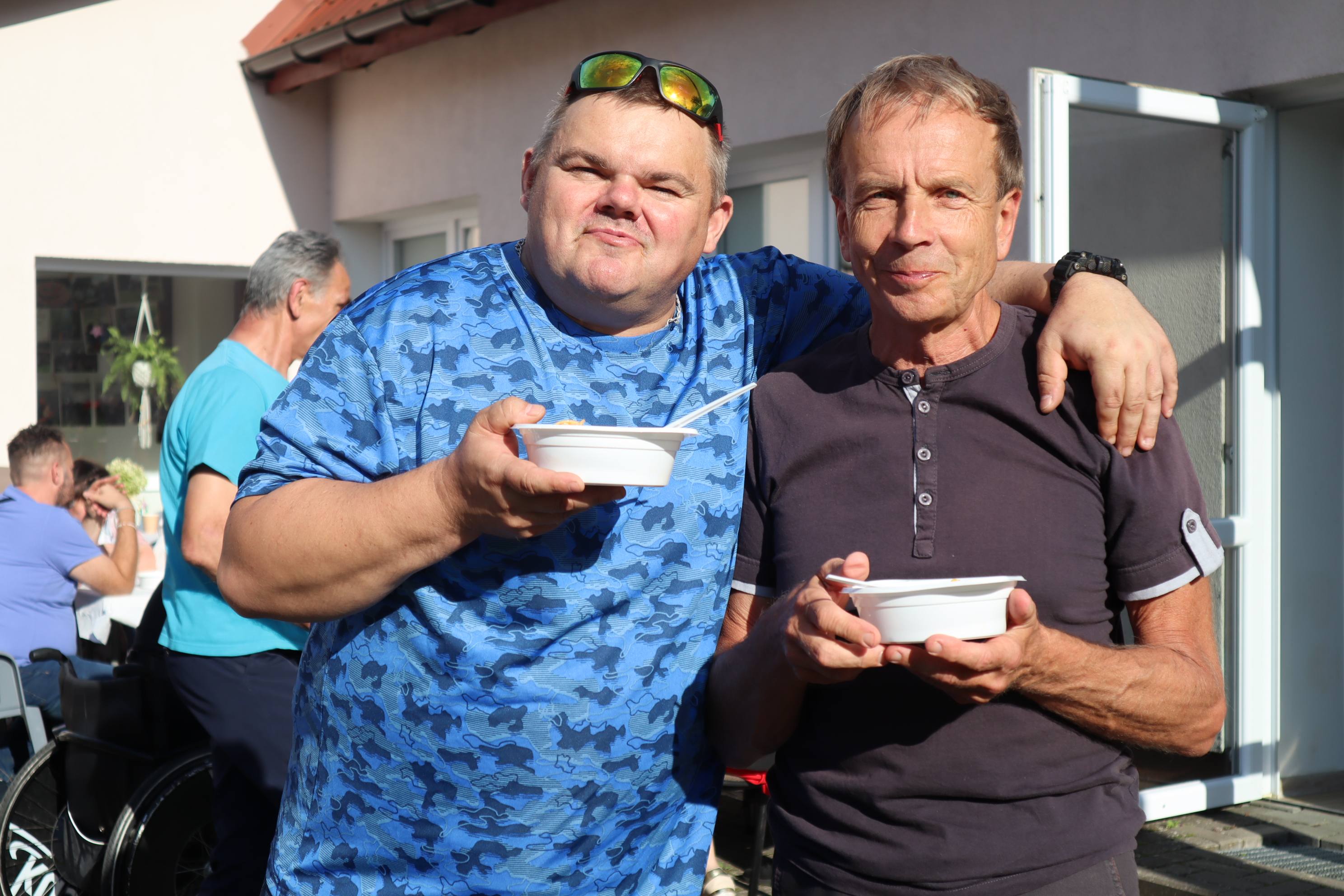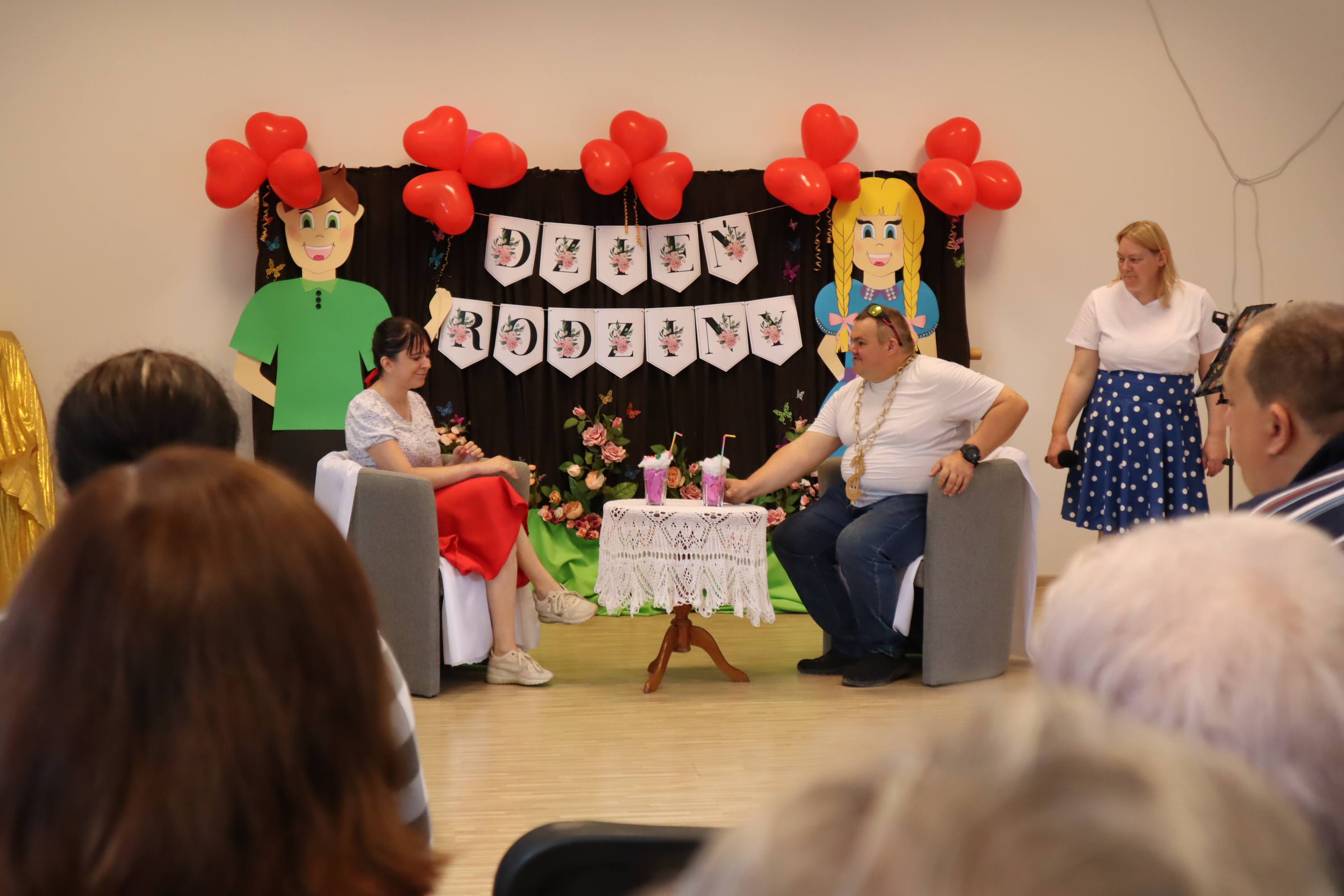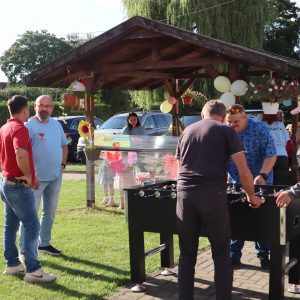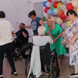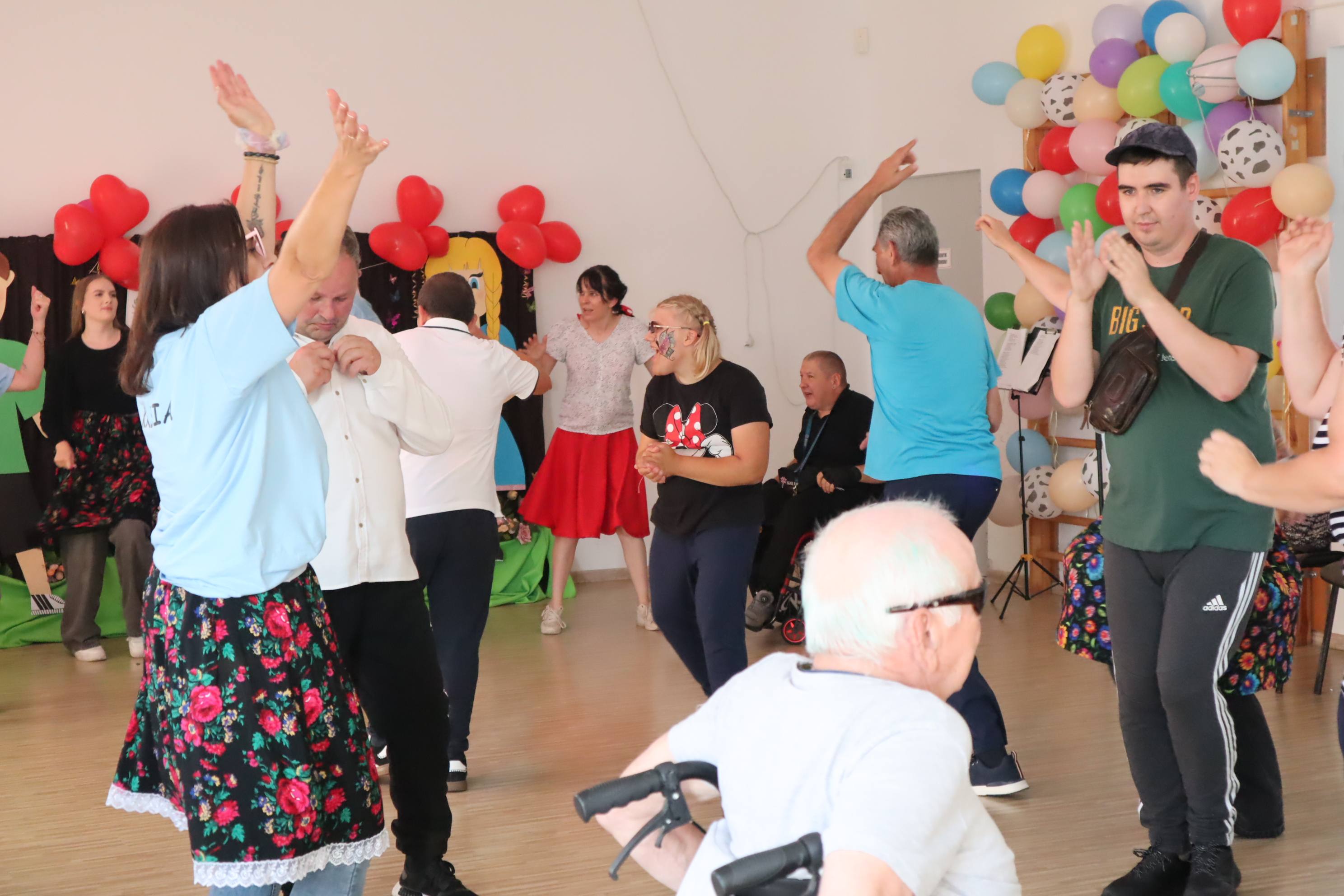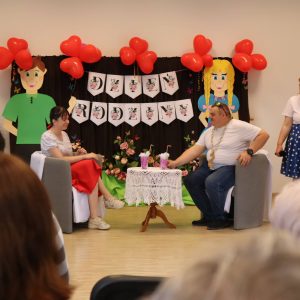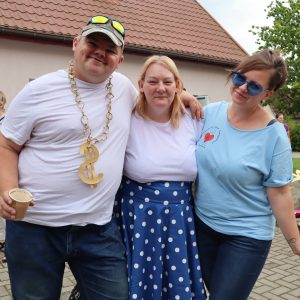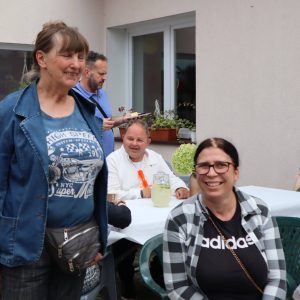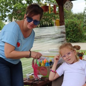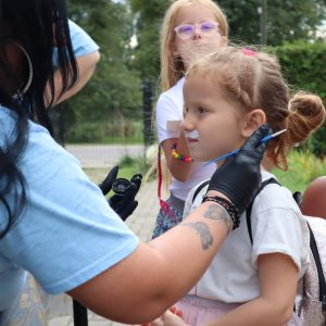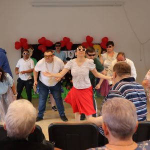 Jak co roku zorganizowaliśmy integracyjne spotkanie dla uczestników i ich rodzin. Dzień Rodziny to okazja do rozmów, wymiany doświadczeń a dla rodzin nowych uczestników to możliwość poznania pracy ośrodka od wewnątrz. Podczas tego typu spotkań, rodziny uczestników mają okazję obejrzeć prace twórcze wykonywane podczas zajęć terapeutycznych ale przede wszystkim jest to przestrzeń do pogłębienia relacji, które szczególnie wpływają na tworzenie ciepłej i rodzinnej atmosfery naszego Domu. Podczas spotkania uczestnicy przedstawiali swoje talenty sceniczne, prezentując najnowsze występy artystyczne, które przygotowywali na liczne konkursy, w których biorą ochoczo udział. Wspólny posiłek, pogaduchy przy kawie i cieście, integracyjne zabawy przy muzyce z pewnością pomogły przełamać bariery a najmłodsi uczestnicy spotkania mogli skorzystać z malowania twarzy, kolorowych warkoczyków oraz malowali wspólny obraz, co również wpłynęło na zacieśnienie relacji. Czas upłynął bardzo szybko, trudno było się rozstać, bo w tym roku było wyjątkowo serdecznie! Dziękujemy wszystkim gościom za przybycie i oczywiście zapraszamy za rok!