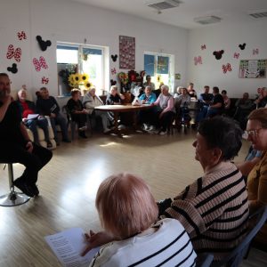 Pan Grzegorz opowiadał z ogromnym zaangażowaniem o historii tańców ludowych Warmii i Mazur, ich znaczeniu oraz o tym, jak ważną rolę odgrywają w zachowaniu tożsamości kulturowej. Uczestnicy mogli dowiedzieć się jak dawniej tańczono, śpiewano i jak forma tańca oraz słowa pieśni różniły się w zależności od wsi w której się mieszkało.