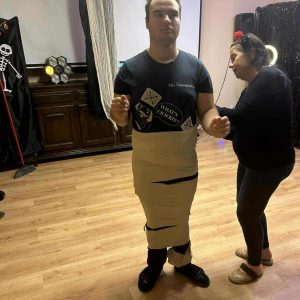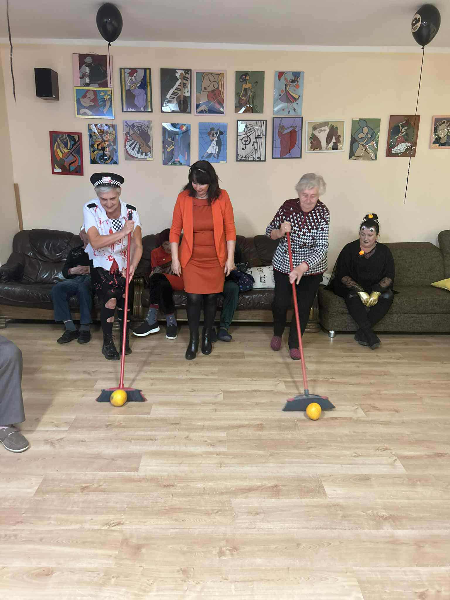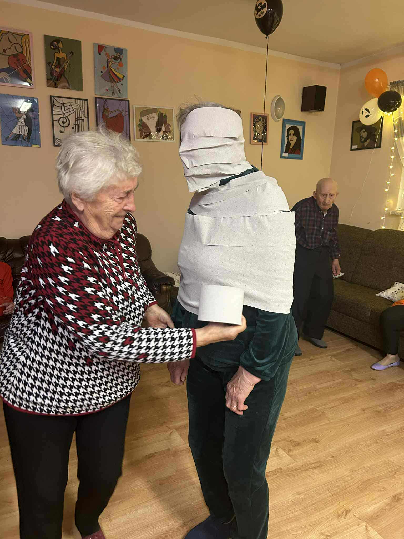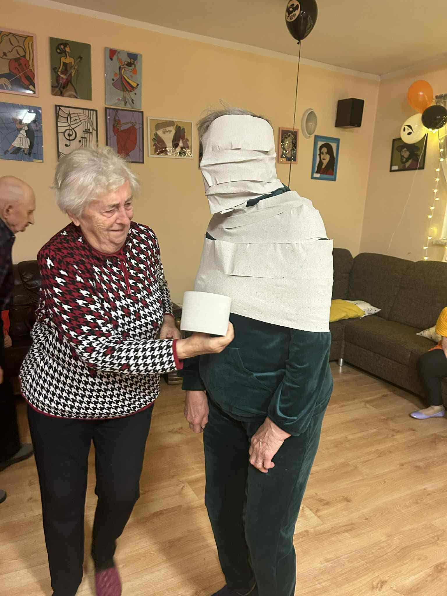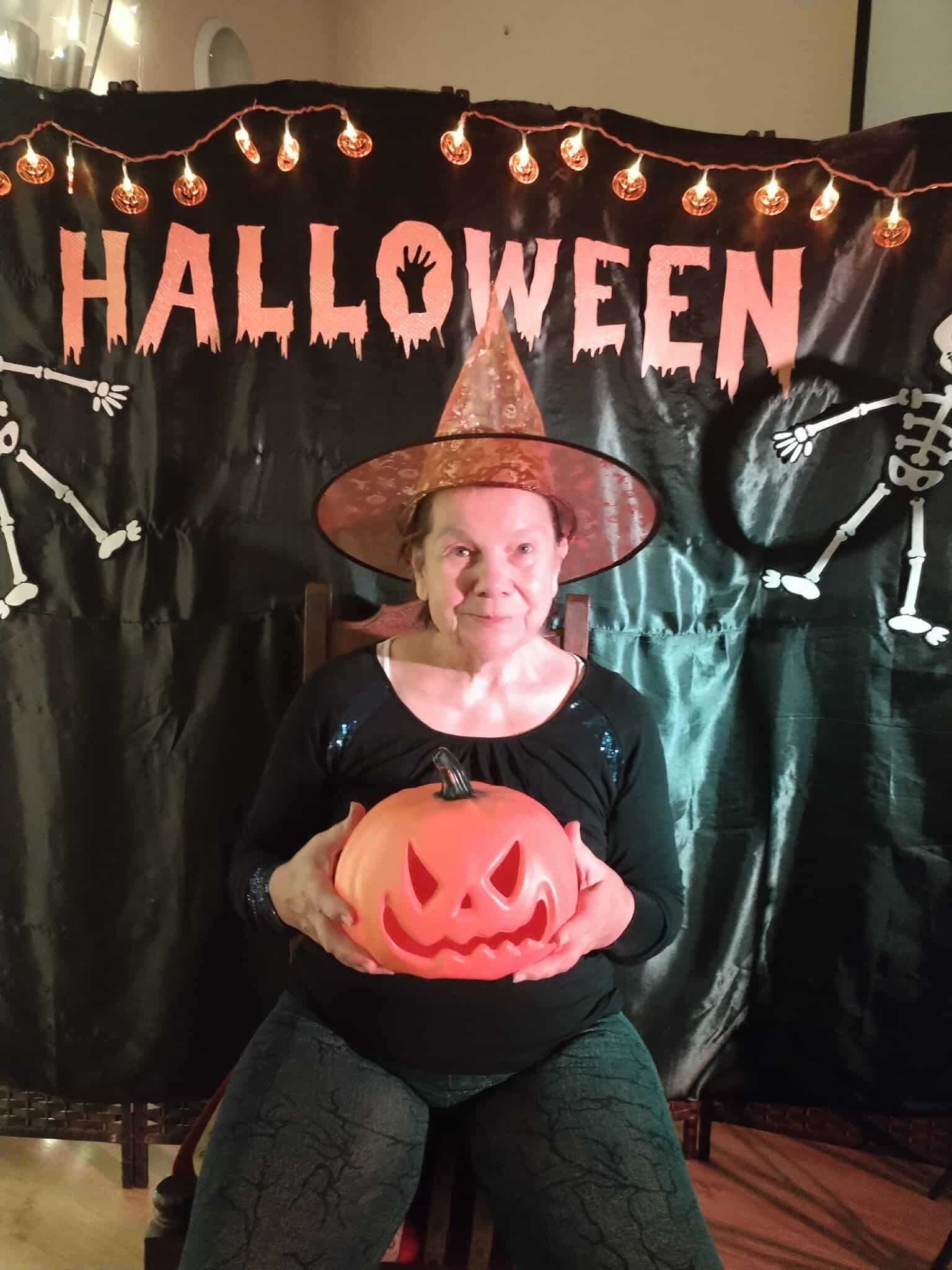 W dniu 31 października w naszym Domu odbyła się pełna radości i uśmiechu zabawa Halloweenowa. Sala została udekorowana w klimacie tajemniczej nocy – pojawiły się dynie, pająki, nietoperze, kościotrupy i świecące lampiony. Uczestnicy przyszli przebrani w różnorodne stroje – czarownice, duchy, wróżki i wampiry – co wprowadziło wszystkich w wyjątkowy, żartobliwy nastrój.