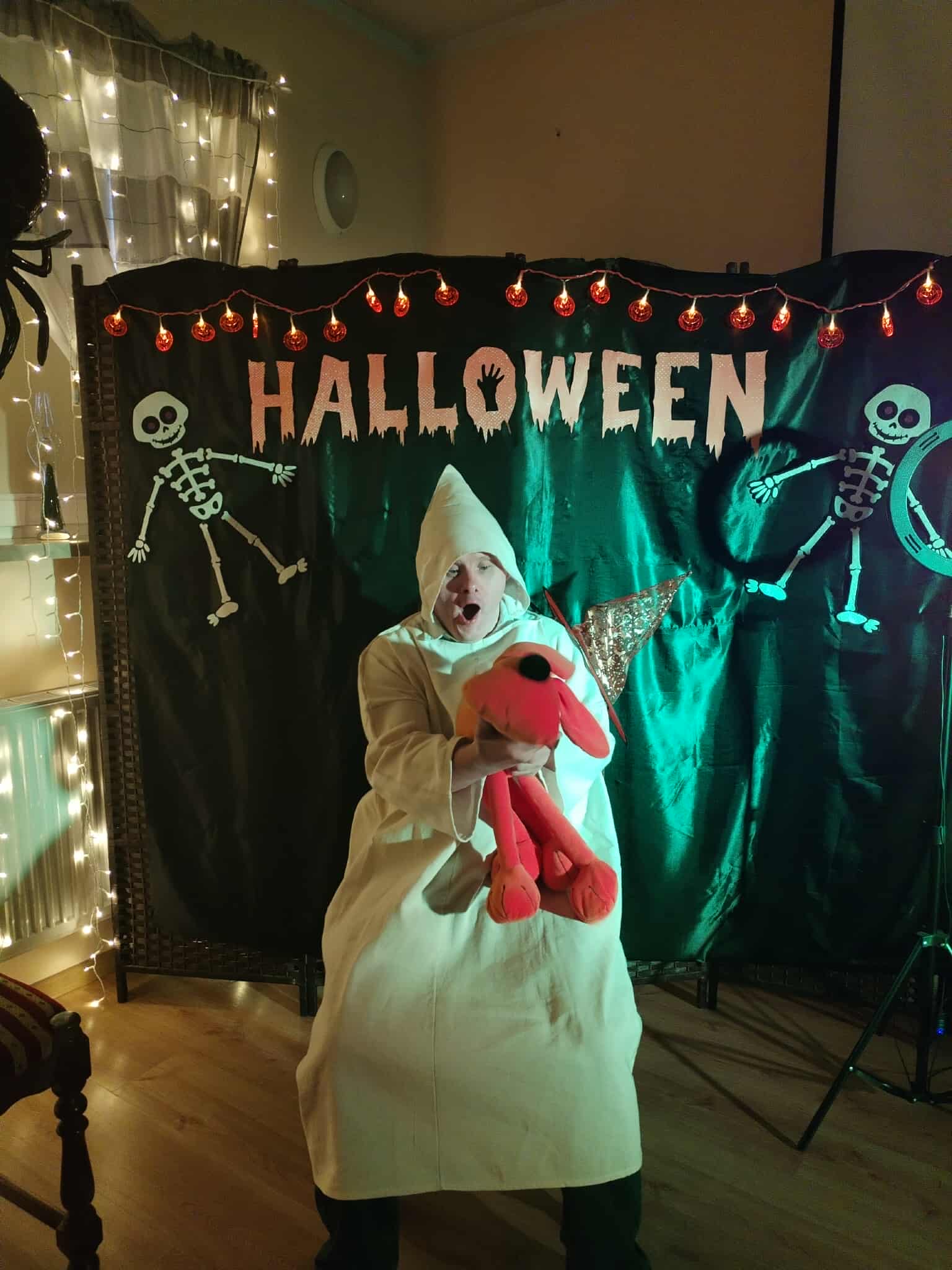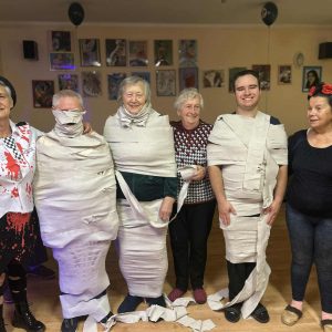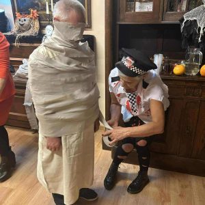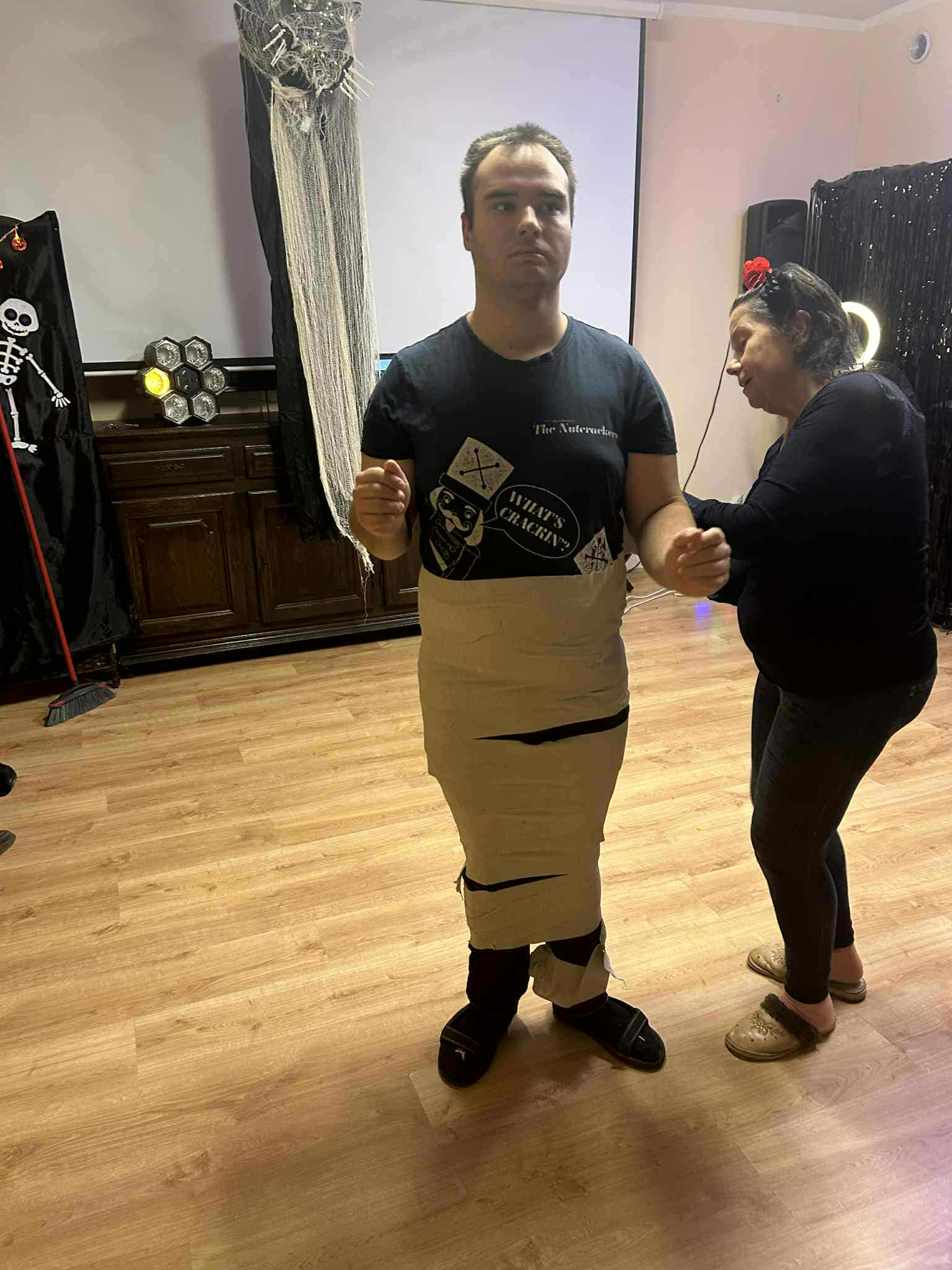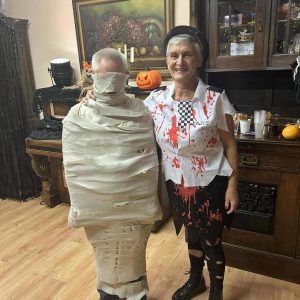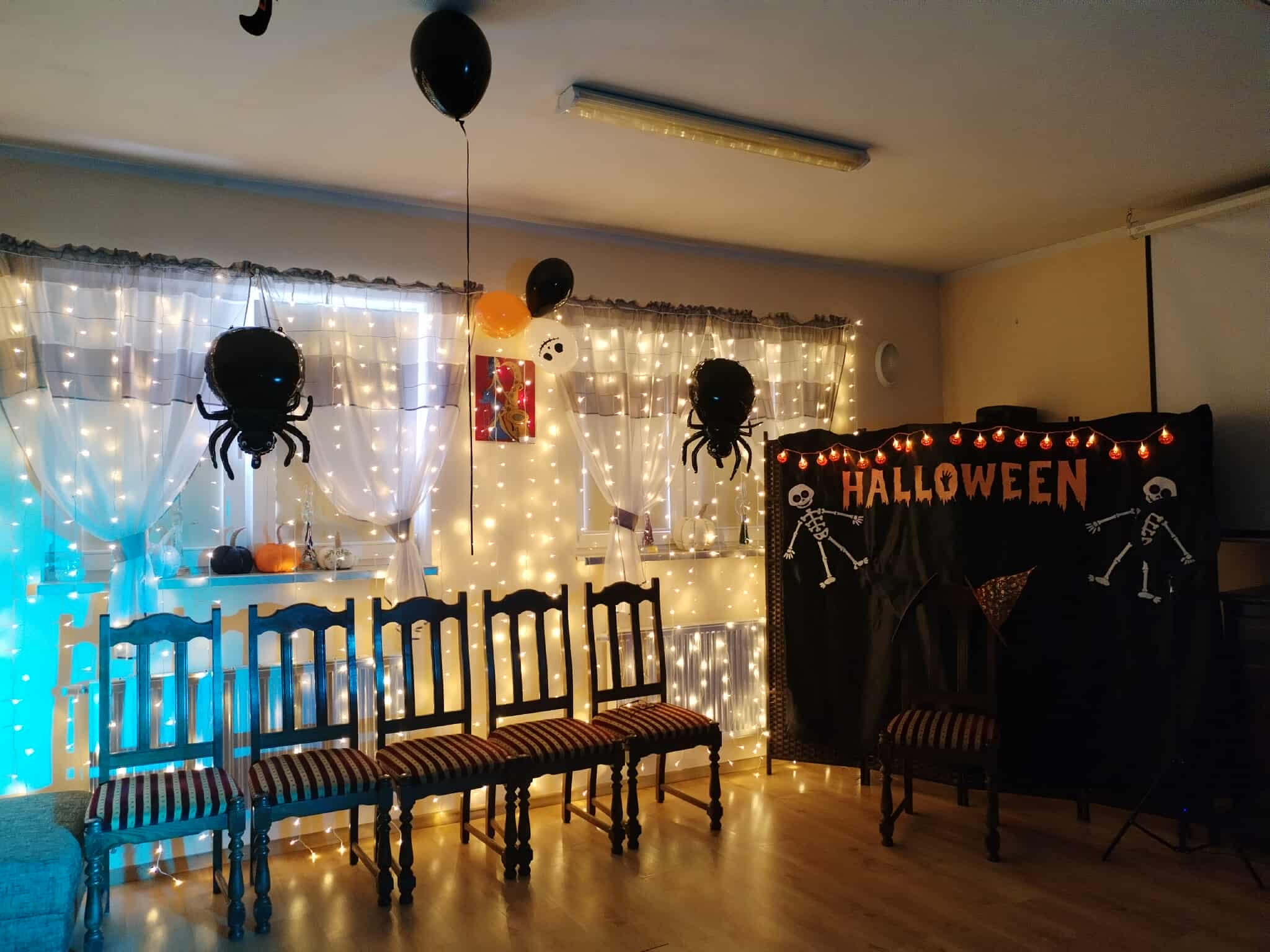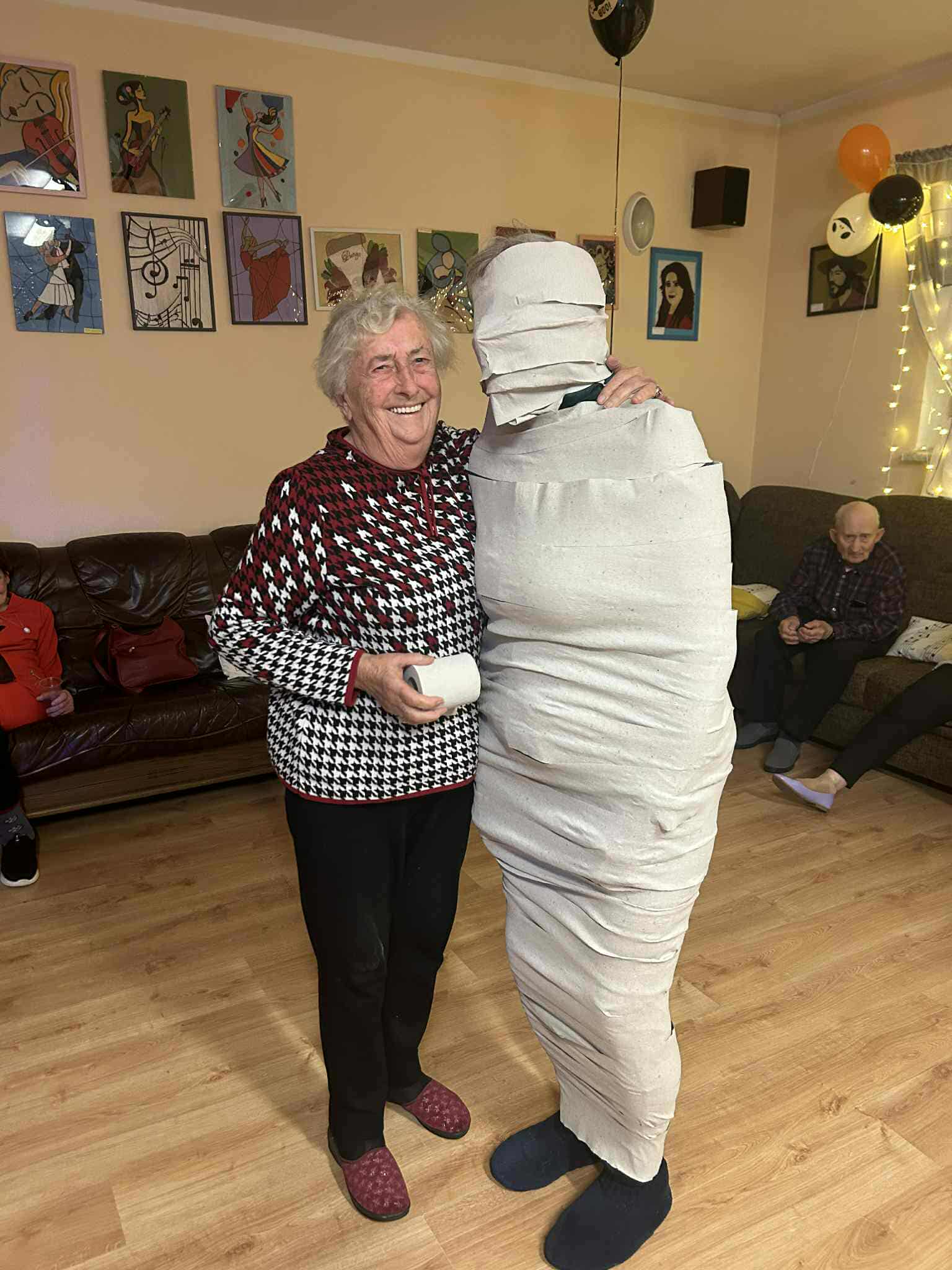 W dniu 31 października w naszym Domu odbyła się pełna radości i uśmiechu zabawa Halloweenowa. Sala została udekorowana w klimacie tajemniczej nocy – pojawiły się dynie, pająki, nietoperze, kościotrupy i świecące lampiony. Uczestnicy przyszli przebrani w różnorodne stroje – czarownice, duchy, wróżki i wampiry – co wprowadziło wszystkich w wyjątkowy, żartobliwy nastrój.