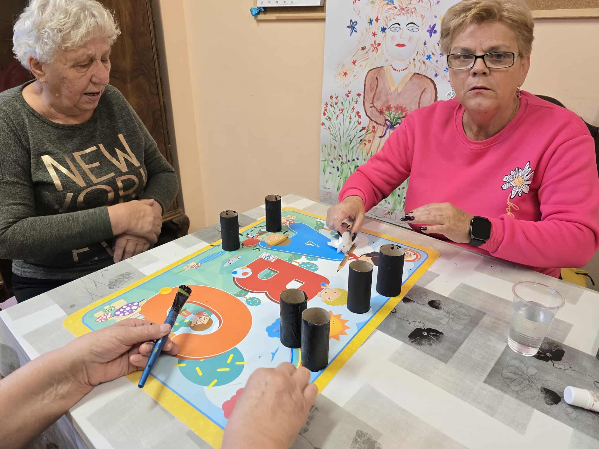 W ramach zajęć plastycznych uczestnicy przygotowali wyjątkowe dekoracje na Halloween. Tematem przewodnim były nietoperze, które wykonano z rolek po papierze toaletowym. Rolki zostały starannie pomalowane farbami, a następnie ozdobione papierowymi skrzydłami i ruchomymi oczkami.