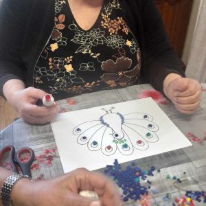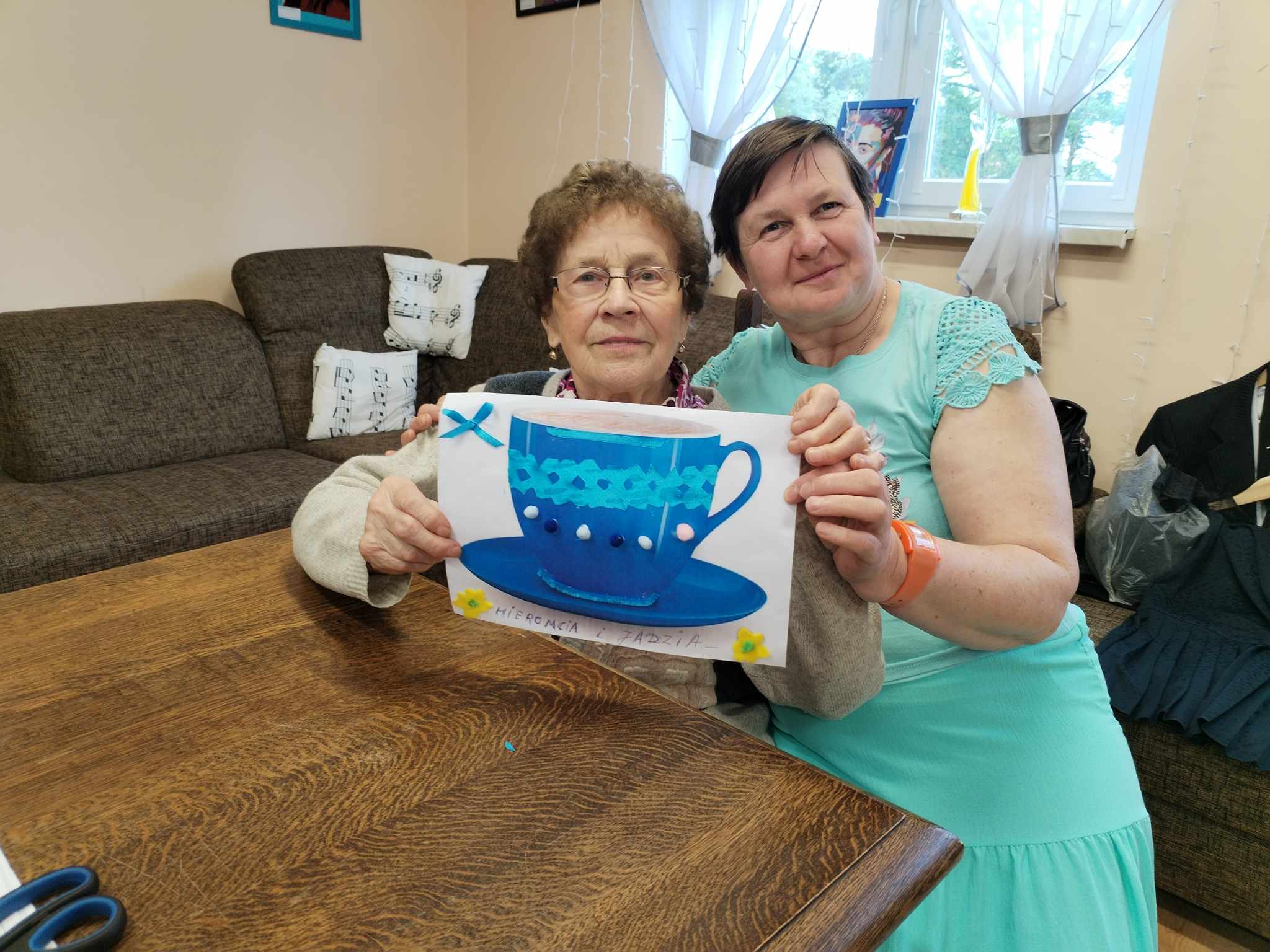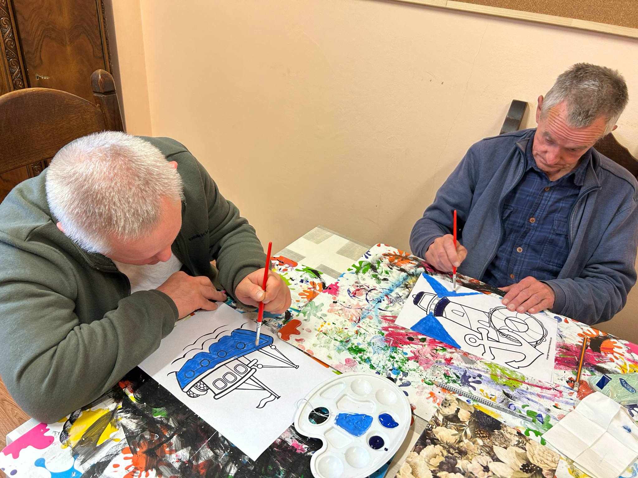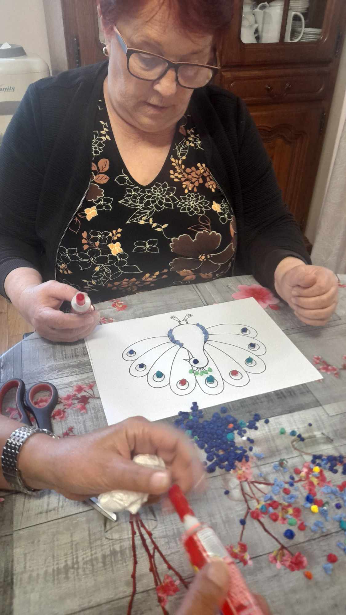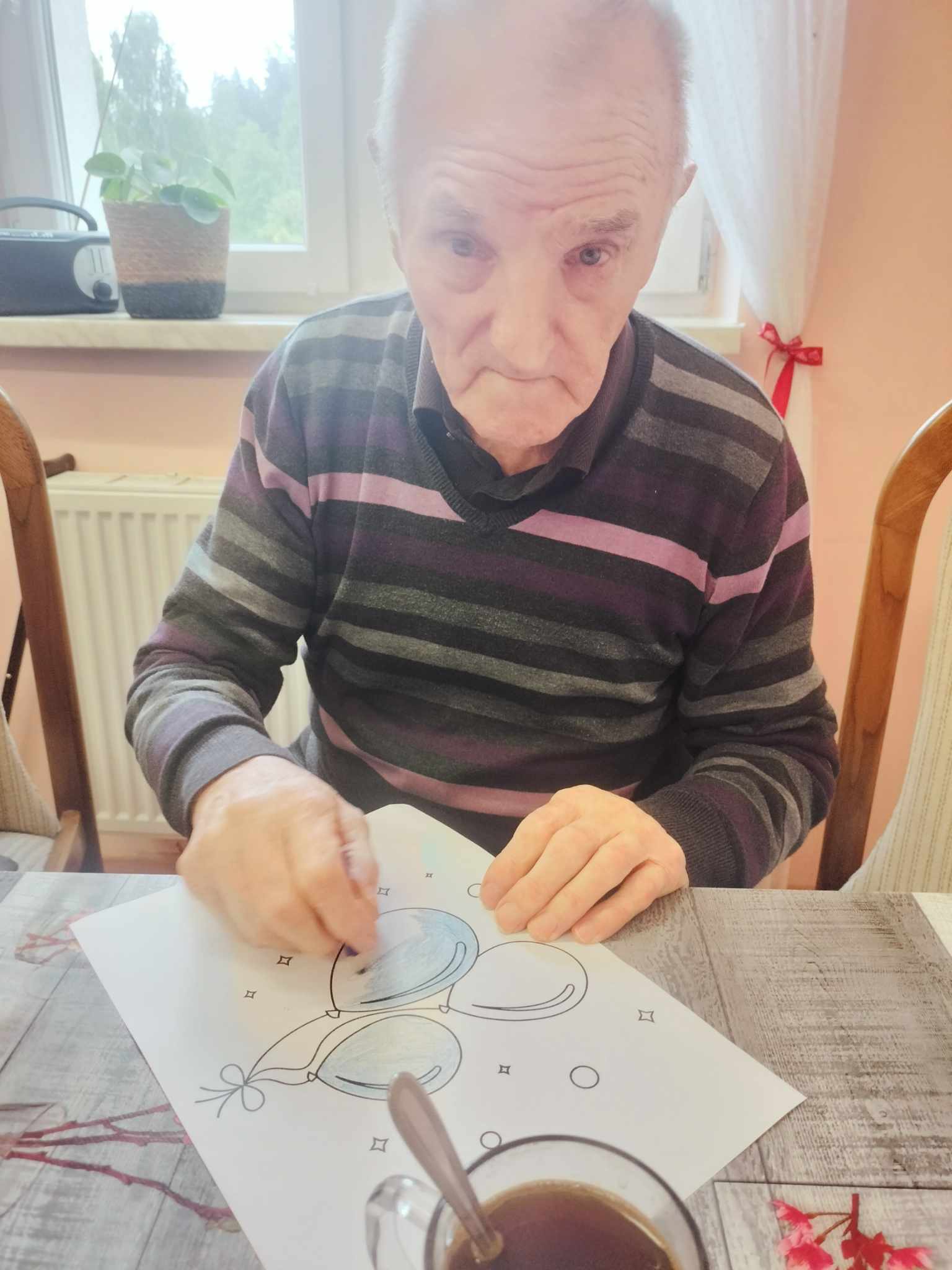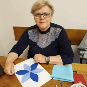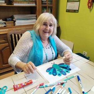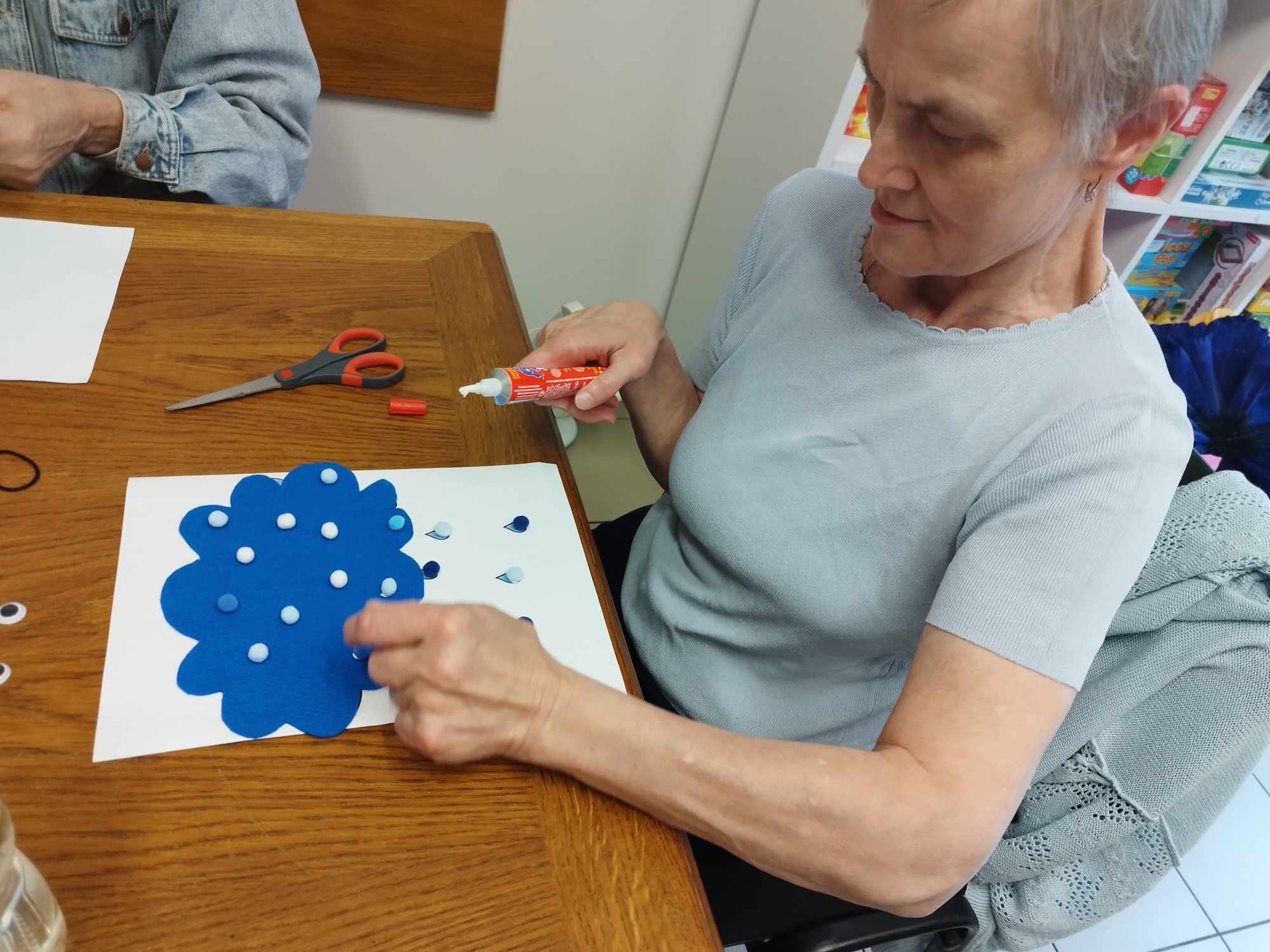 Dlatego też, podczas kolejnego kreatywnego czwartku nasi uczestnicy mieli za zadanie ozdobić obrazki w różnych odcieniach koloru niebieskiego takimi technikami jak: wyklejanie włóczką, filcem, kolorowanie kredką, malowanie farbami. Dzięki czemu powstały ciekawe i kreatywne obrazy, które uczestnicy zaprezentowali podczas pogadanki na temat koloru niebieskiego. Wszystkie prace znalazły swoje miejsce na wystawie.