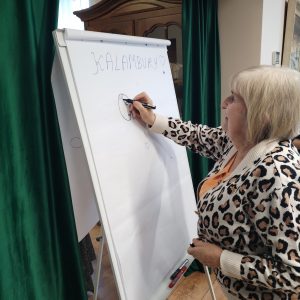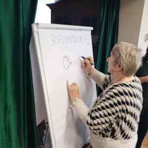 Kalambury rozwijają wyobraźnię, ćwiczą pamięć, spostrzegawczość i refleks, a jednocześnie są doskonałą okazją do integracji. Wspólna zabawa wprowadziła dużo śmiechu, rozładowała napięcie i pozwoliła każdemu uczestnikowi poczuć się swobodnie i twórczo.