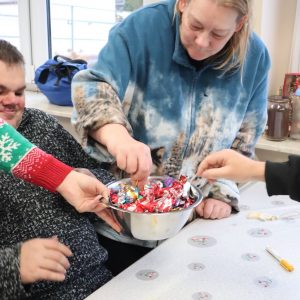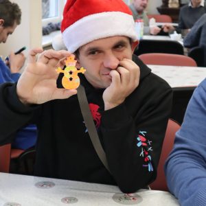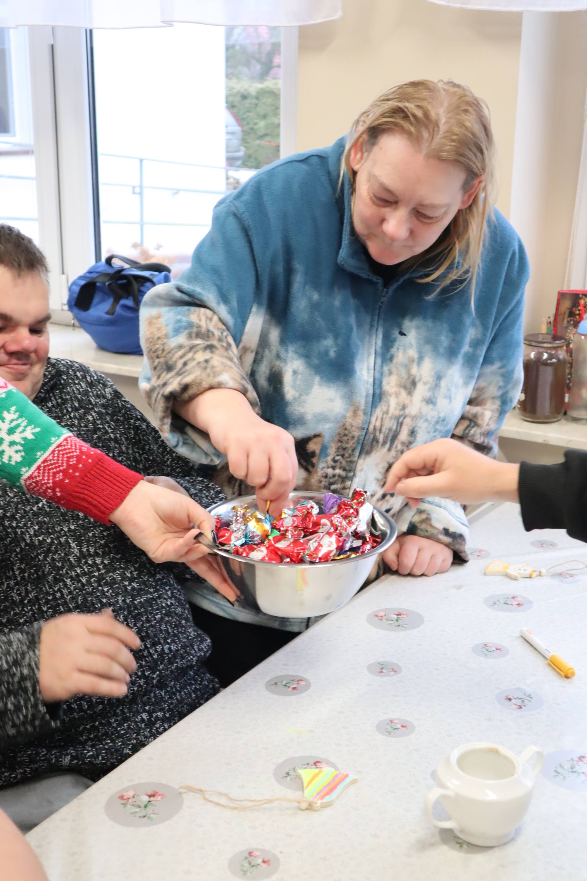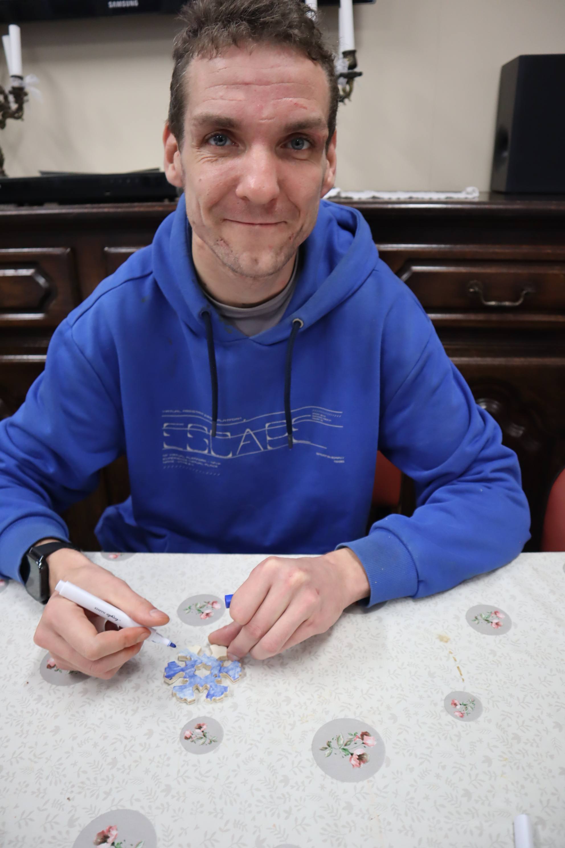W piątek w naszym Środowiskowym Domu Samopomocy zapanował prawdziwie świąteczny nastrój. W ramach Kreatywnego Piątku odbyły się mikołajkowe warsztaty świąteczne, podczas których nasi podopieczni z ogromnym zaangażowaniem i radością tworzyli drewniane zawieszki choinkowe, które ozdobią drzewka w ich domach. Każda praca była wyjątkowa i pełna świątecznego uroku.
