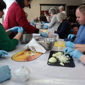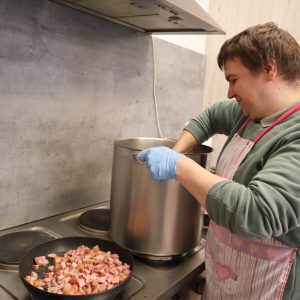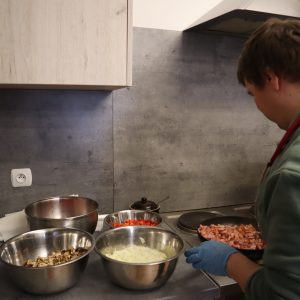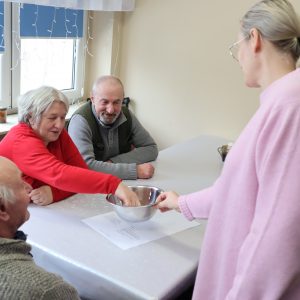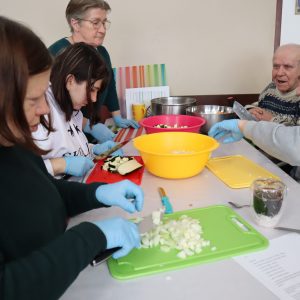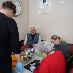 W naszym Środowiskowym Domu Samopomocy odbył się kolejny Cykliczny Dzień Pracowni Kulinarnej. Tym razem przygotowywaliśmy pyszne, aromatyczne leczo . Uczestnicy z dużym zaangażowaniem przystąpili do pracy. Samodzielnie kroili warzywa, paprykę, cukinię, cebulę oraz kiełbasę, dbając o estetykę i bezpieczeństwo podczas przygotowywania posiłku. Wspólne gotowanie było doskonałą okazją do ćwiczenia współpracy, planowania oraz rozwijania umiejętności kulinarnych. Po części kulinarnej przyszedł czas na aktywności tematyczne. Uczestnicy układali puzzle przedstawiające warzywa, ćwicząc spostrzegawczość i koncentrację. Została również przygotowana krzyżówka o tematyce kulinarnej, która sprawiła wiele radości i była okazją do utrwalenia nazw warzyw oraz pojęć związanych z gotowaniem. Na zakończenie odbyły się kalambury związane z pracownią kulinarną – nie zabrakło śmiechu, kreatywnych pomysłów i dobrej zabawy. To był dzień pełen smaków, integracji i wspólnej aktywności. Już nie możemy doczekać się kolejnego spotkania w naszej pracowni kulin