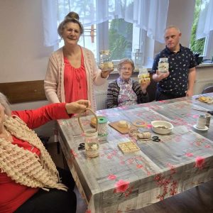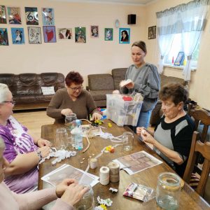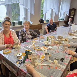 Rękodzieło cieszy naszych uczestników, a wykonanie go samodzielnie, jest dla nich wielkim zachwytem i coraz bardziej chętnie podejmują się realizowania zaproponowanych im projektów. Dzisiejsze prace uczestnicy wykonywali z myślą o wykorzystaniu ich w aranżacji wnętrz swojej przestrzeni domowej, gdyż mogli swoje lampiony zabrać do domu. Kilku uczestników zapowiedziało, iż ich dzieła raz posłużą jako lampion, a raz jako wazoniki, w zależności od potrzeby, co wydało się bardzo dobrym pomysłem.