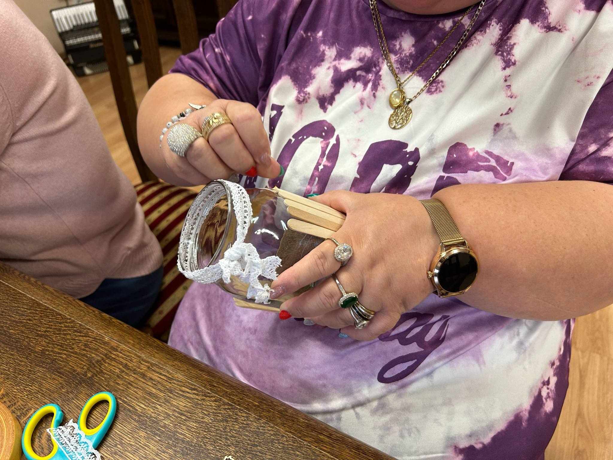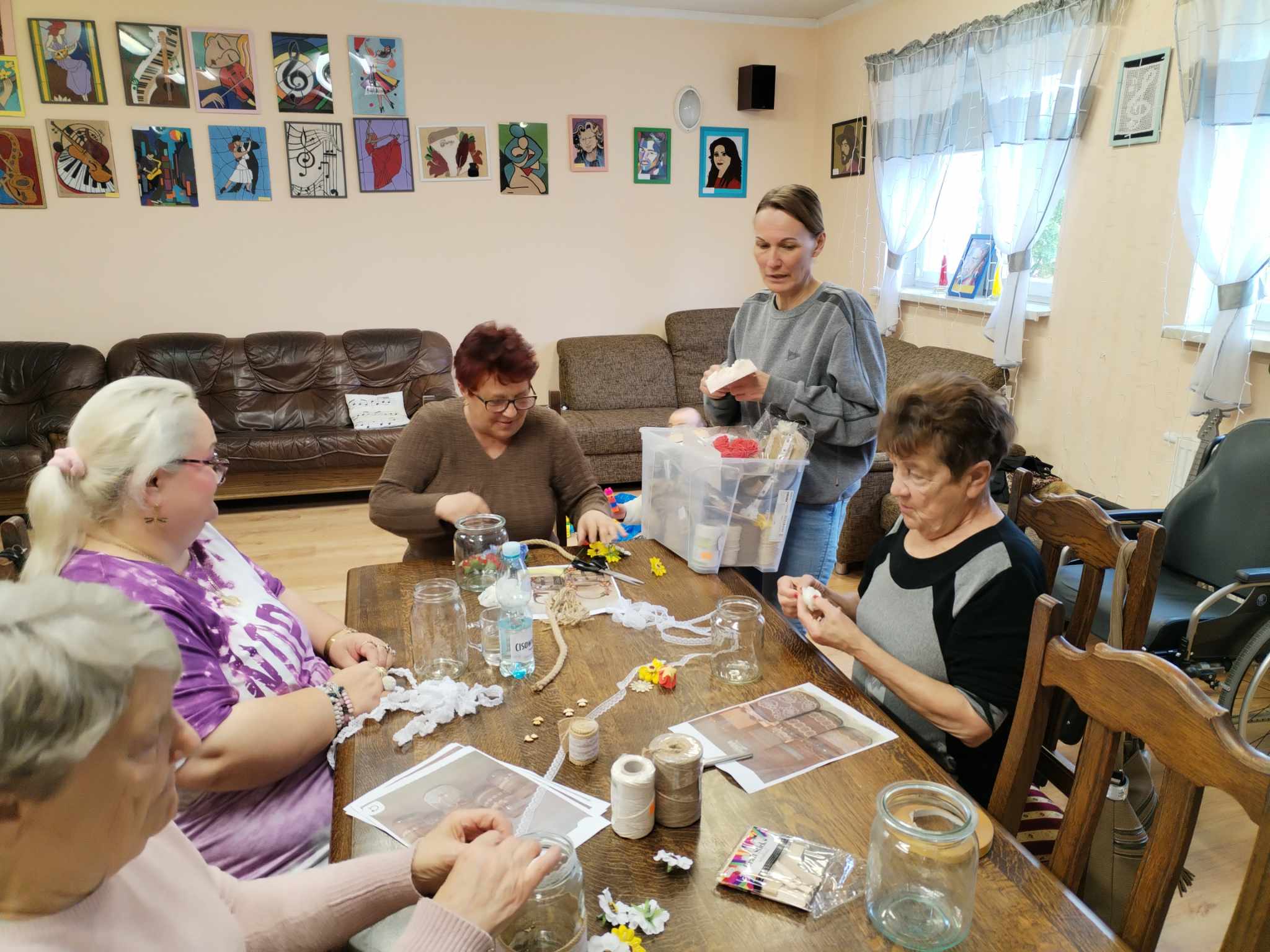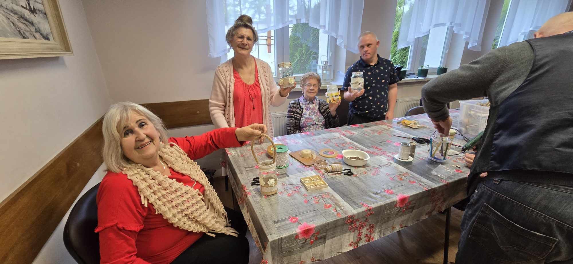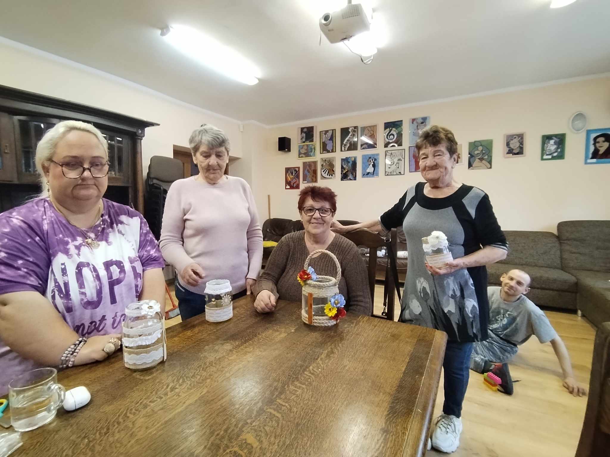 Rękodzieło cieszy naszych uczestników, a wykonanie go samodzielnie, jest dla nich wielkim zachwytem i coraz bardziej chętnie podejmują się realizowania zaproponowanych im projektów. Dzisiejsze prace uczestnicy wykonywali z myślą o wykorzystaniu ich w aranżacji wnętrz swojej przestrzeni domowej, gdyż mogli swoje lampiony zabrać do domu. Kilku uczestników zapowiedziało, iż ich dzieła raz posłużą jako lampion, a raz jako wazoniki, w zależności od potrzeby, co wydało się bardzo dobrym pomysłem.