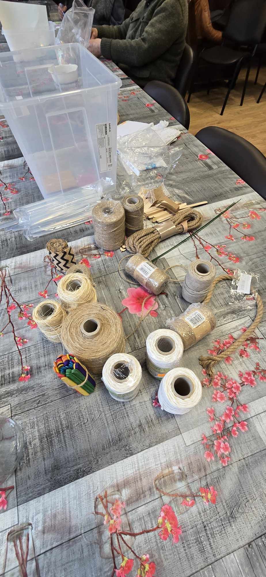Dlatego na dzisiejszym Kreatywnym Dniu uczestnicy mieli za zadanie wykonać lampiony ze sznurka. Do wykonania tych prac mieli zapewnione różnego rodzaju materiały: słoiki, sznurki, wstążki, kwiatki, drewniane ozdoby i patyczki do lodów. Każdy uczestnik wykonywał swój niepowtarzalny lampion, wykazując się kreatywnością i wiarą w swoje możliwości.