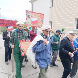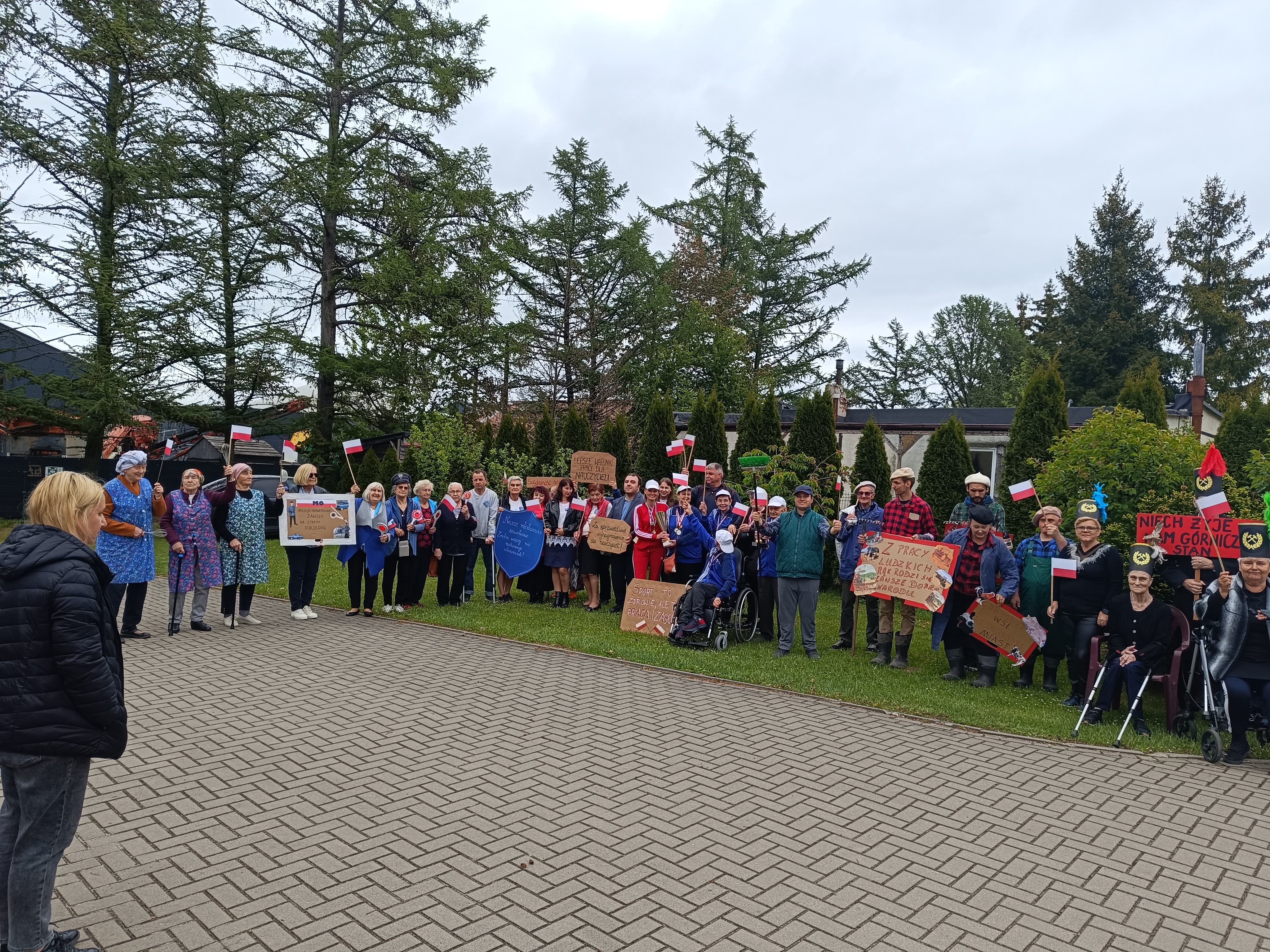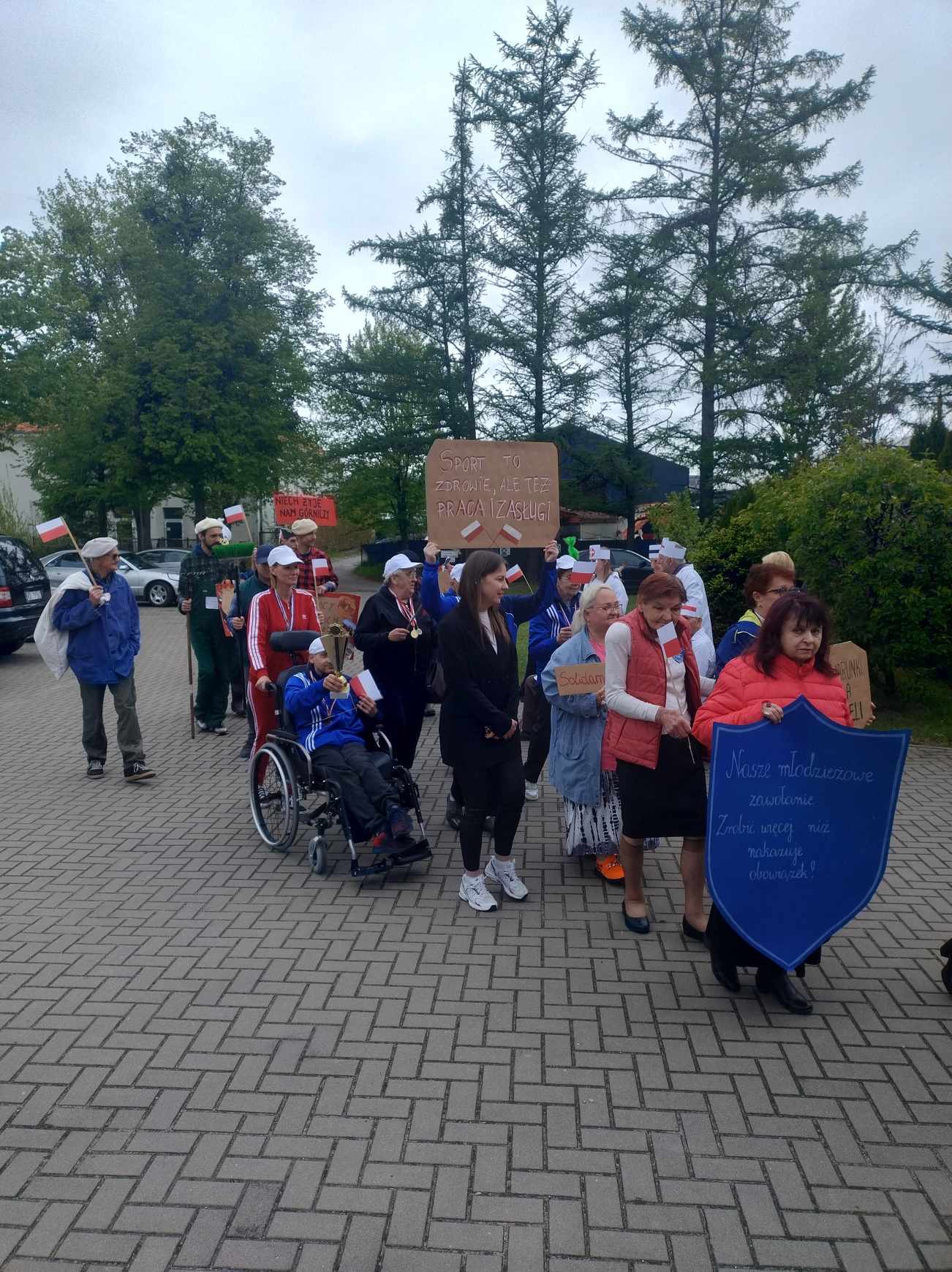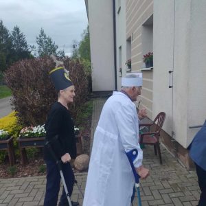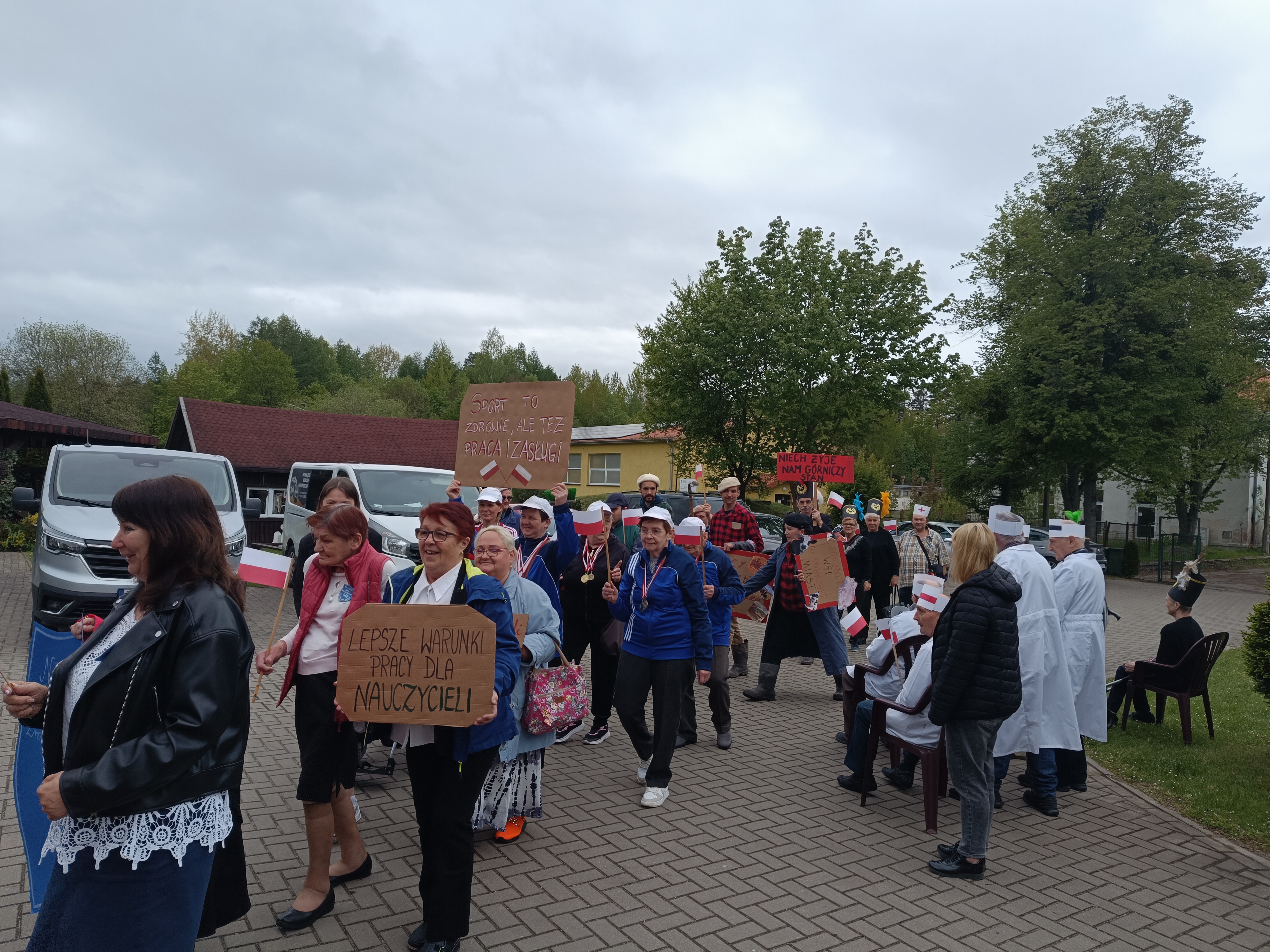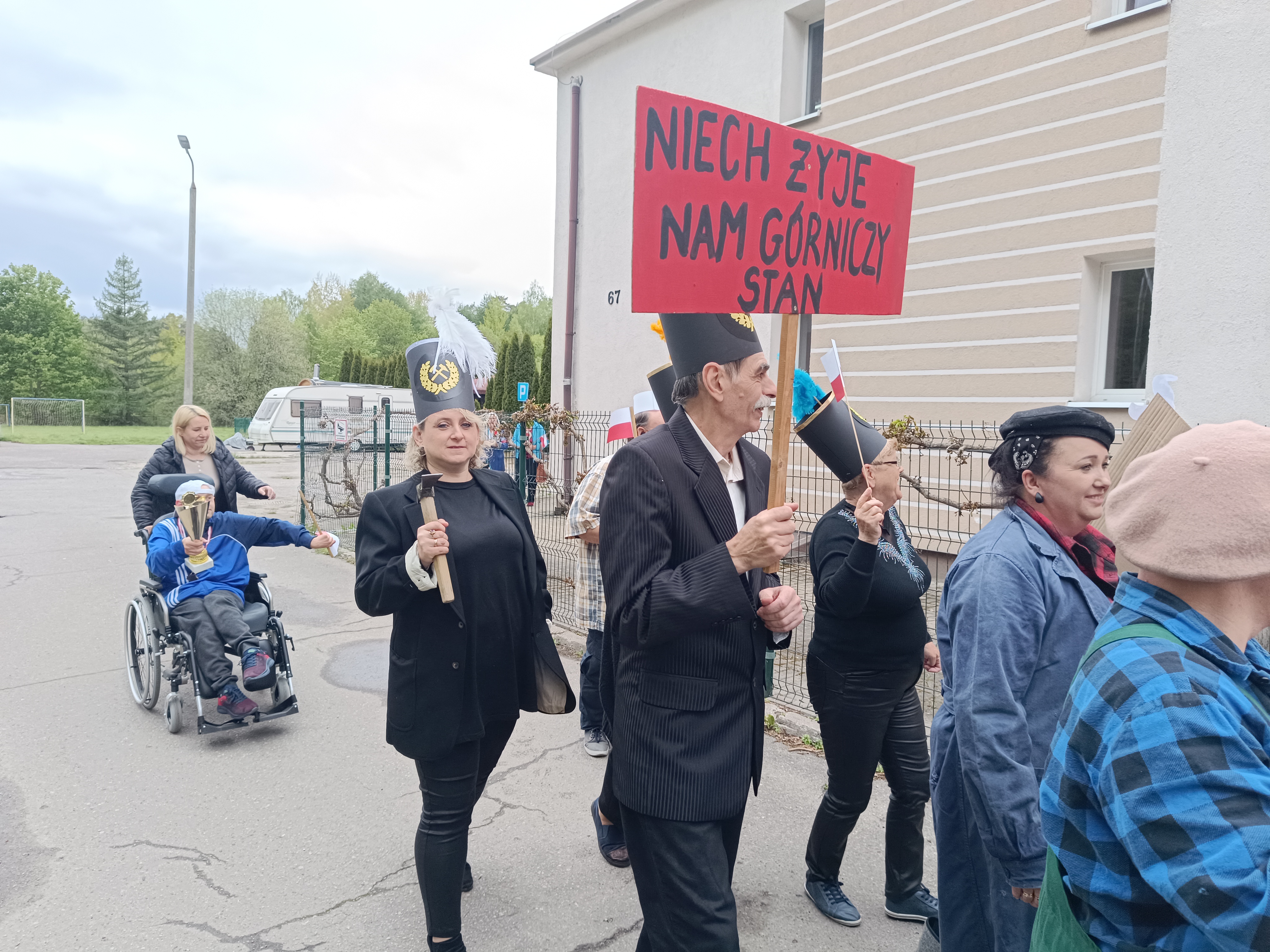 Każda z pracowni dała z siebie wszystko i można było wyczuć w naszym domu atmosferę Pochodu Majowego. Po uroczystym odsłuchaniu hymnu Polski każdy z przedstawicieli grup pracowniczych uroczyście przemaszerował po terenie Środowiskowego Domu Samopomocy i okolicy uroczyście wymachując to albo własnoręcznie przygotowanymi transparentami lub flagami. Najbardziej rzucały się w oczy wspaniałe przebrania, które przygotowały w pracownie.