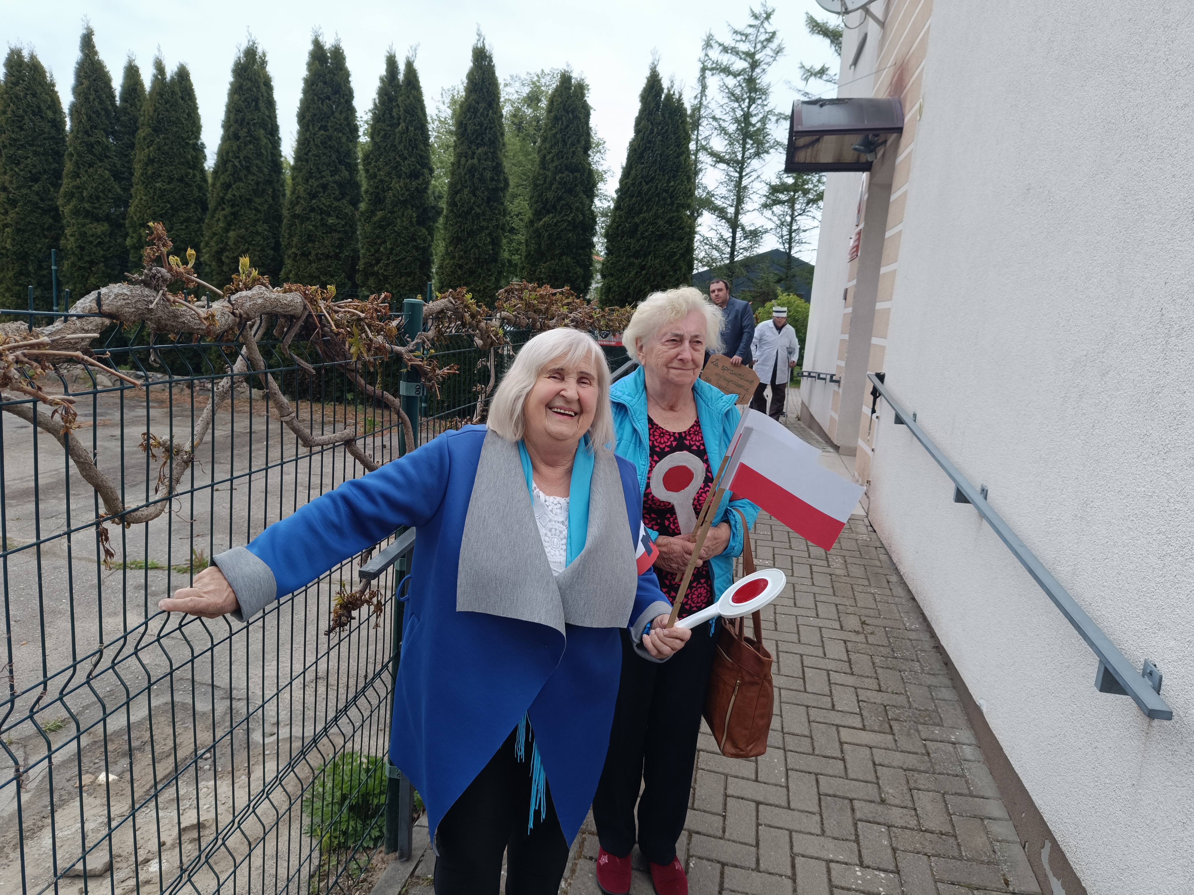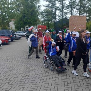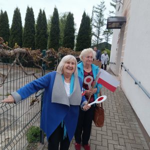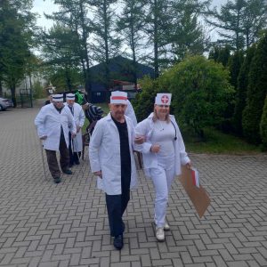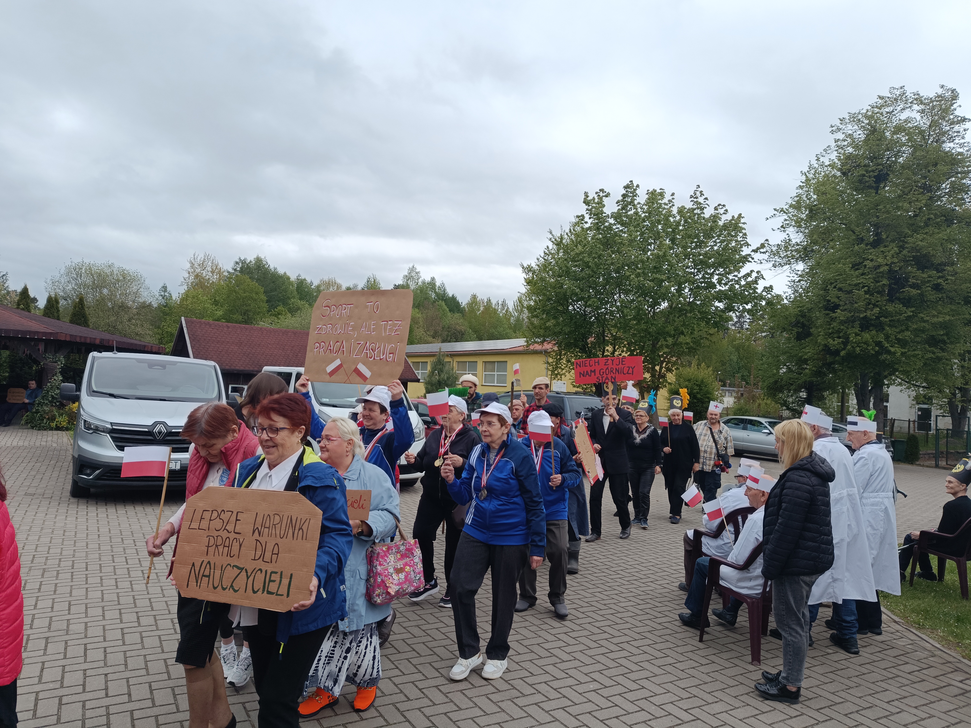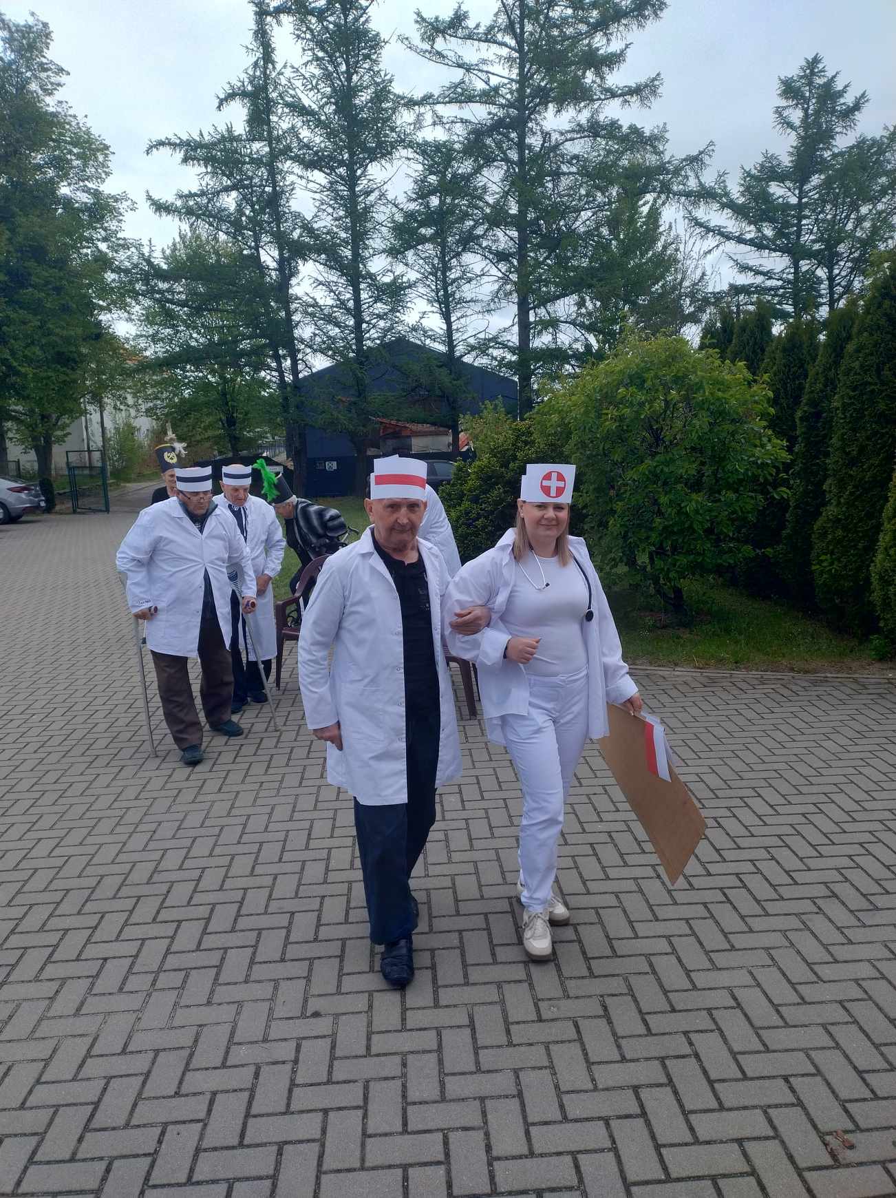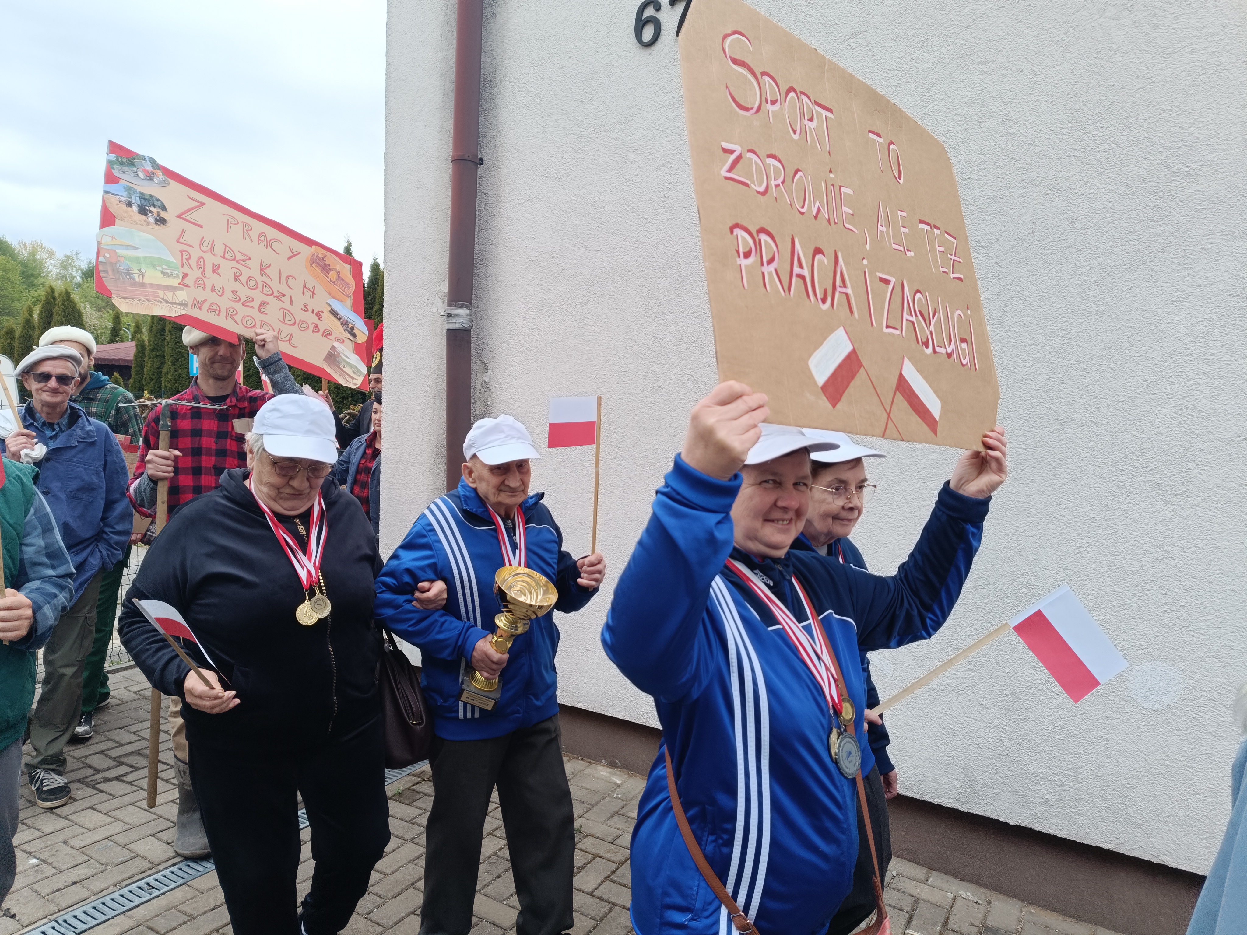 Każda z pracowni dała z siebie wszystko i można było wyczuć w naszym domu atmosferę Pochodu Majowego. Po uroczystym odsłuchaniu hymnu Polski każdy z przedstawicieli grup pracowniczych uroczyście przemaszerował po terenie Środowiskowego Domu Samopomocy i okolicy uroczyście wymachując to albo własnoręcznie przygotowanymi transparentami lub flagami. Najbardziej rzucały się w oczy wspaniałe przebrania, które przygotowały w pracownie.