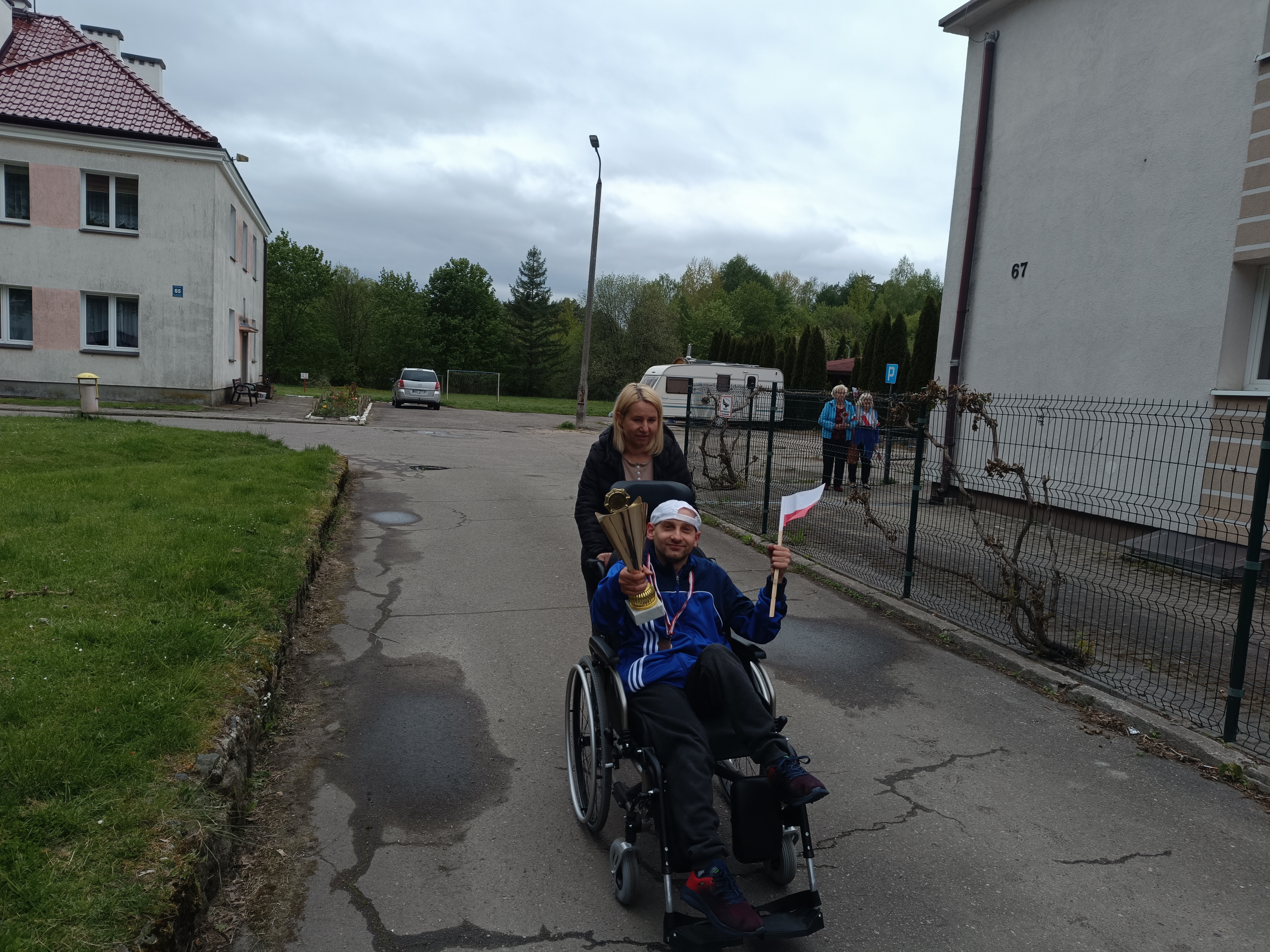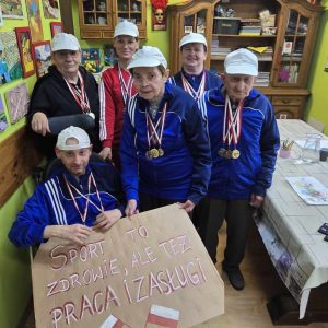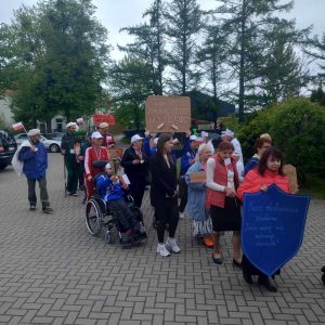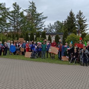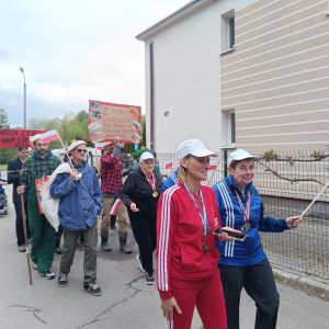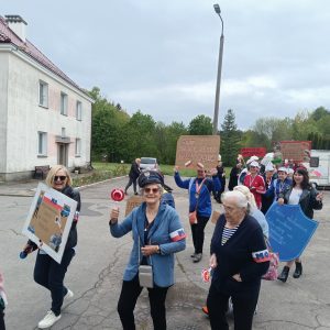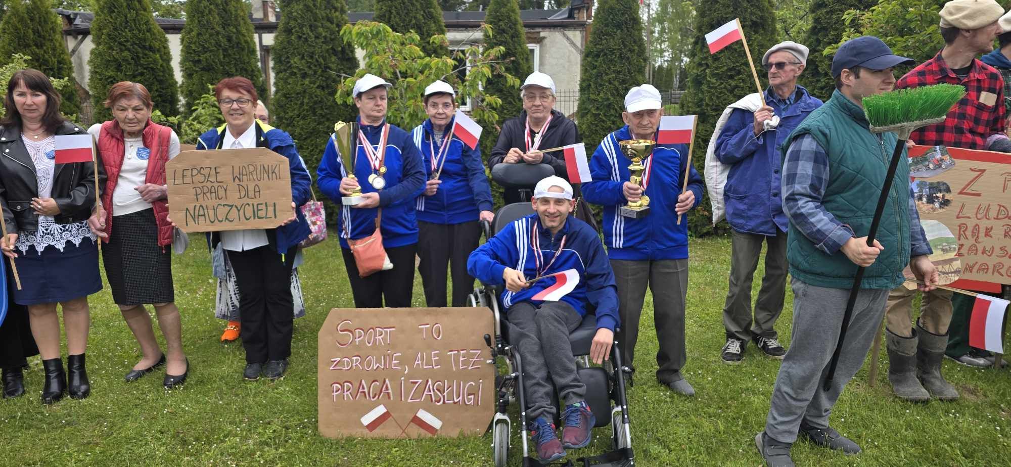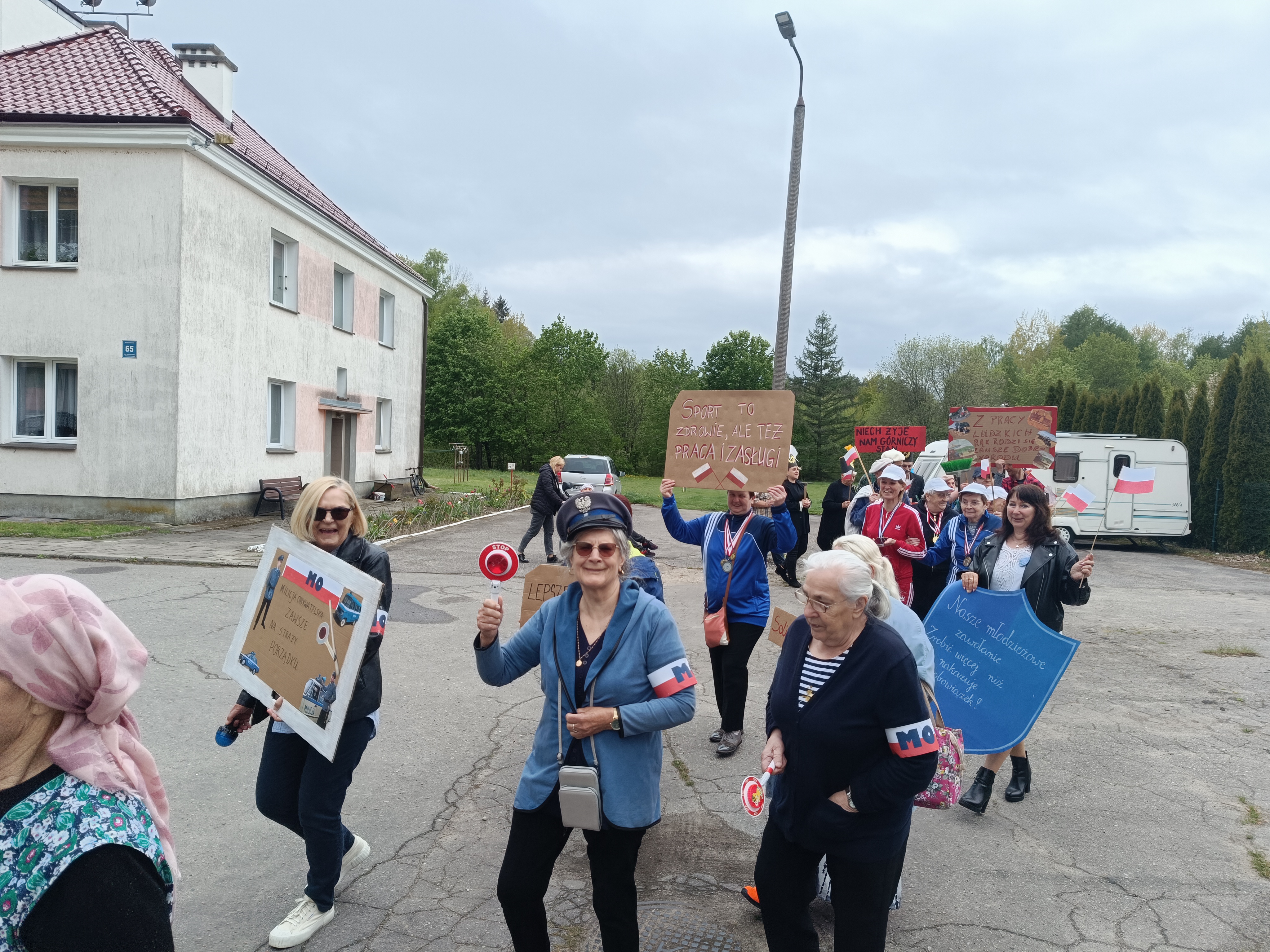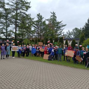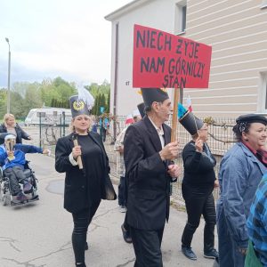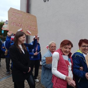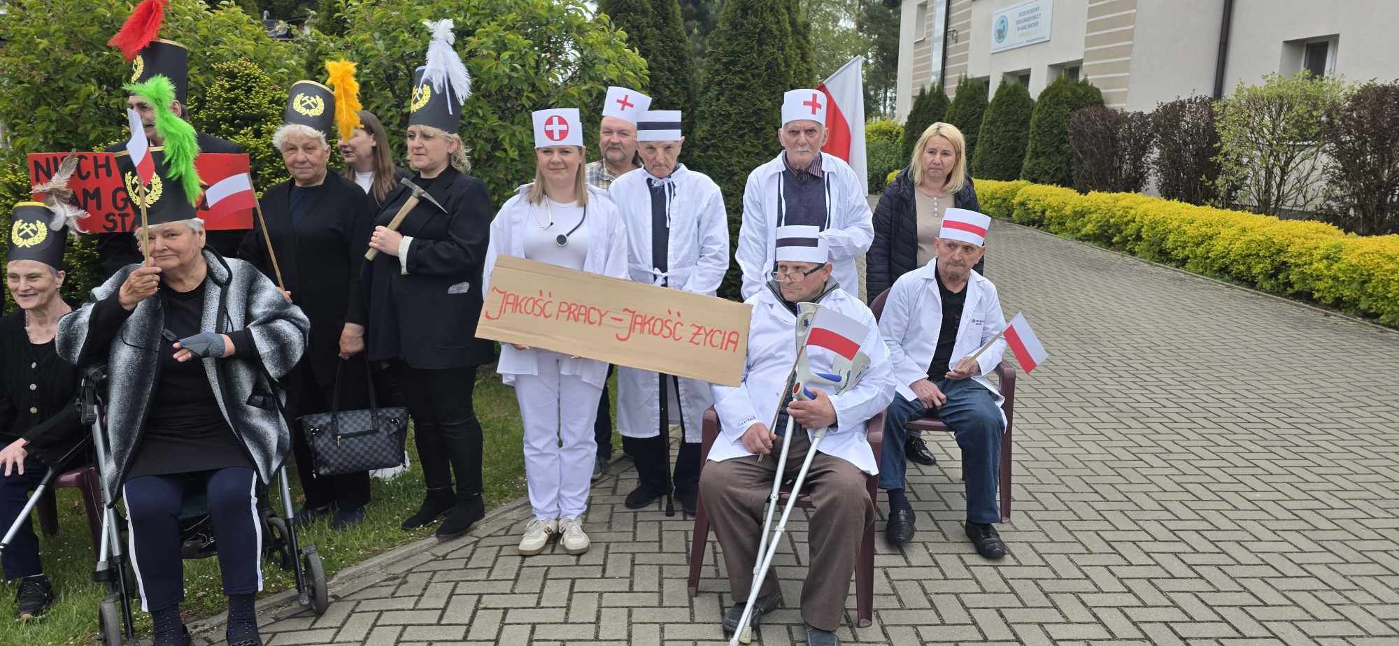 Każda z pracowni dała z siebie wszystko i można było wyczuć w naszym domu atmosferę Pochodu Majowego. Po uroczystym odsłuchaniu hymnu Polski każdy z przedstawicieli grup pracowniczych uroczyście przemaszerował po terenie Środowiskowego Domu Samopomocy i okolicy uroczyście wymachując to albo własnoręcznie przygotowanymi transparentami lub flagami. Najbardziej rzucały się w oczy wspaniałe przebrania, które przygotowały w pracownie.