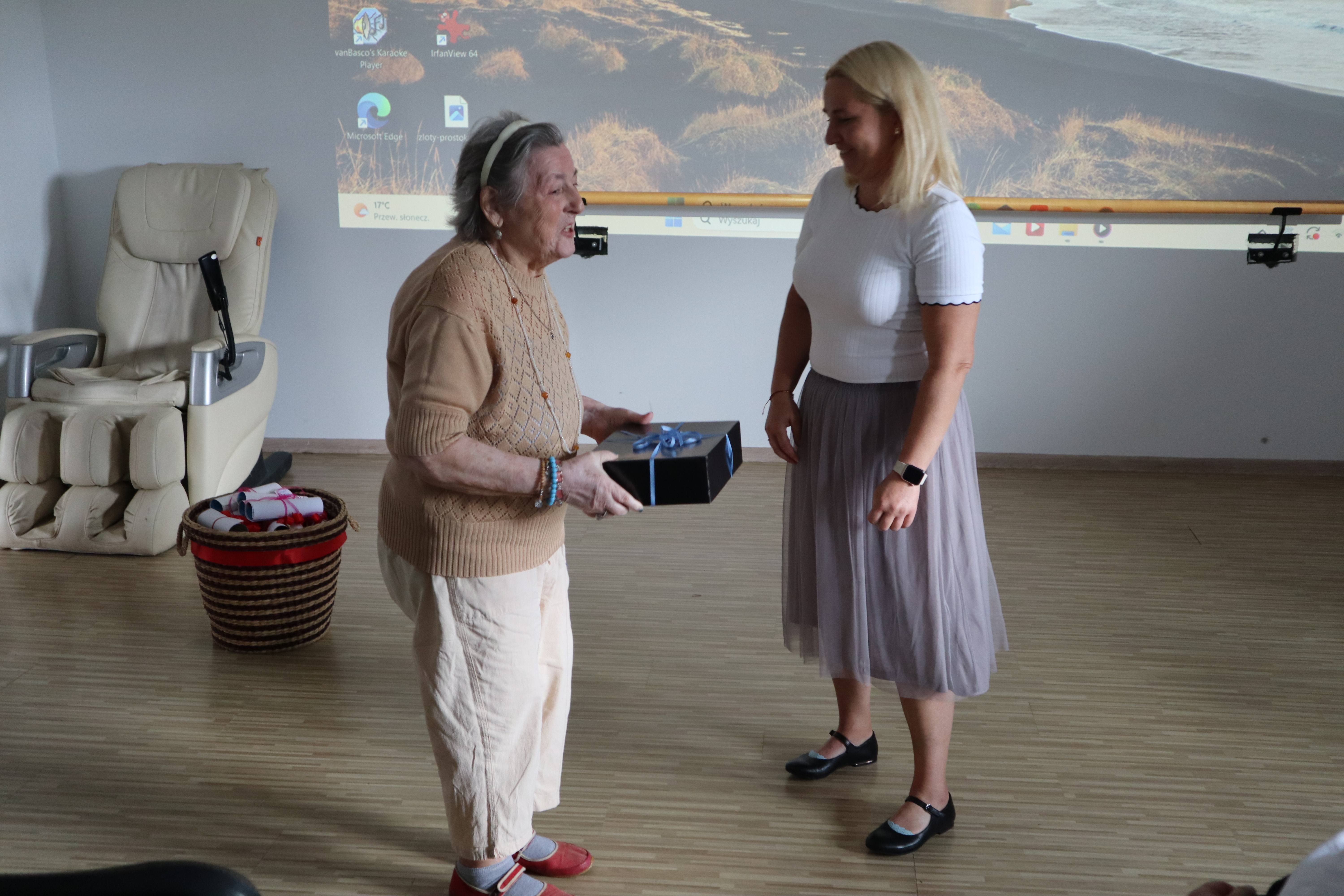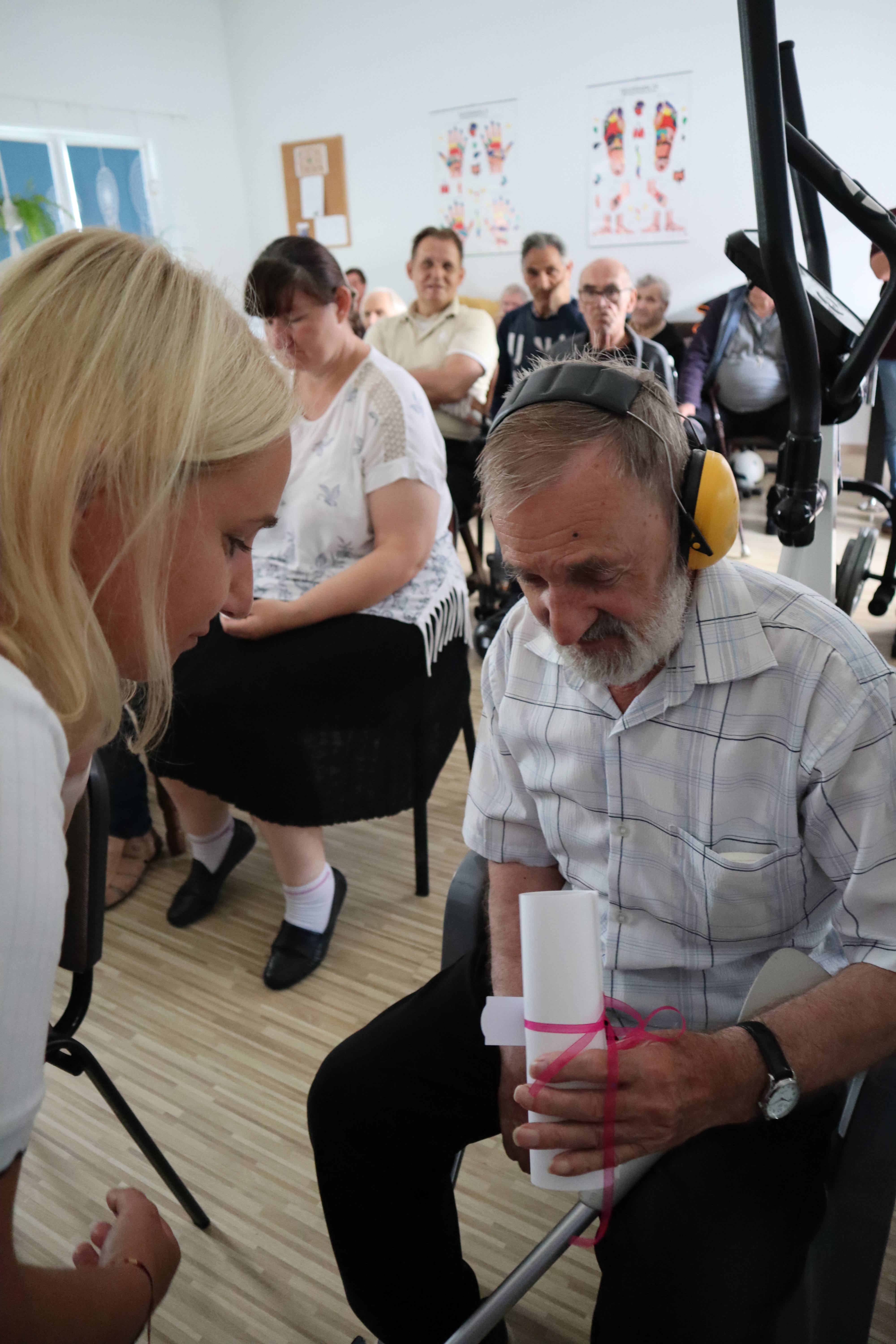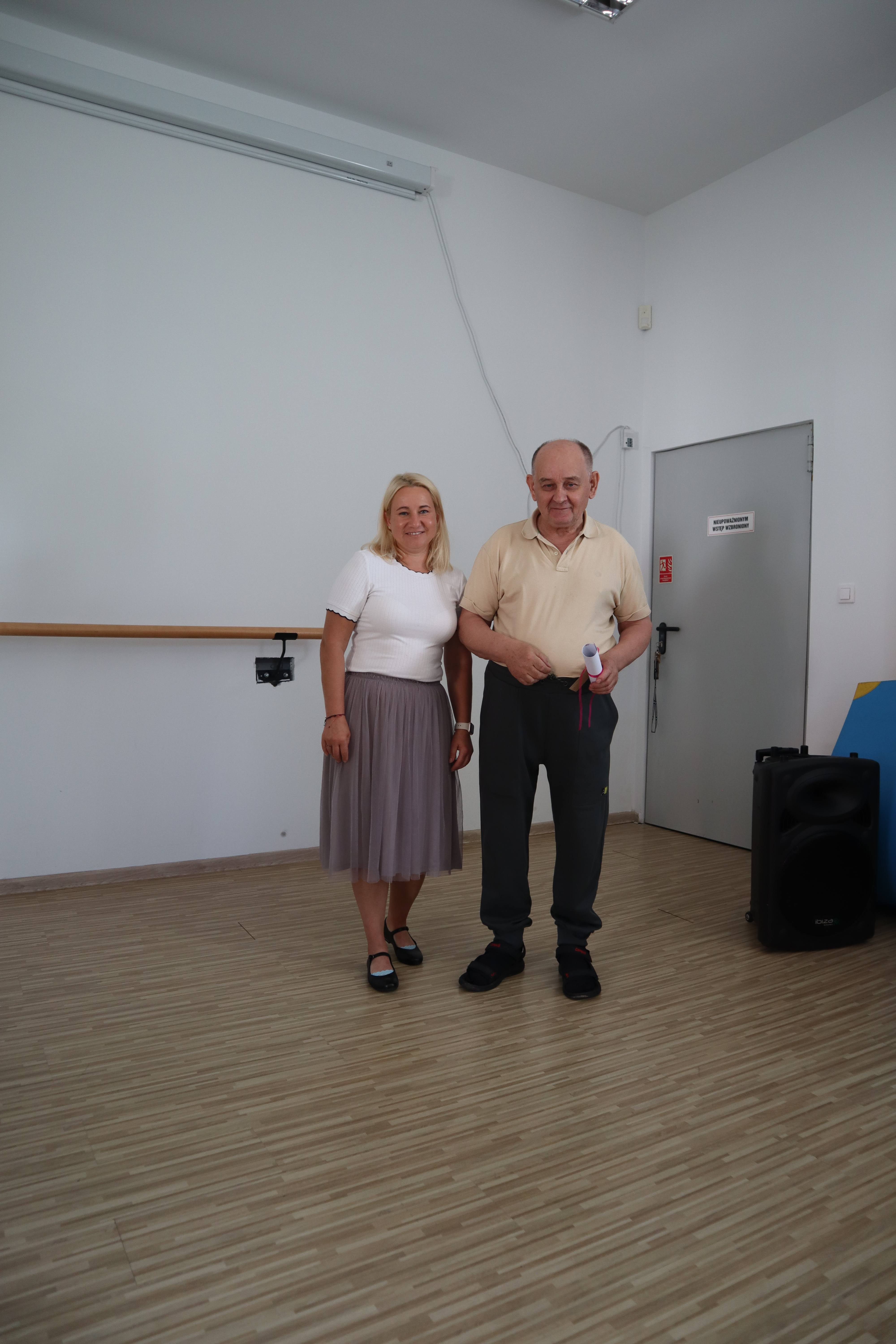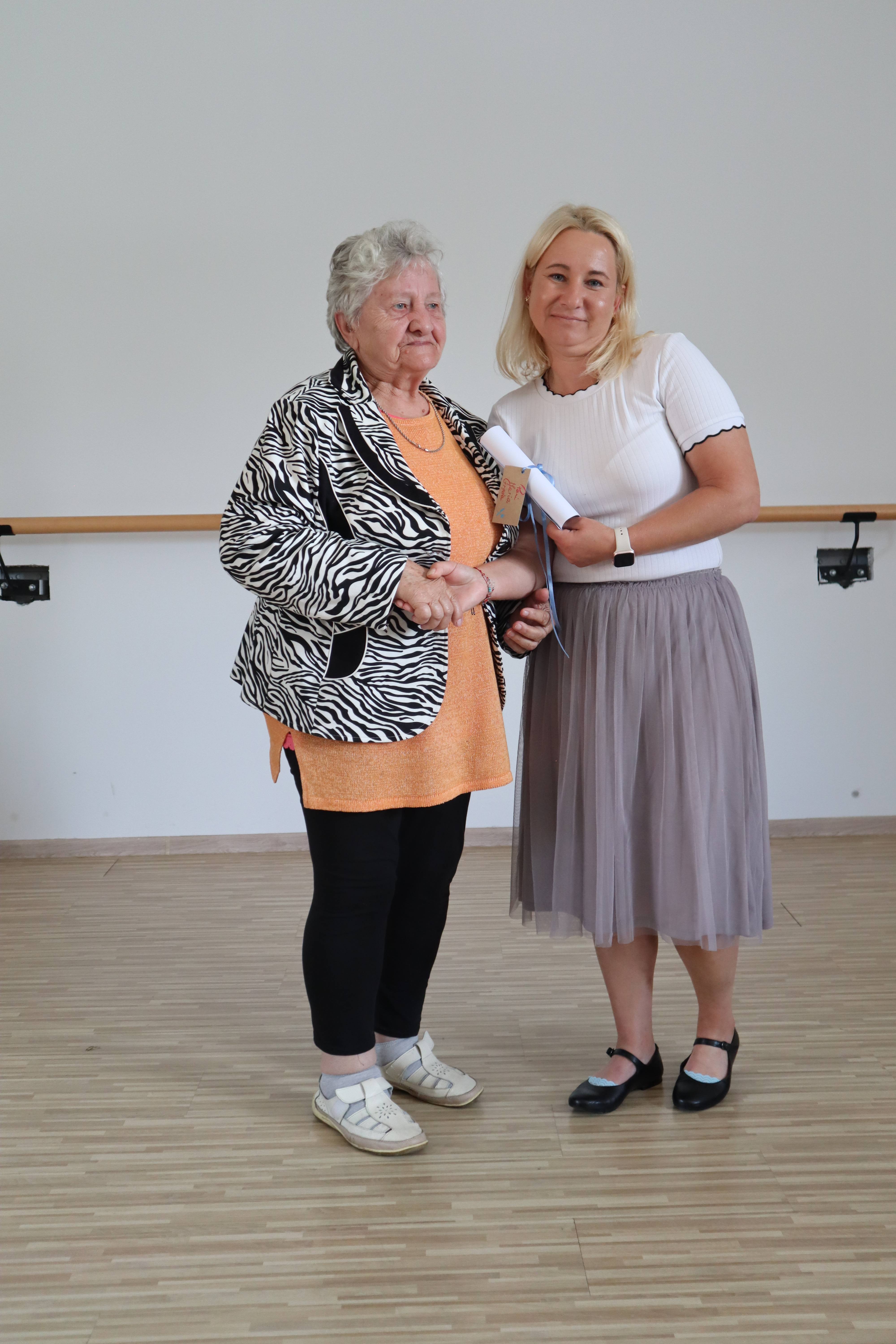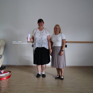 Następnie zaprezentowany został pokaz zdjęć dokumentujących najważniejsze wydarzenia i chwile z minionych miesięcy. Uczestnicy z uśmiechami i wzruszeniem wspominali wspólne wycieczki, warsztaty, uroczystości i codzienne aktywności. Każdy uczestnik otrzymał również spersonalizowany list od swojego pracownika pierwszego kontaktu – podsumowanie roku pełnego wyzwań, sukcesów oraz indywidualnych postępów. Był to bardzo osobisty i poruszający moment dla wielu z nas. Została wyróżniona również Pani Danuta S, uczestniczka, która miała 100% frekwencji w ostatnim roku działalności – takie zaangażowanie zasługuje na docenienie!