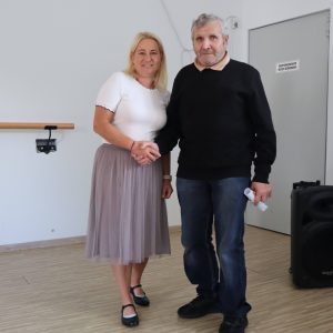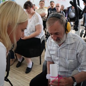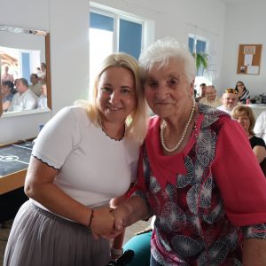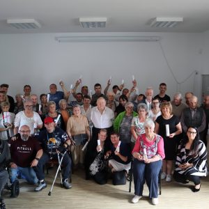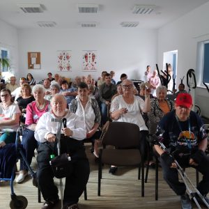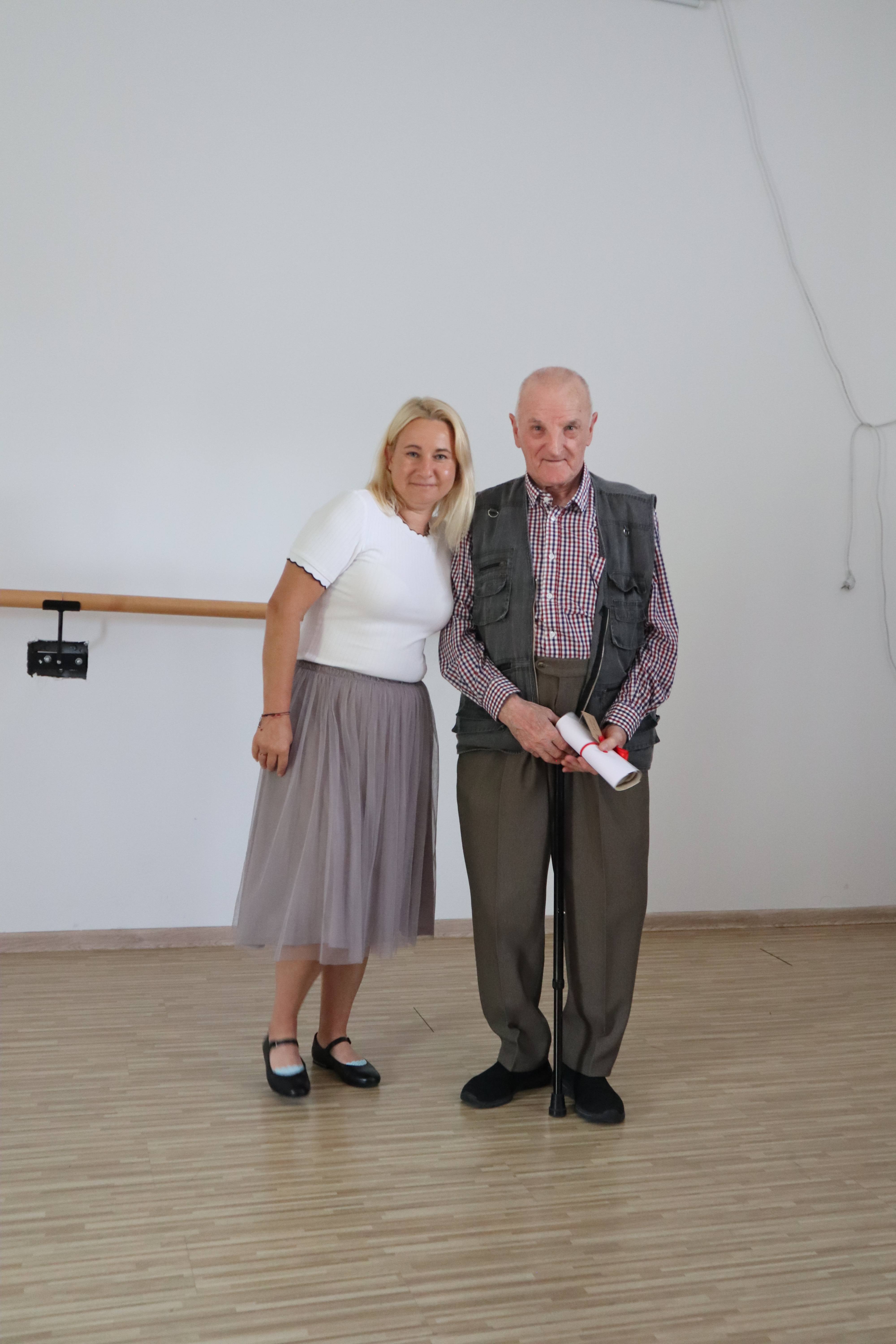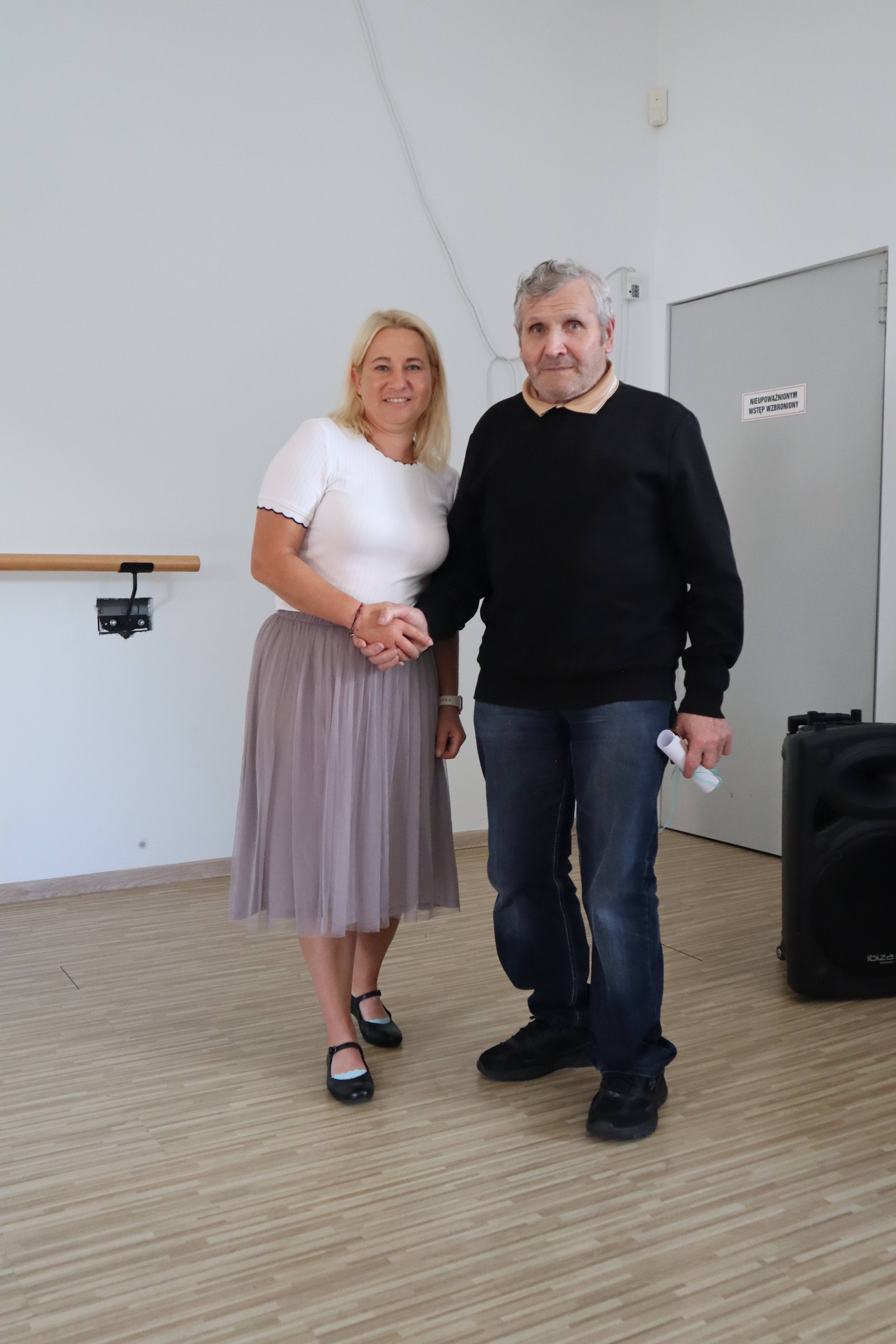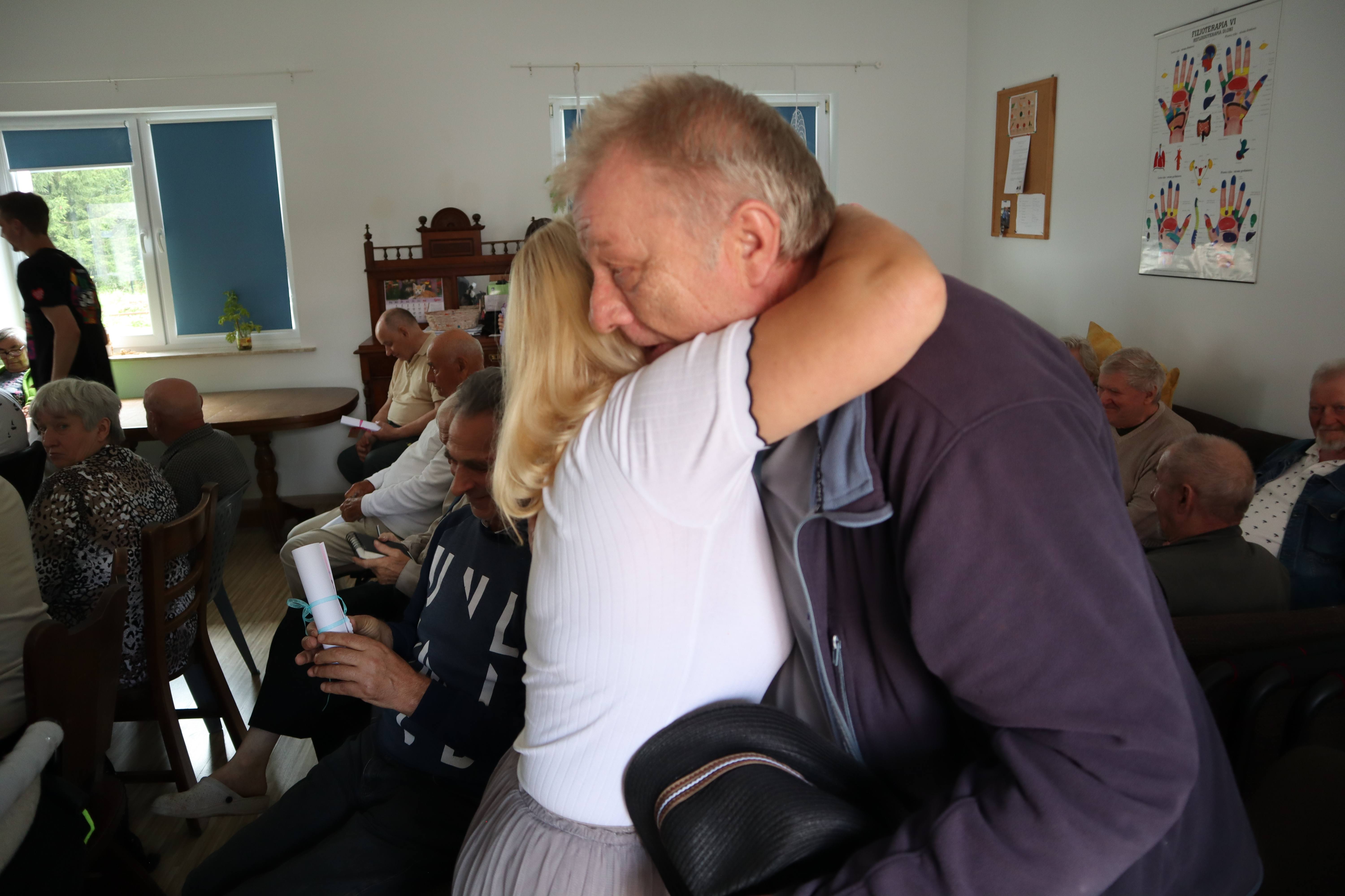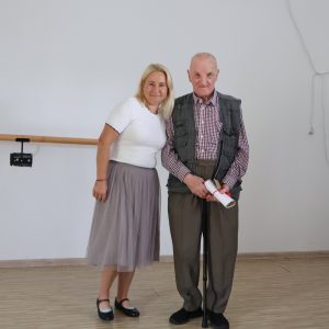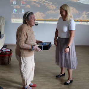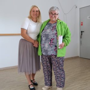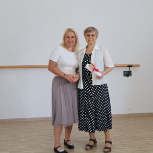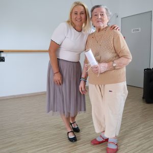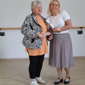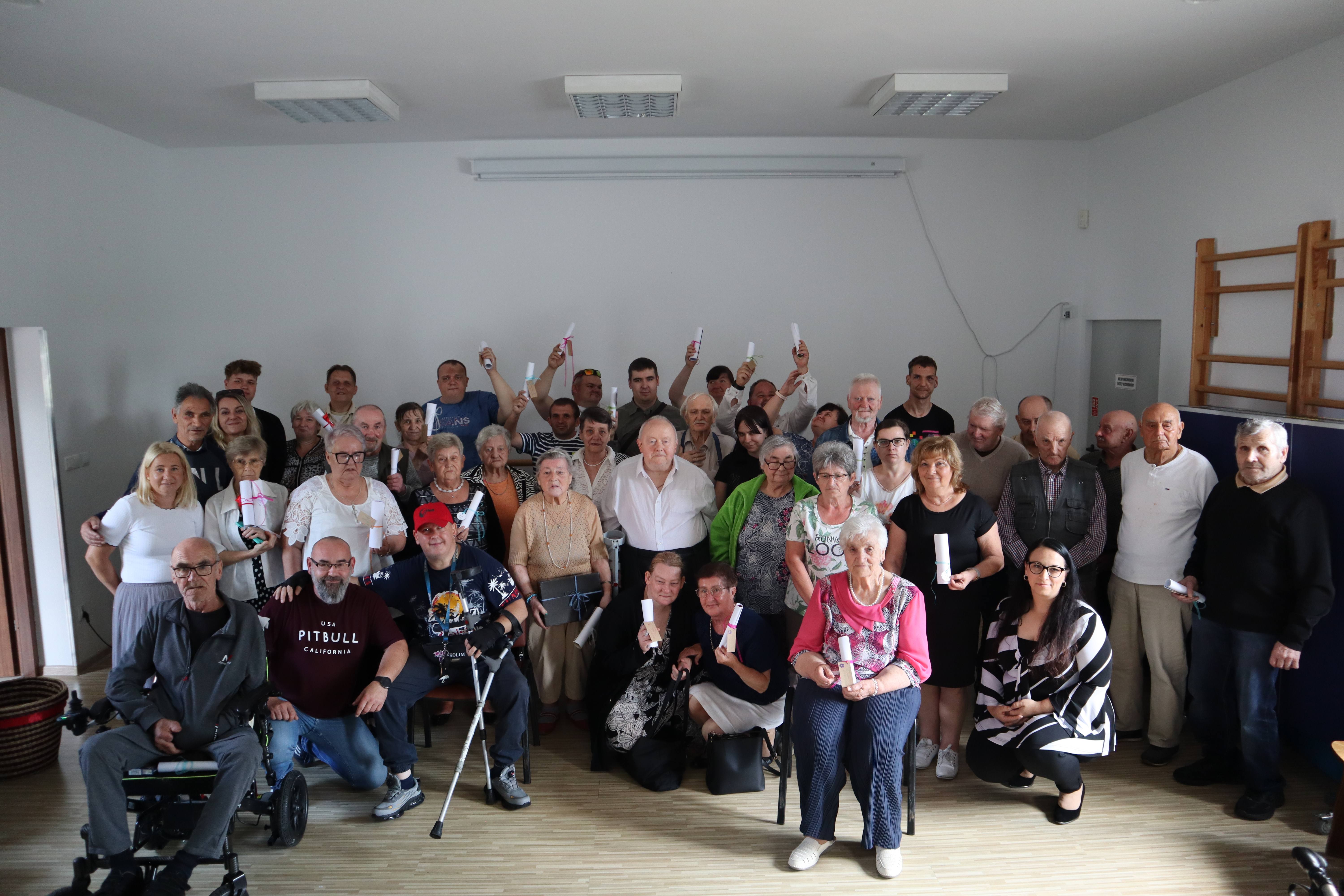 Następnie zaprezentowany został pokaz zdjęć dokumentujących najważniejsze wydarzenia i chwile z minionych miesięcy. Uczestnicy z uśmiechami i wzruszeniem wspominali wspólne wycieczki, warsztaty, uroczystości i codzienne aktywności. Każdy uczestnik otrzymał również spersonalizowany list od swojego pracownika pierwszego kontaktu – podsumowanie roku pełnego wyzwań, sukcesów oraz indywidualnych postępów. Był to bardzo osobisty i poruszający moment dla wielu z nas. Została wyróżniona również Pani Danuta S, uczestniczka, która miała 100% frekwencji w ostatnim roku działalności – takie zaangażowanie zasługuje na docenienie!