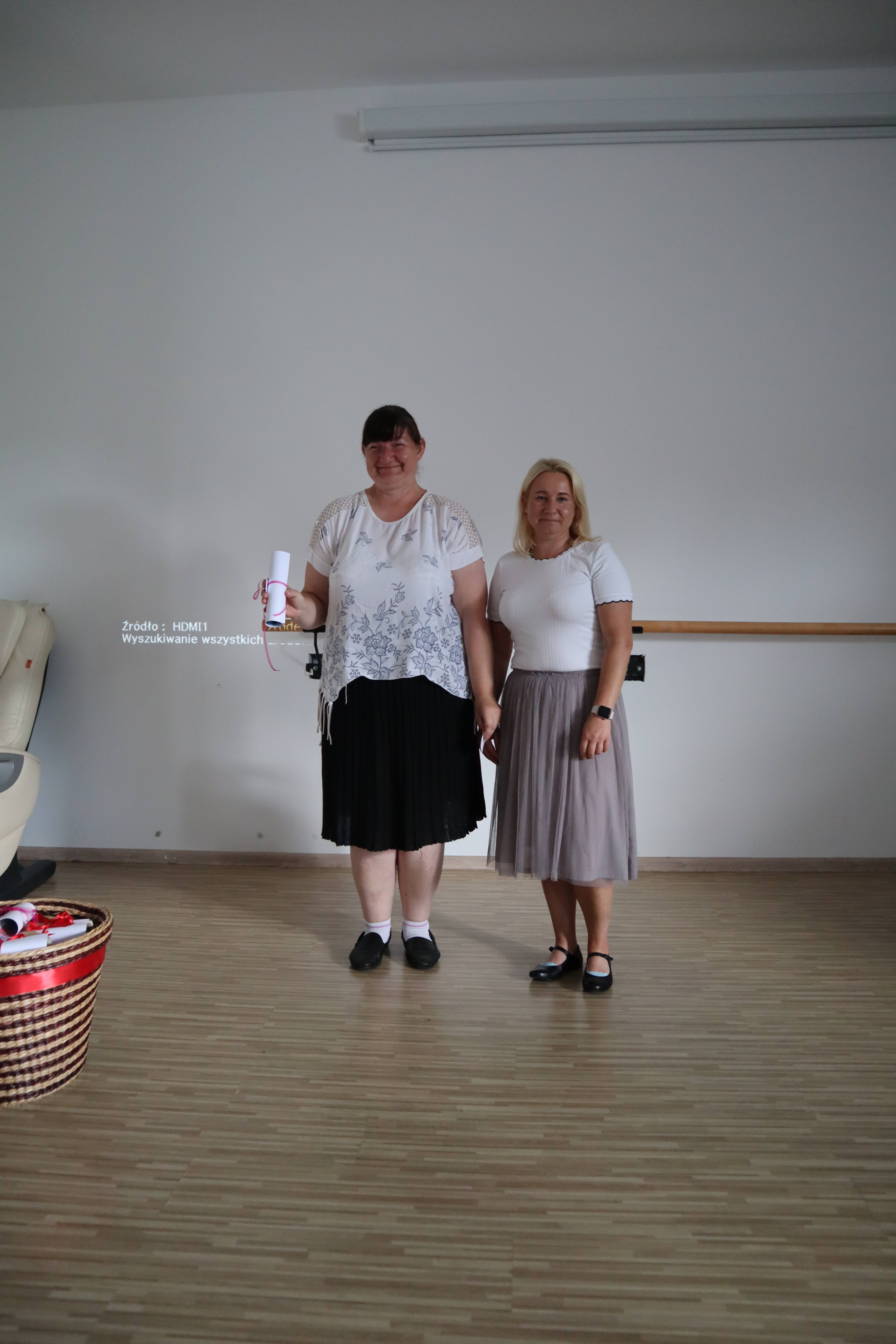 Uroczystość rozpoczęła się przemówieniem Pani Kierownik, która serdecznie podziękowała wszystkim uczestnikom, pracownikom i osobom wspierającym za zaangażowanie oraz wspólnie spędzony czas. Podkreśliła znaczenie codziennych spotkań, wspólnych działań i wzajemnego wsparcia, które budują naszą wyjątkową społeczność.