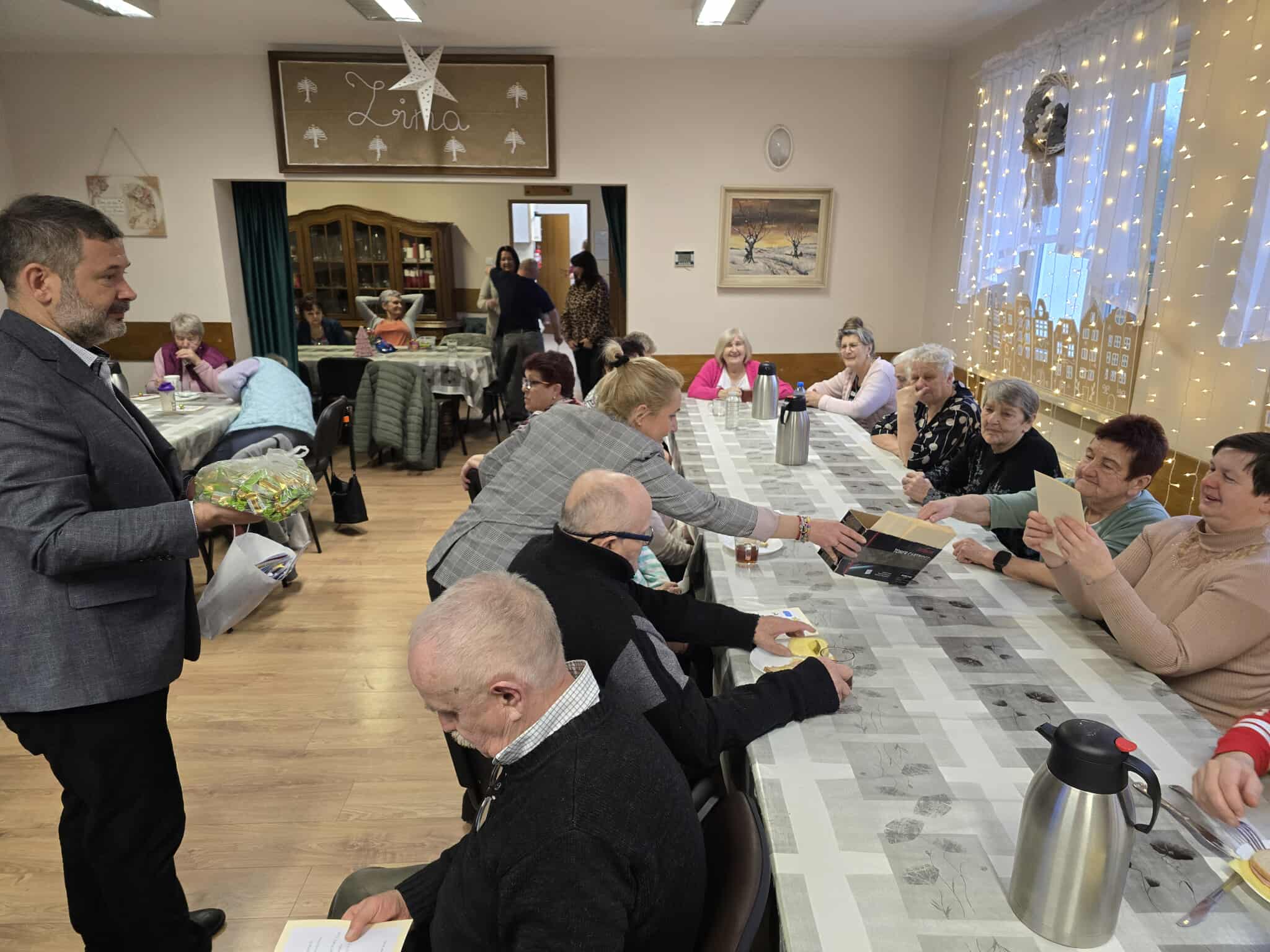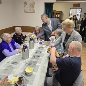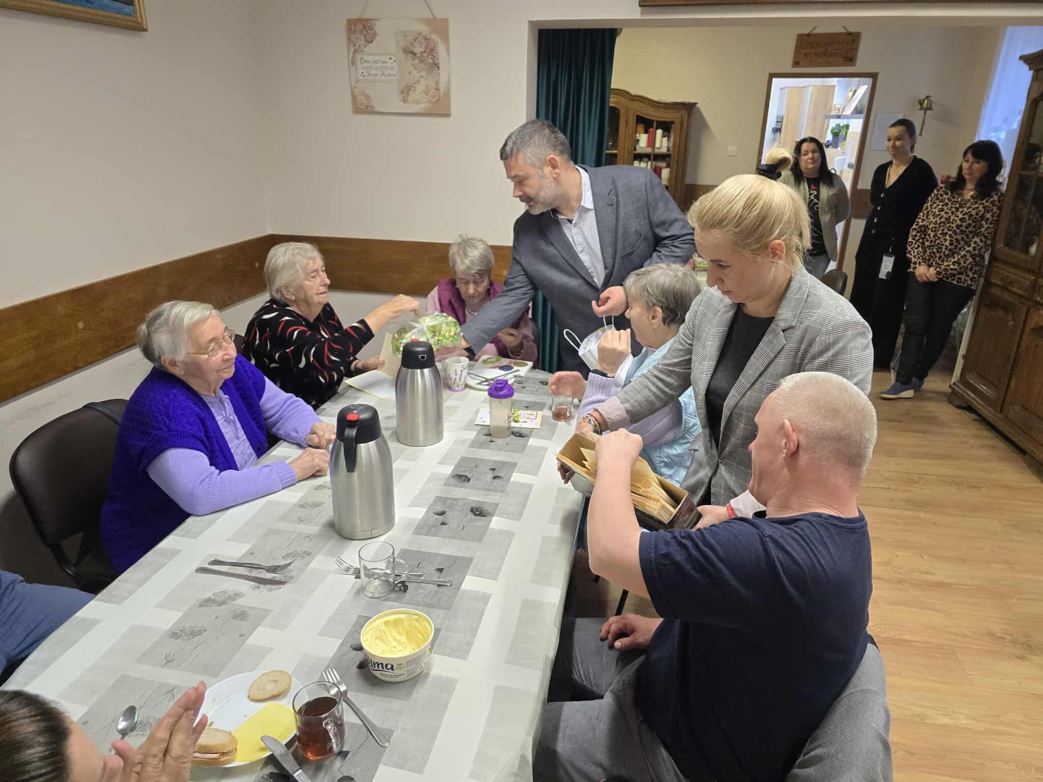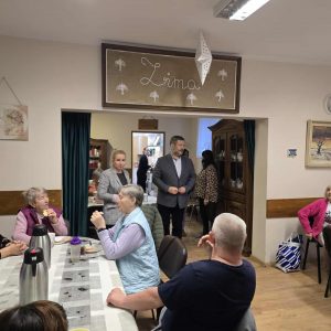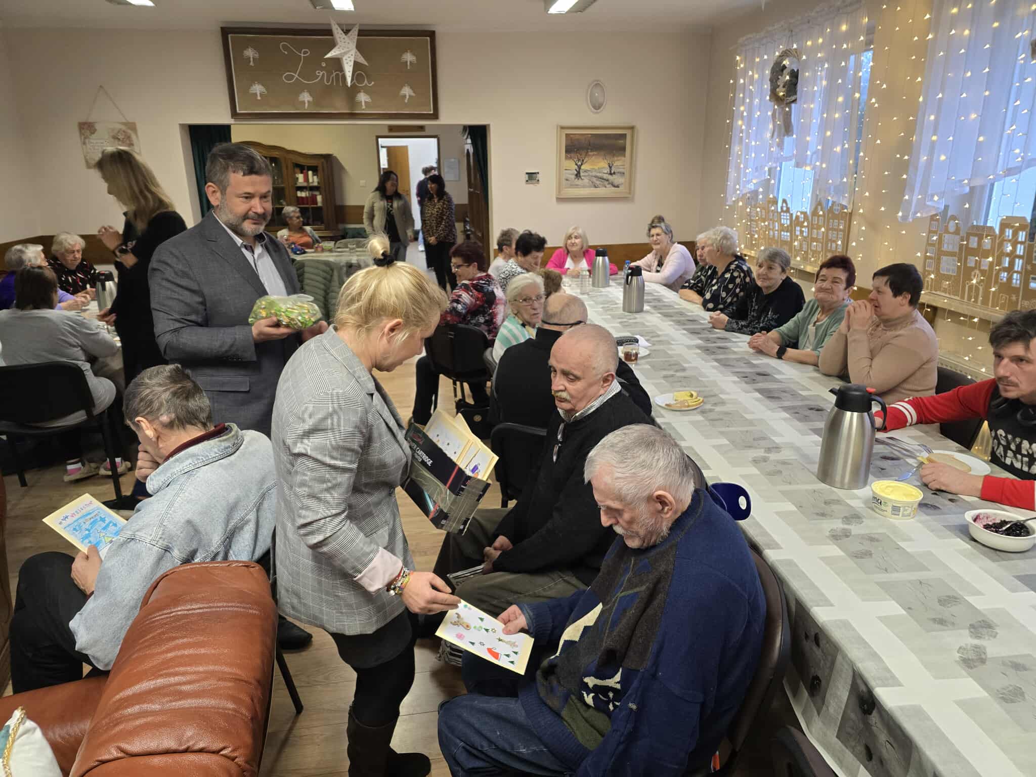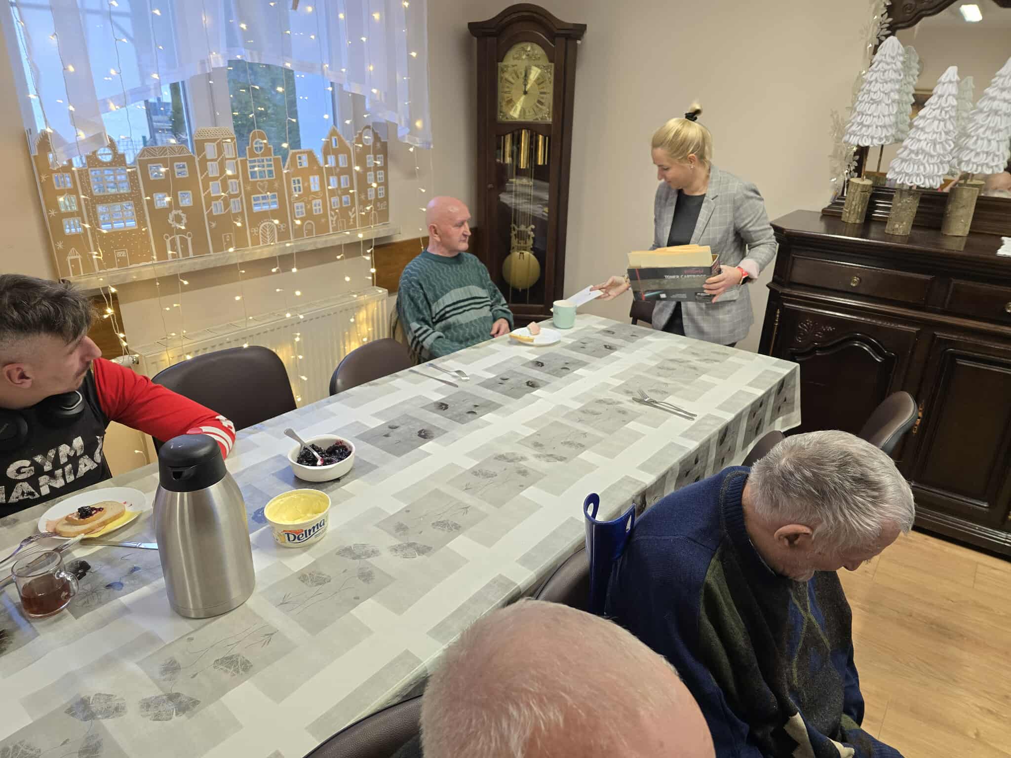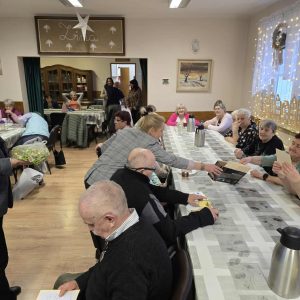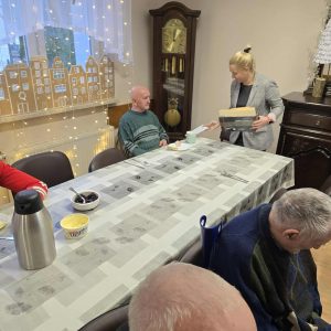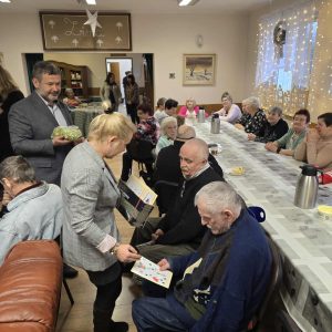 W ramach świątecznej inicjatywy przywiózł ze sobą piękne kartki bożonarodzeniowe, własnoręcznie wykonane przez uczniów Szkoły Podstawowej w Pasymiu. Każda z kartek trafiła w ręce uczestników naszego Domu, sprawiając im ogromną radość i wzruszenie. Podarował również kilkadziesiąt książek, które zasilą półki naszej biblioteczki i z pewnością umilą czas niejednemu czytelnikowi.