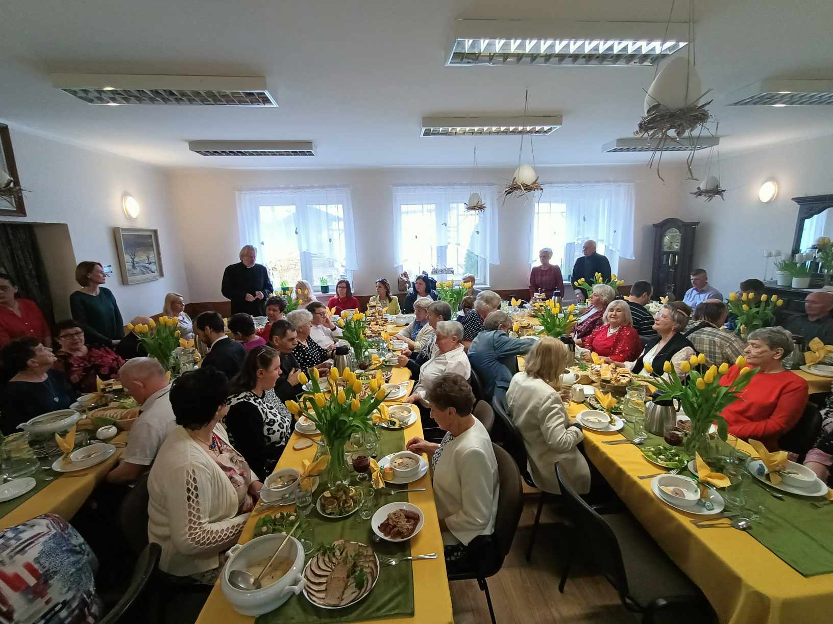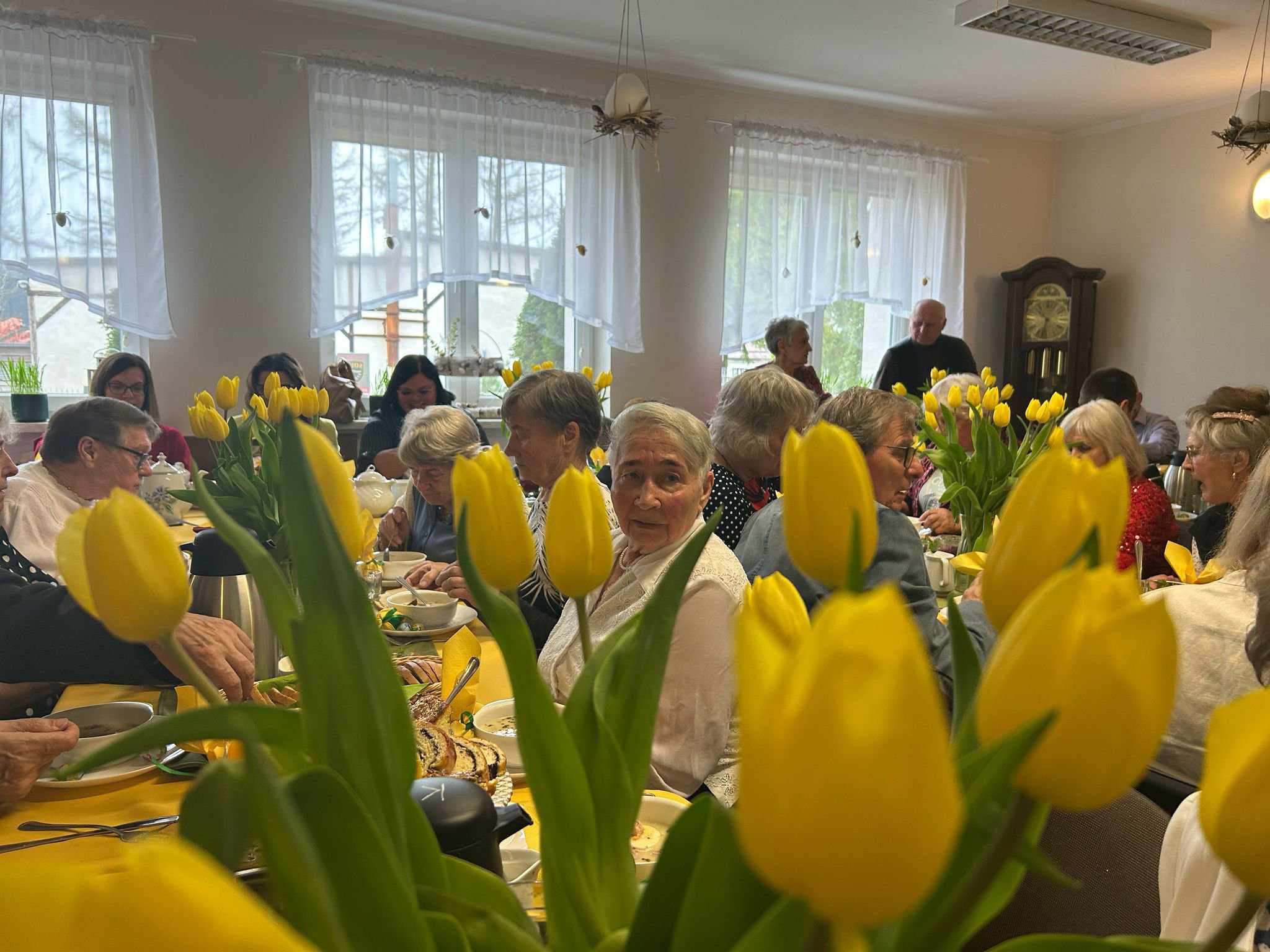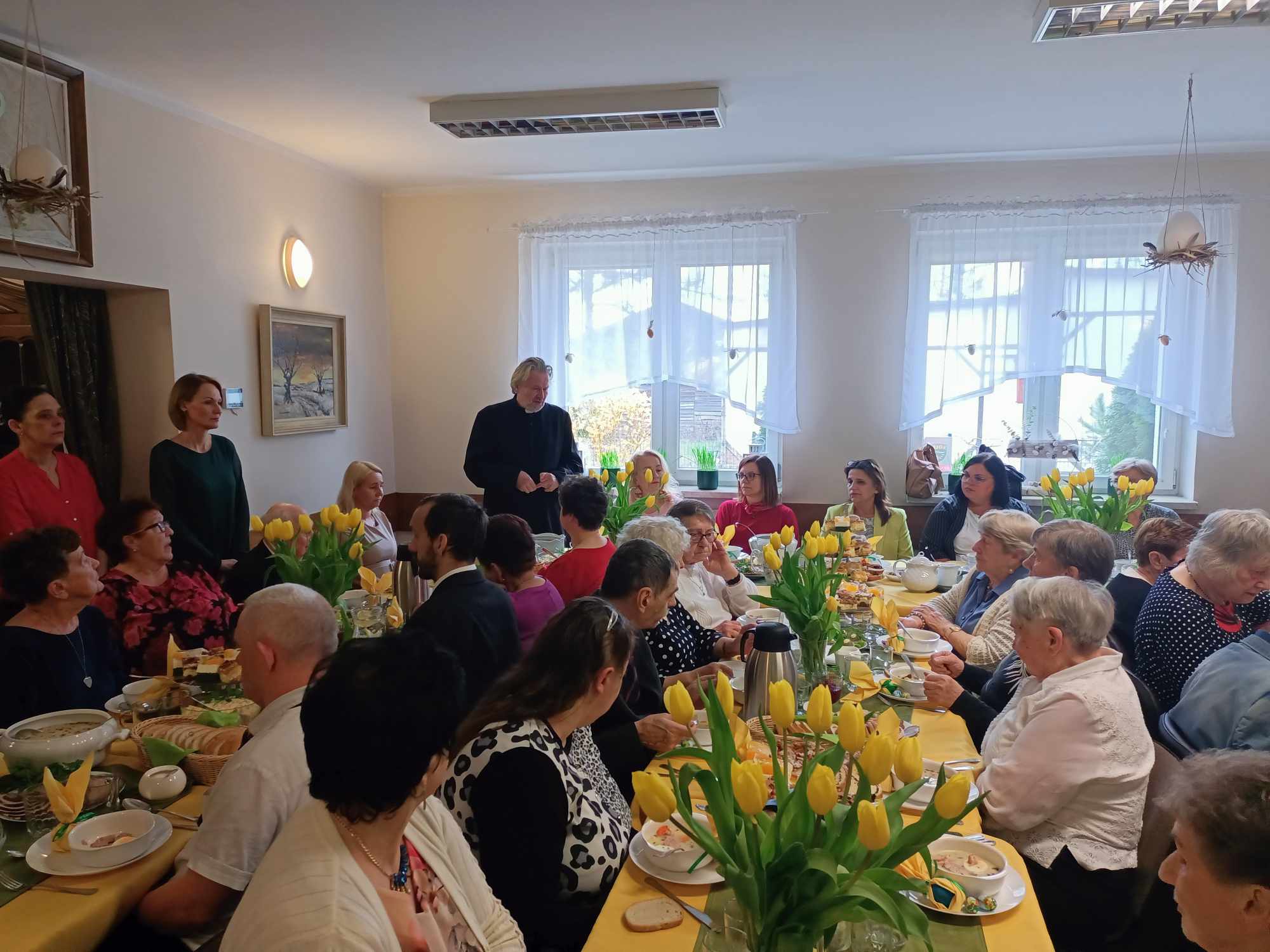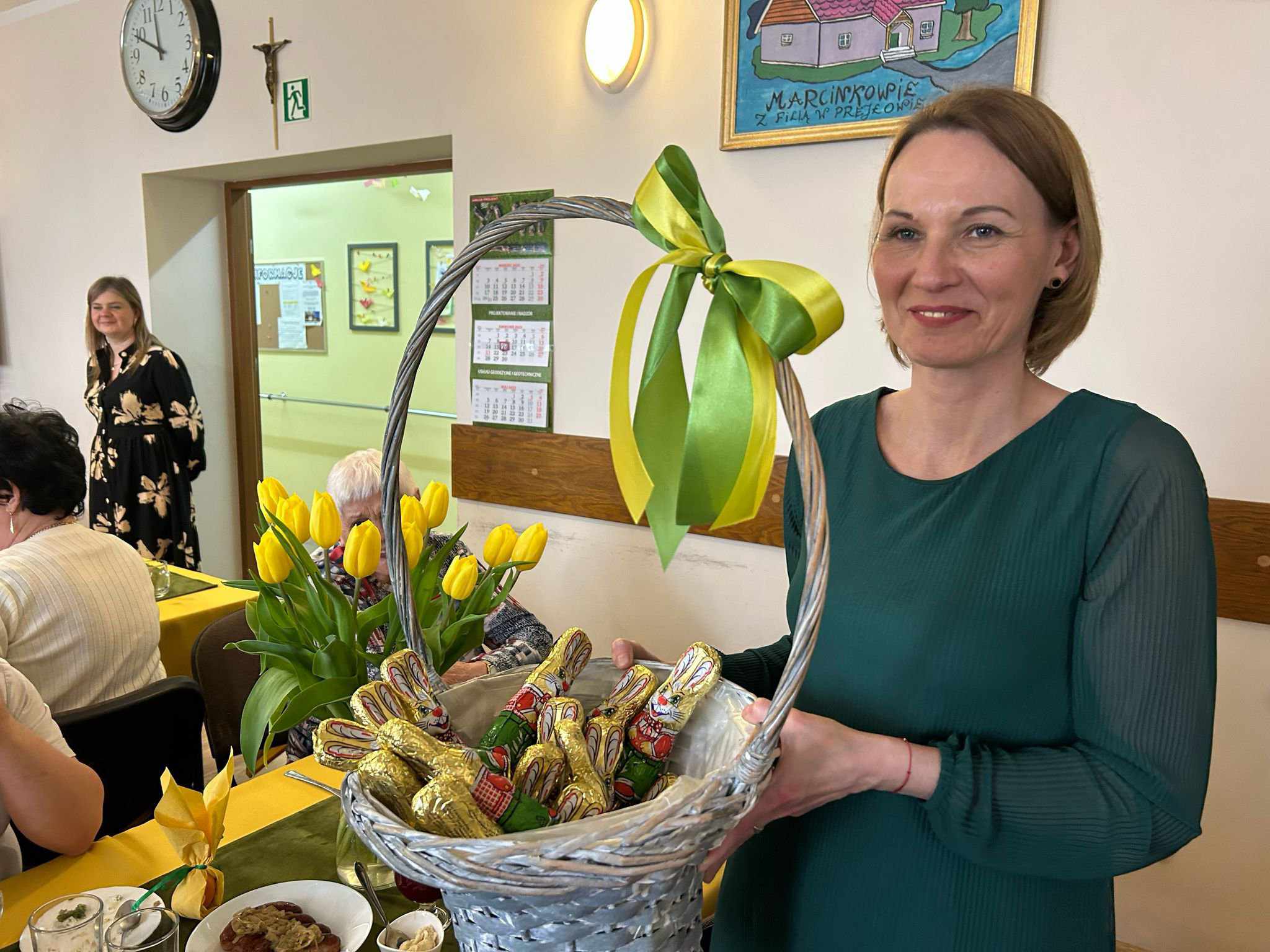 Na dzisiejszą uroczystość przybyli przedstawiciele Urzędu Gminy w Purdzie, Ośrodków Pomocy Społecznej w Purdzie i Pasymiu oraz proboszcz naszej parafii. Uczestnicy odświętnie ubrani, w radosnych nastrojach oraz zaproszeni goście zostali przywitani przez kierownika Joannę Obidzińską i zaproszeni do obejrzenia przygotowanej części artystycznej, która wprowadziła wszystkich w nastrój zadumy, refleksji i pewnego rodzaju nostalgię. Piękne i pełne emocji pieśni śpiewane przy akompaniamencie gitary były swoistą ucztą dla naszych zmysłów, po której przyszedł czas na ucztę dla ciała. Aromatyczny żurek, pieczona biała kiełbasa, sałatka jarzynowa, pieczone mięsa, pasztety, faszerowane jajka oraz drobiowa galareta zachęcały do degustacji. Dopełnieniem były wielkanocne wypieki w towarzystwie aromatycznej kawy i herbaty. Nie zabrakło wspólnych rozmów, których gwar roznosił się po całym domu dając odczucie iście rodzinnej, domowej atmosfery. Prezent w postaci czekoladowych zajączków, którymi zostali obdarowani uczestnicy były symbolem radości z nadchodzących Świąt Wielkanocnych.