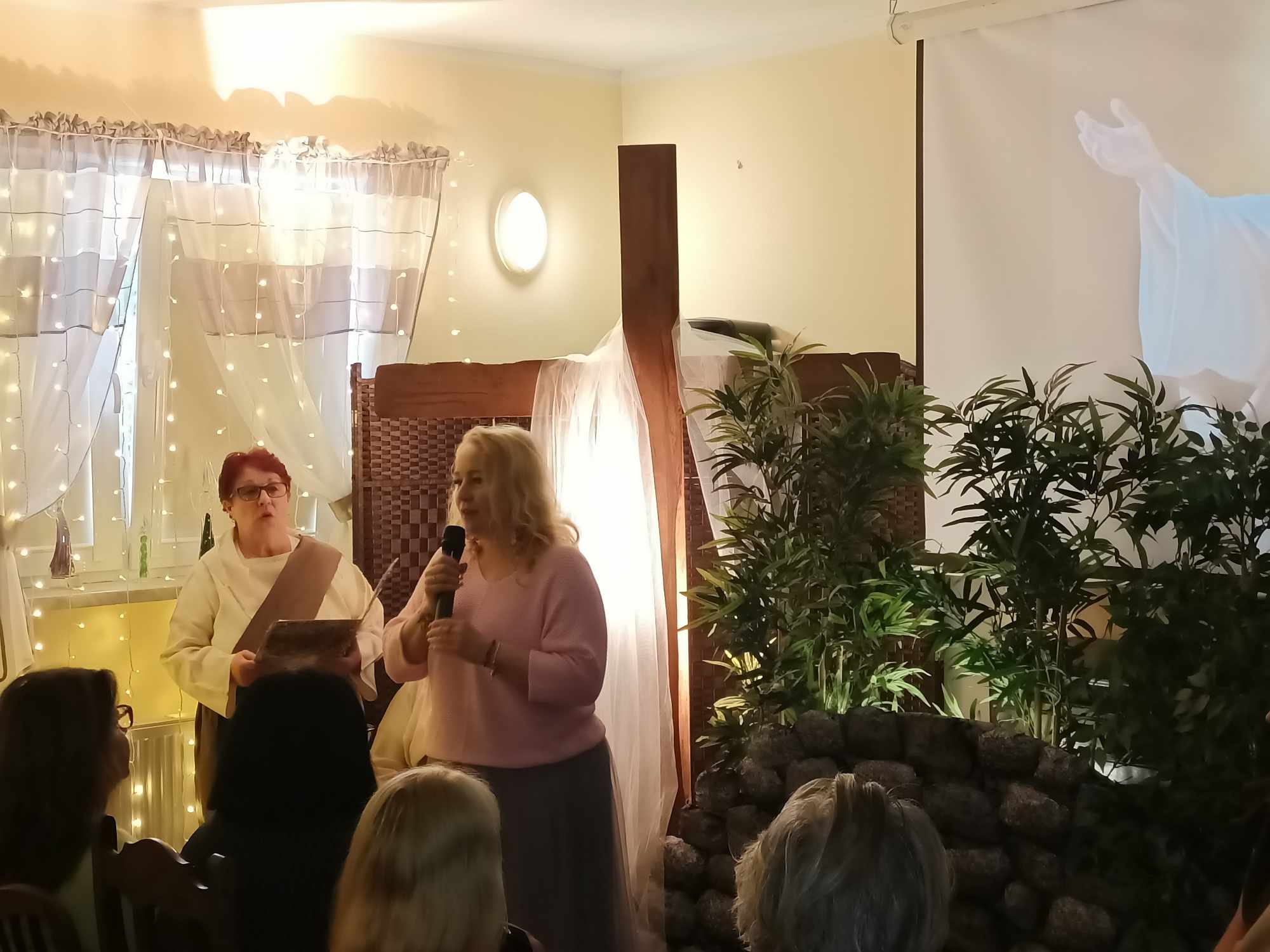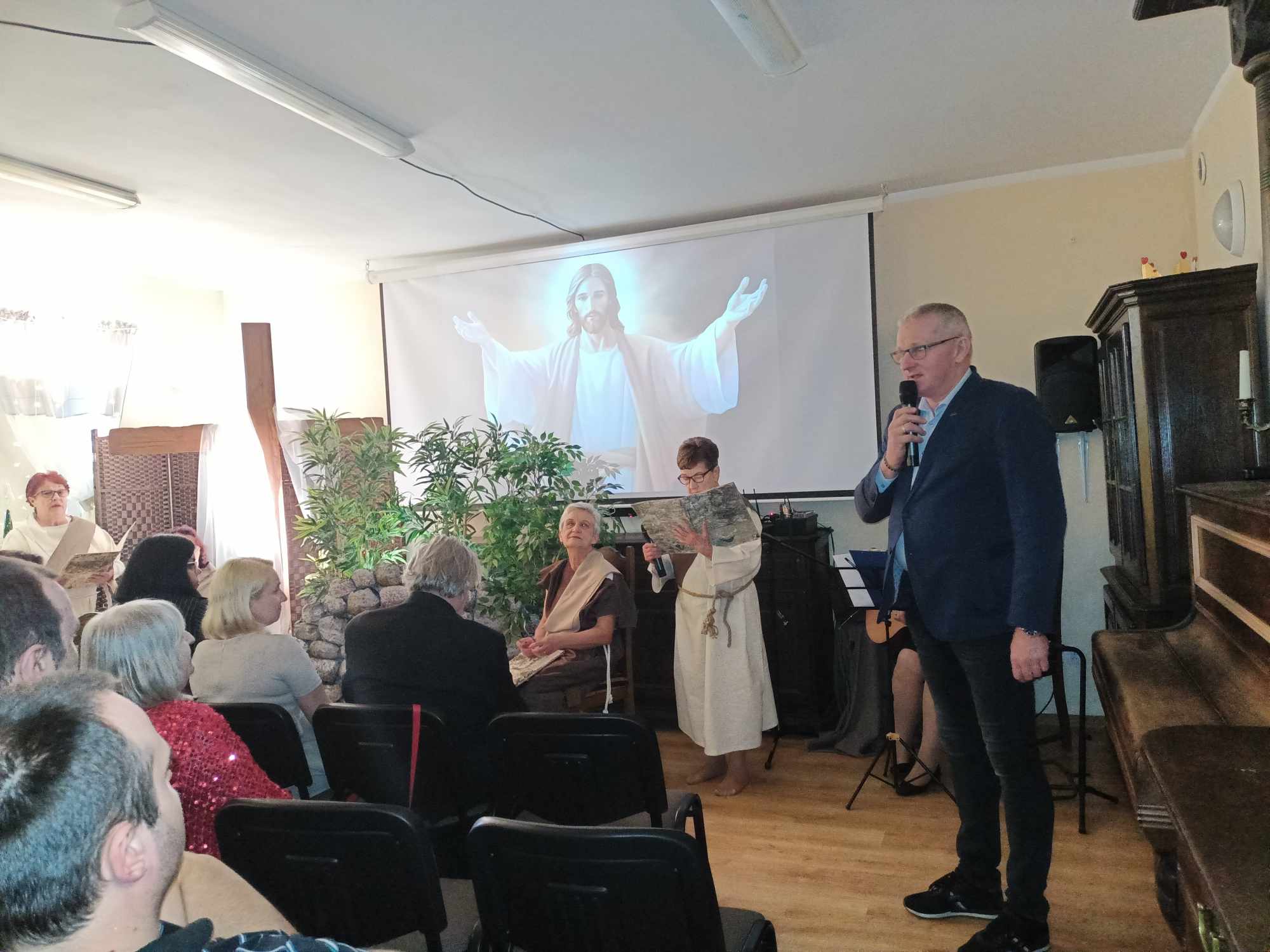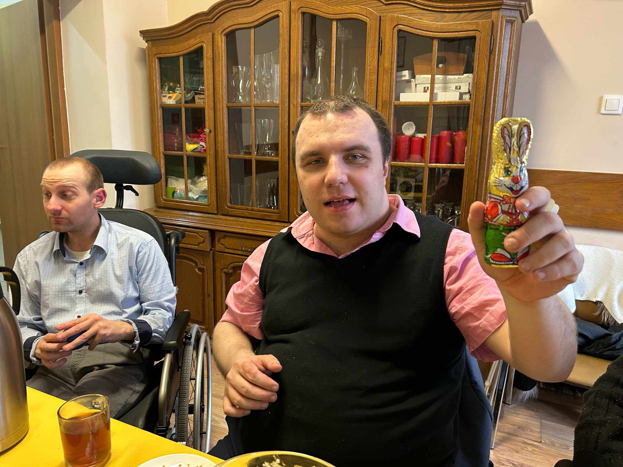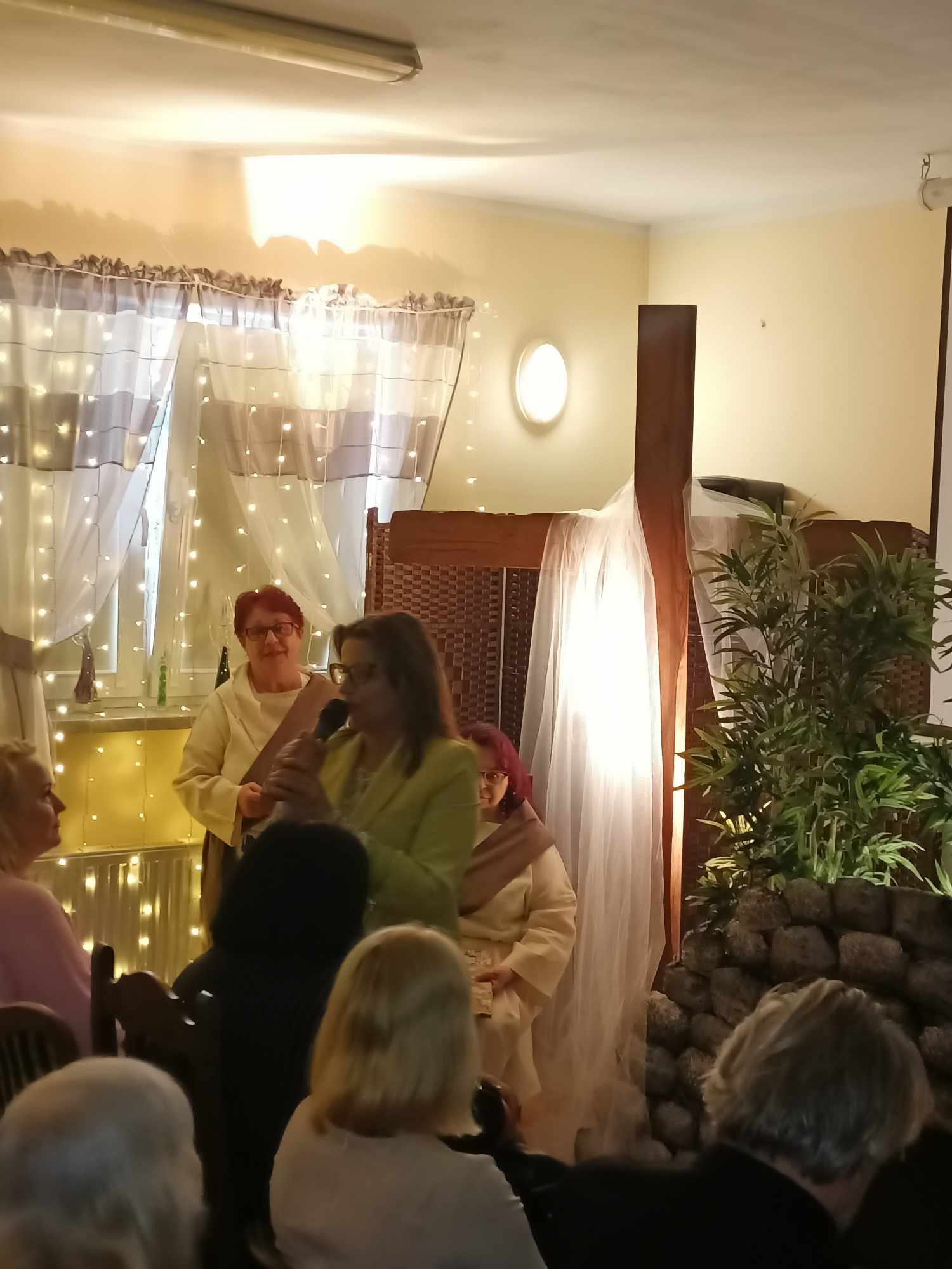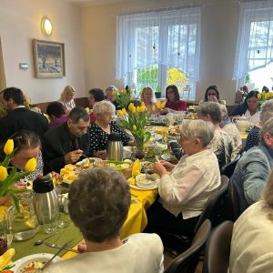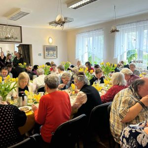 Na dzisiejszą uroczystość przybyli przedstawiciele Urzędu Gminy w Purdzie, Ośrodków Pomocy Społecznej w Purdzie i Pasymiu oraz proboszcz naszej parafii. Uczestnicy odświętnie ubrani, w radosnych nastrojach oraz zaproszeni goście zostali przywitani przez kierownika Joannę Obidzińską i zaproszeni do obejrzenia przygotowanej części artystycznej, która wprowadziła wszystkich w nastrój zadumy, refleksji i pewnego rodzaju nostalgię. Piękne i pełne emocji pieśni śpiewane przy akompaniamencie gitary były swoistą ucztą dla naszych zmysłów, po której przyszedł czas na ucztę dla ciała. Aromatyczny żurek, pieczona biała kiełbasa, sałatka jarzynowa, pieczone mięsa, pasztety, faszerowane jajka oraz drobiowa galareta zachęcały do degustacji. Dopełnieniem były wielkanocne wypieki w towarzystwie aromatycznej kawy i herbaty. Nie zabrakło wspólnych rozmów, których gwar roznosił się po całym domu dając odczucie iście rodzinnej, domowej atmosfery. Prezent w postaci czekoladowych zajączków, którymi zostali obdarowani uczestnicy były symbolem radości z nadchodzących Świąt Wielkanocnych.