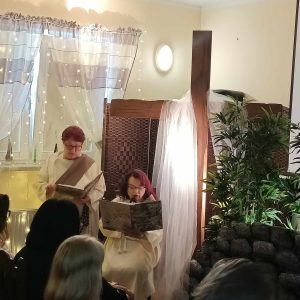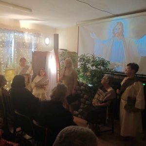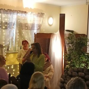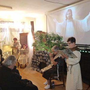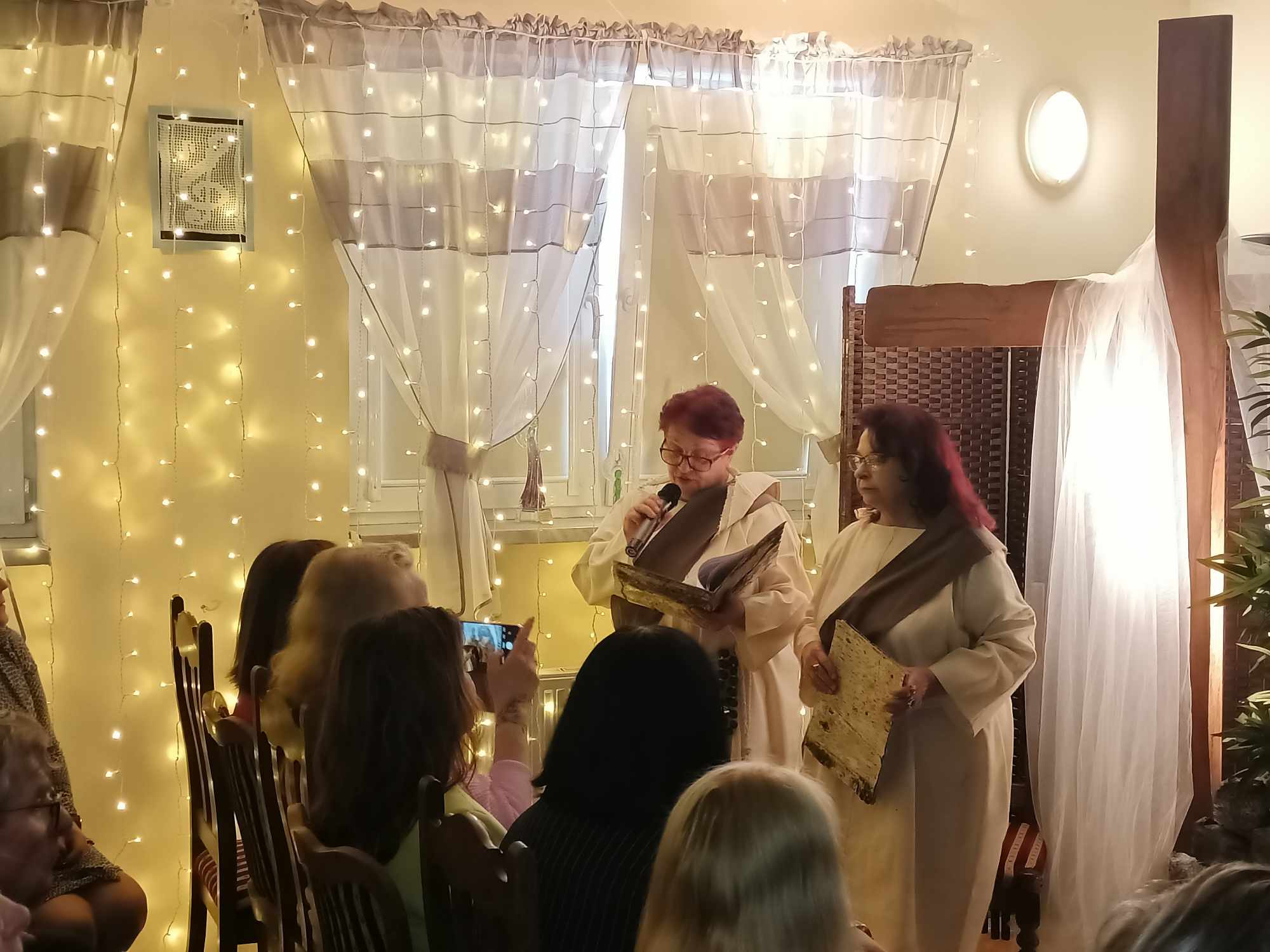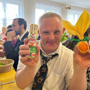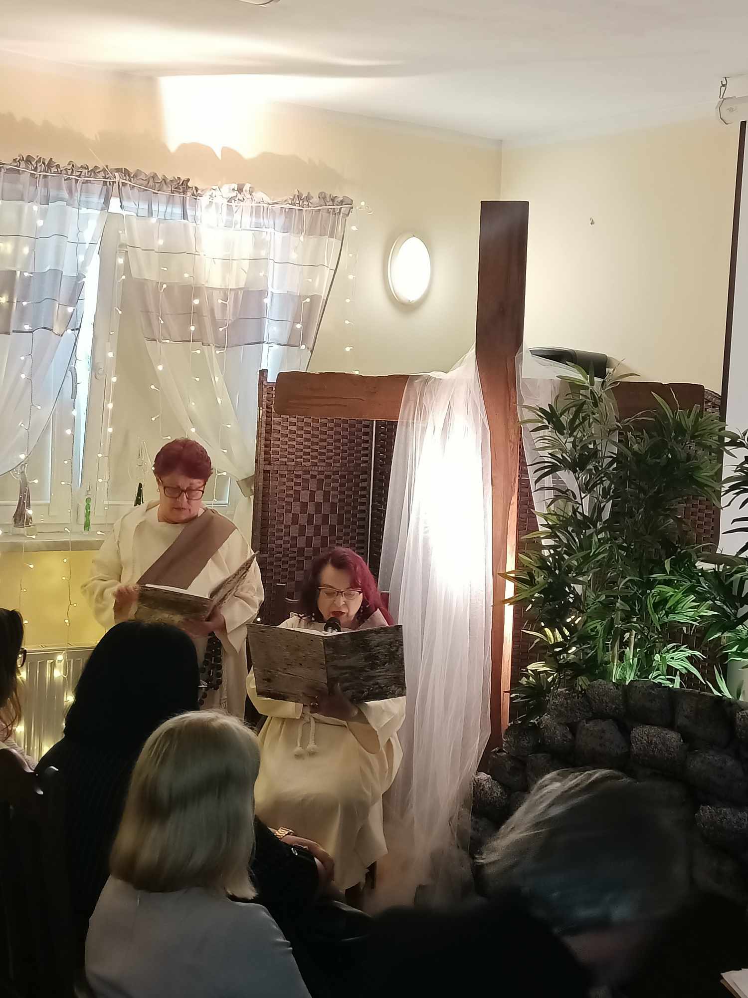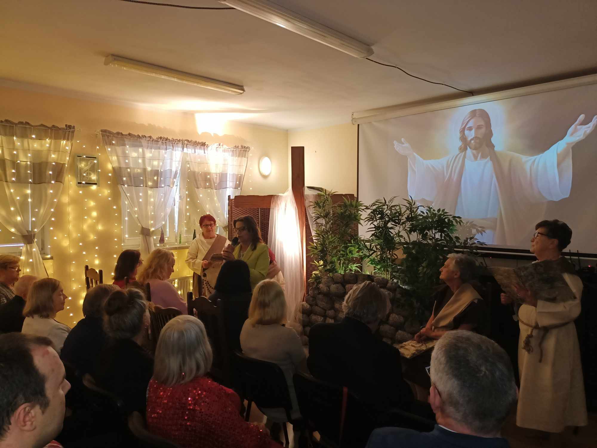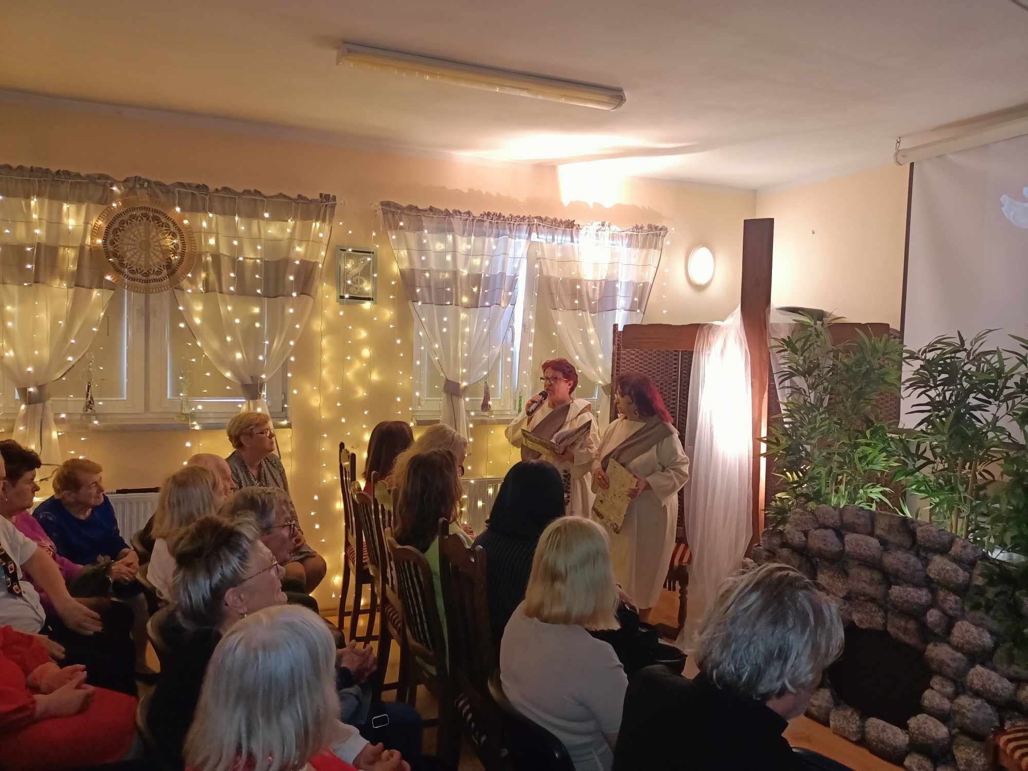 Na dzisiejszą uroczystość przybyli przedstawiciele Urzędu Gminy w Purdzie, Ośrodków Pomocy Społecznej w Purdzie i Pasymiu oraz proboszcz naszej parafii. Uczestnicy odświętnie ubrani, w radosnych nastrojach oraz zaproszeni goście zostali przywitani przez kierownika Joannę Obidzińską i zaproszeni do obejrzenia przygotowanej części artystycznej, która wprowadziła wszystkich w nastrój zadumy, refleksji i pewnego rodzaju nostalgię. Piękne i pełne emocji pieśni śpiewane przy akompaniamencie gitary były swoistą ucztą dla naszych zmysłów, po której przyszedł czas na ucztę dla ciała. Aromatyczny żurek, pieczona biała kiełbasa, sałatka jarzynowa, pieczone mięsa, pasztety, faszerowane jajka oraz drobiowa galareta zachęcały do degustacji. Dopełnieniem były wielkanocne wypieki w towarzystwie aromatycznej kawy i herbaty. Nie zabrakło wspólnych rozmów, których gwar roznosił się po całym domu dając odczucie iście rodzinnej, domowej atmosfery. Prezent w postaci czekoladowych zajączków, którymi zostali obdarowani uczestnicy były symbolem radości z nadchodzących Świąt Wielkanocnych.
