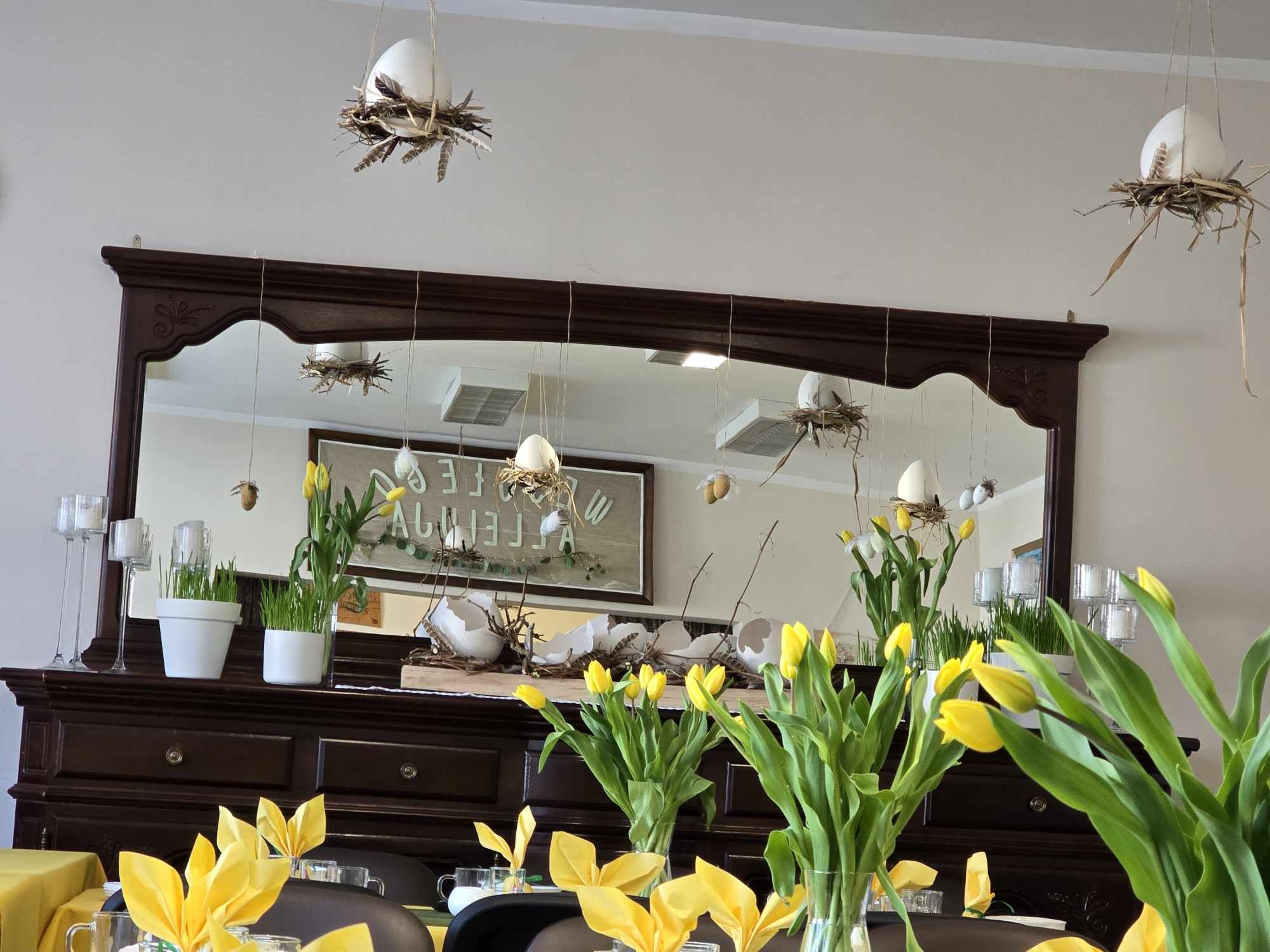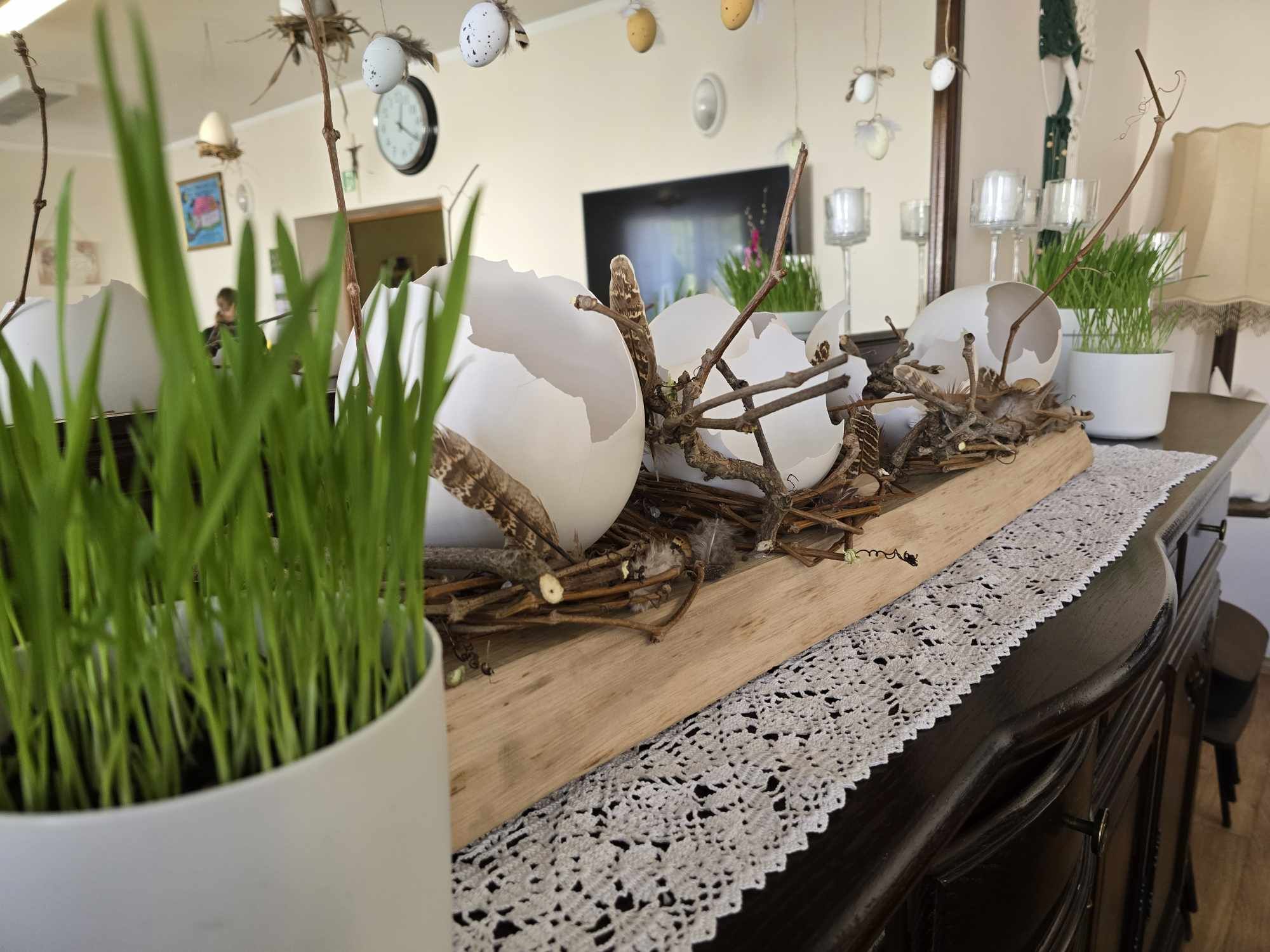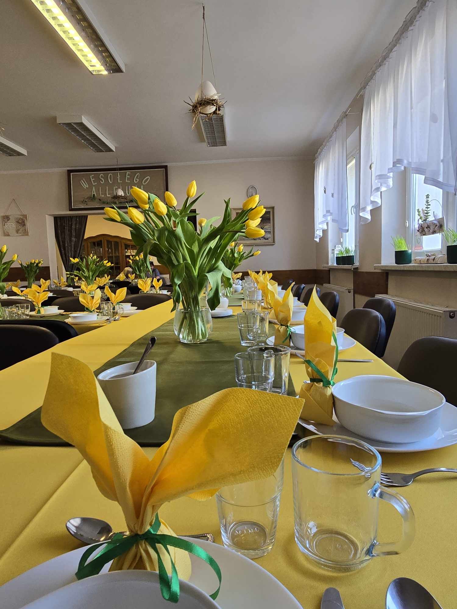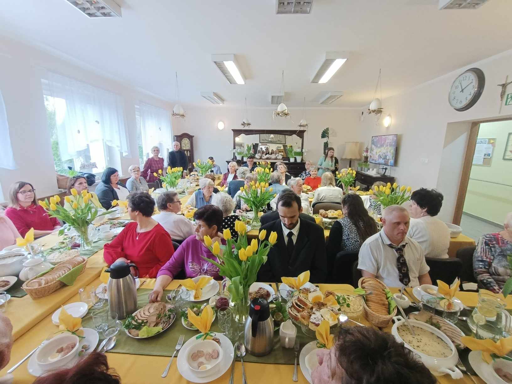 Niezależnie od poglądów i religijności w naszych domach trwają przygotowania do Wielkiej Nocy. Pojawiają się przepiękne dekoracje, w wazonach dumnie prezentują się brzozowe gałązki i bazie. Każdy kąt wysprzątany, a w oknach powiewają świeże, pachnące firanki. W naszym domu te przygotowania dobiegły już końca i zostały uwieńczone dzisiejszym Uroczystym Śniadaniem Wielkanocnym. Jak co roku z pracowni kulinarnej od rana unosił się aromat świątecznych dań oraz wypieków. Cały dom poweselał i przyciągał piękną dekoracją oraz odświętnie nakrytymi stołami.