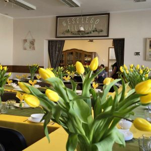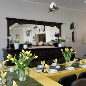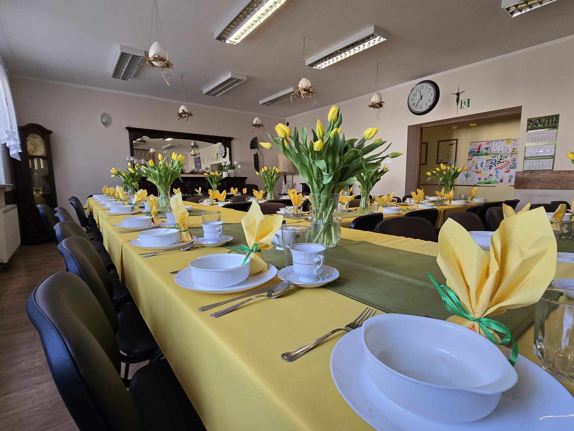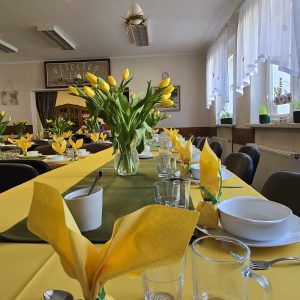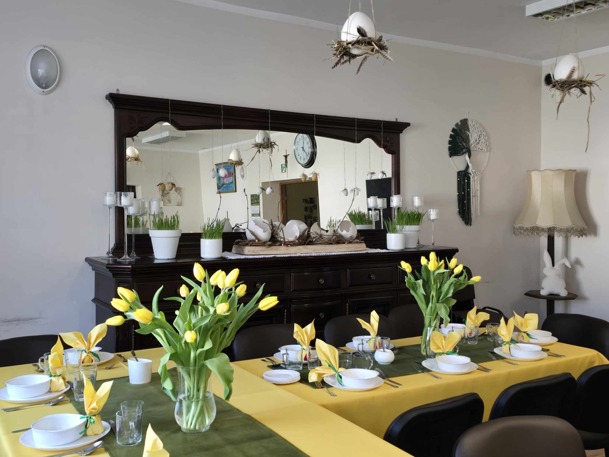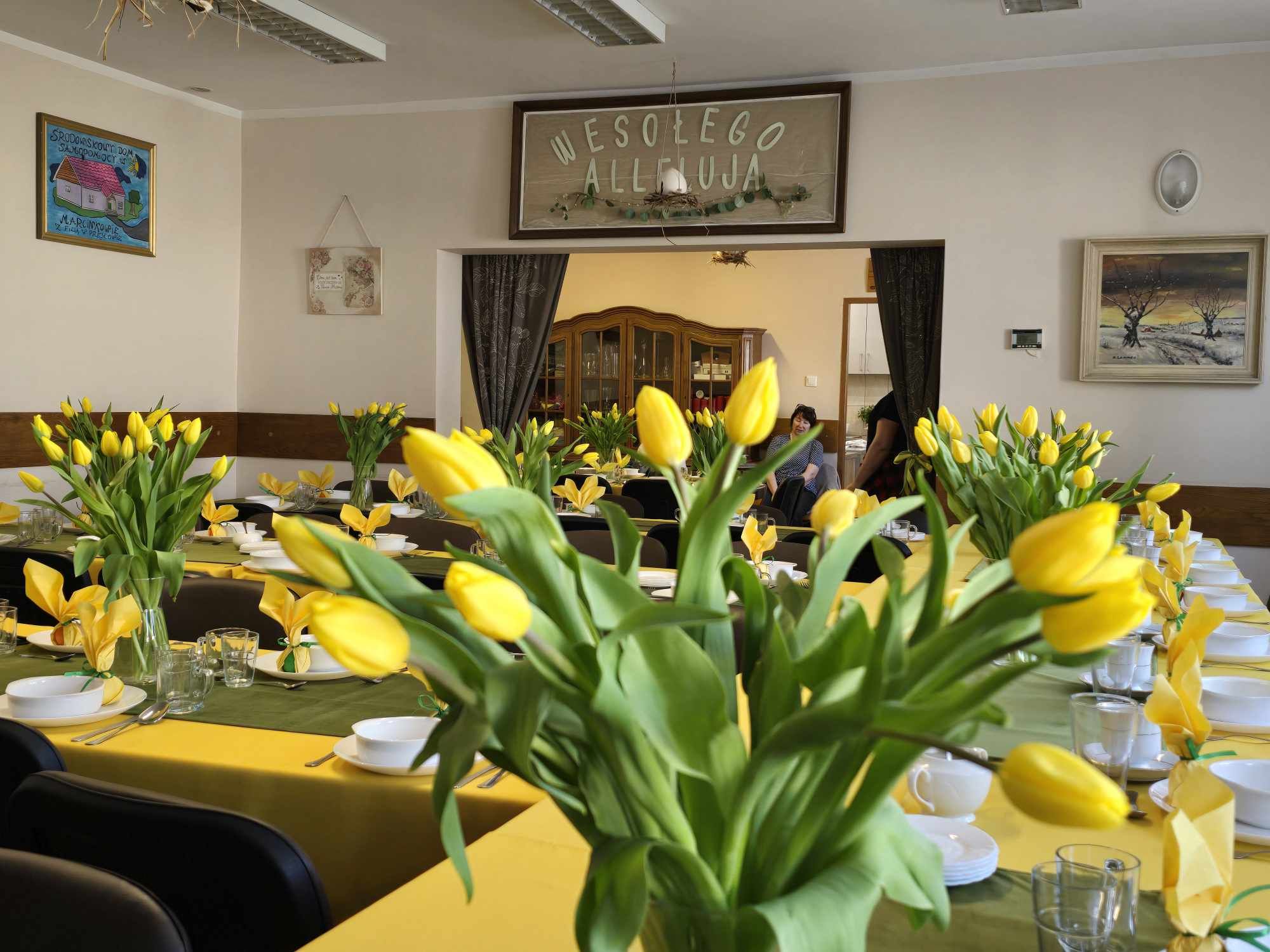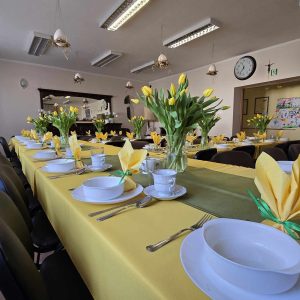 Niezależnie od poglądów i religijności w naszych domach trwają przygotowania do Wielkiej Nocy. Pojawiają się przepiękne dekoracje, w wazonach dumnie prezentują się brzozowe gałązki i bazie. Każdy kąt wysprzątany, a w oknach powiewają świeże, pachnące firanki. W naszym domu te przygotowania dobiegły już końca i zostały uwieńczone dzisiejszym Uroczystym Śniadaniem Wielkanocnym. Jak co roku z pracowni kulinarnej od rana unosił się aromat świątecznych dań oraz wypieków. Cały dom poweselał i przyciągał piękną dekoracją oraz odświętnie nakrytymi stołami.