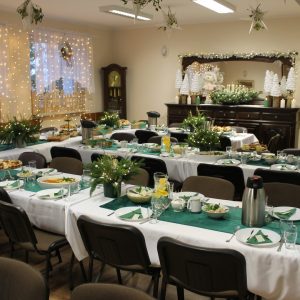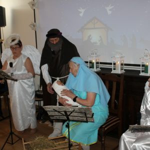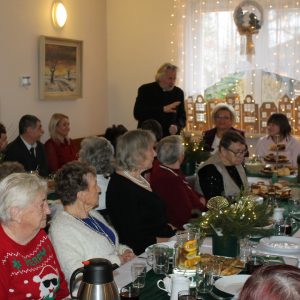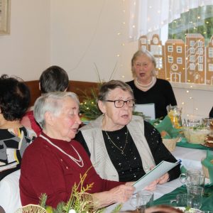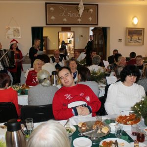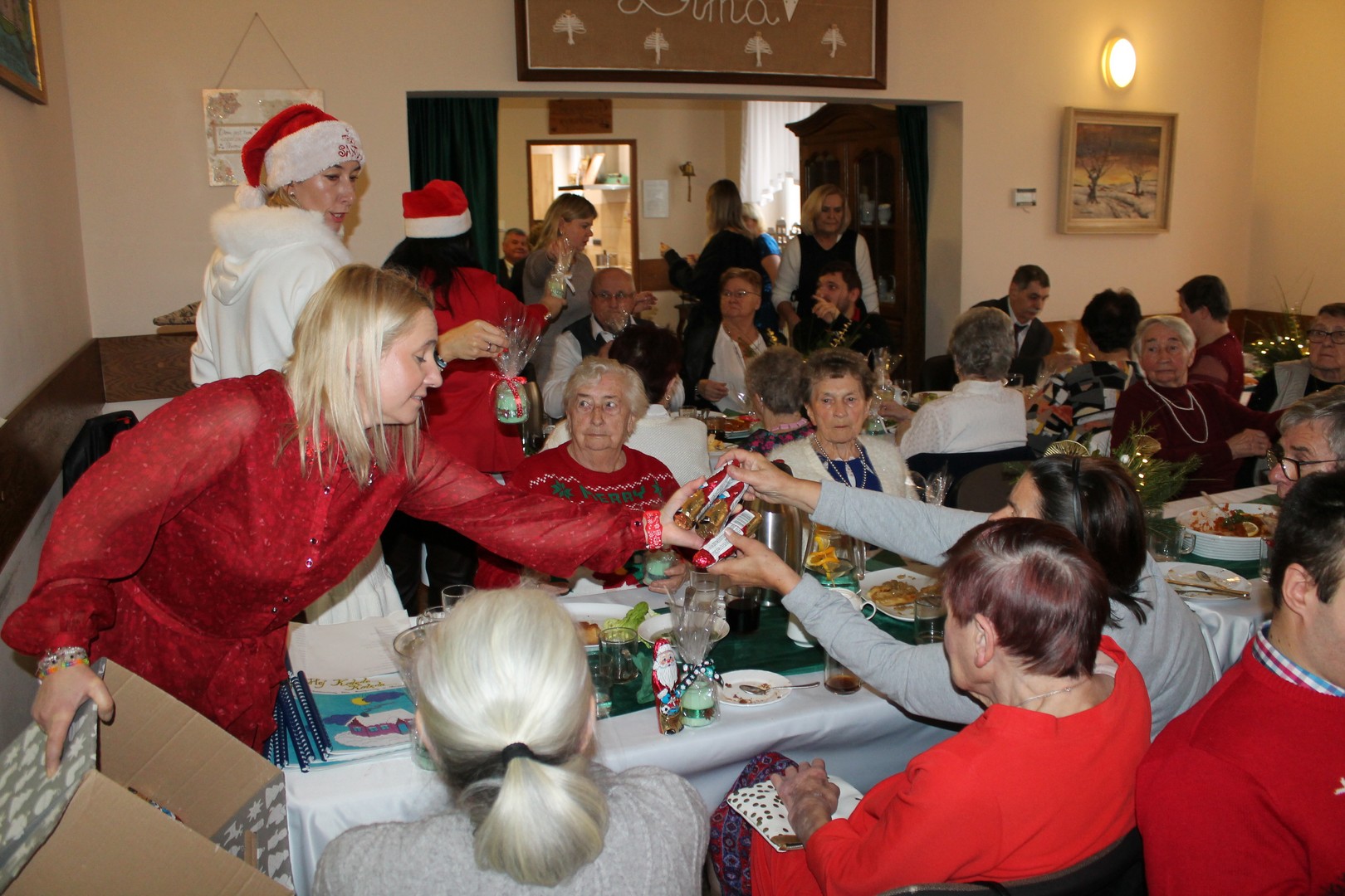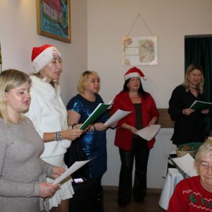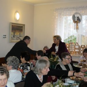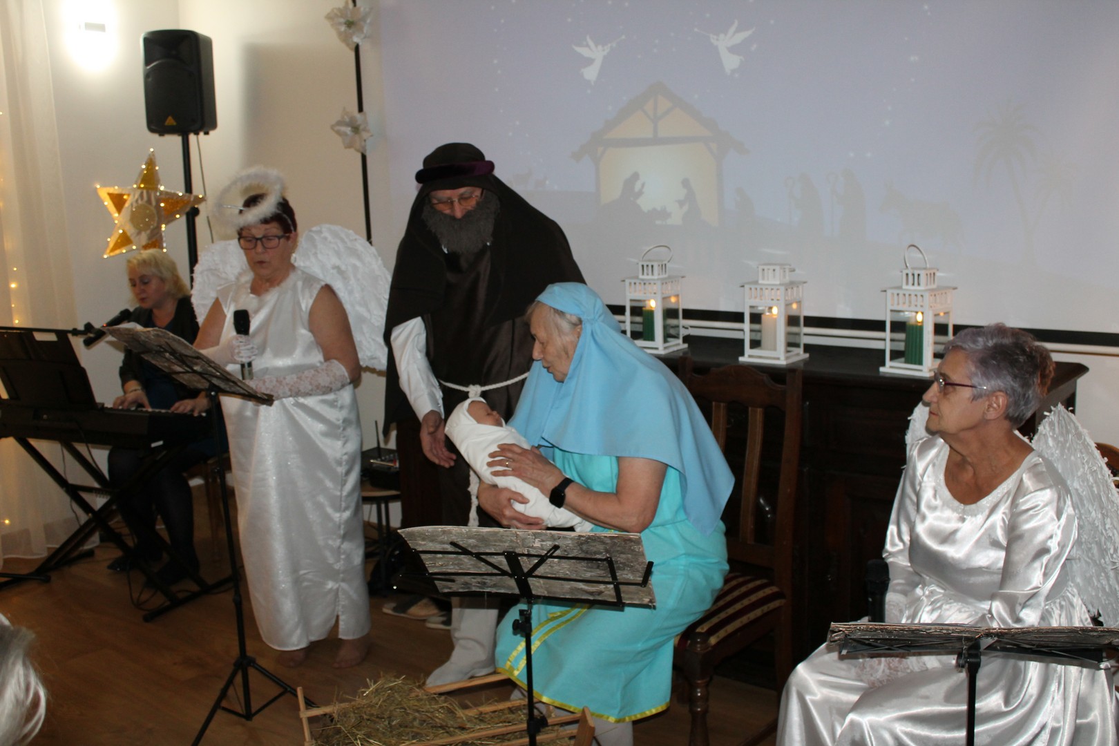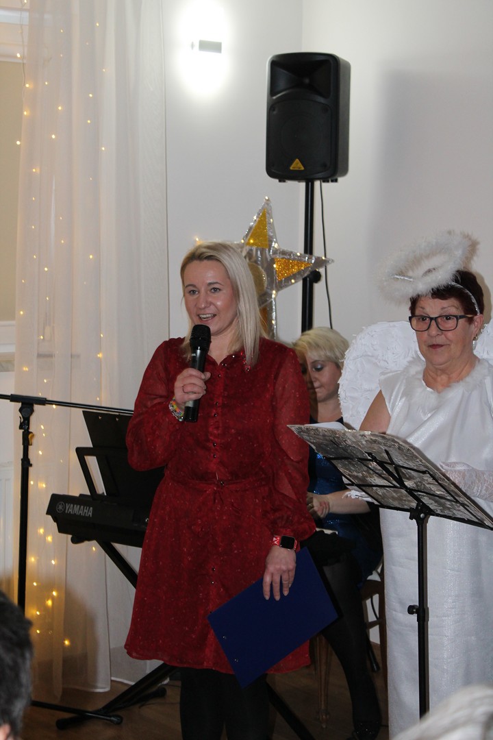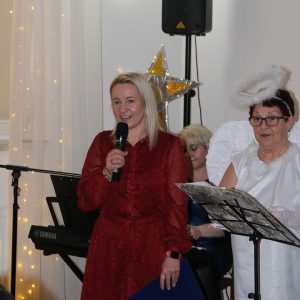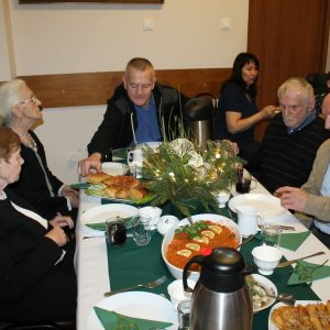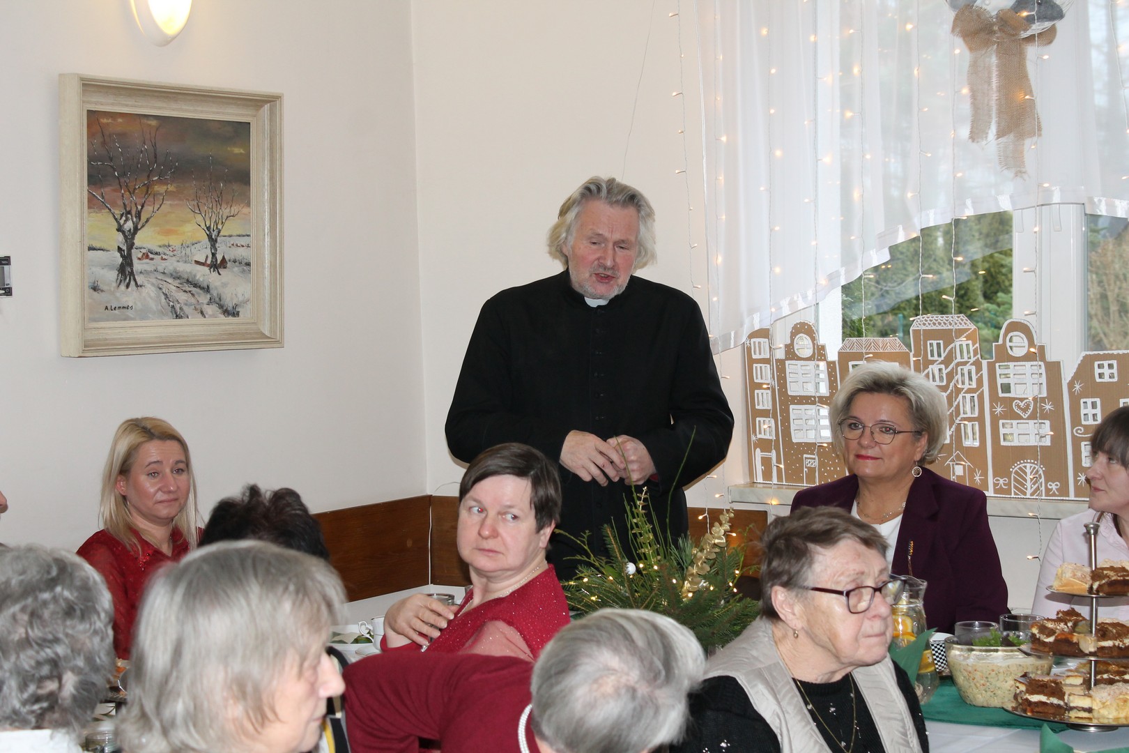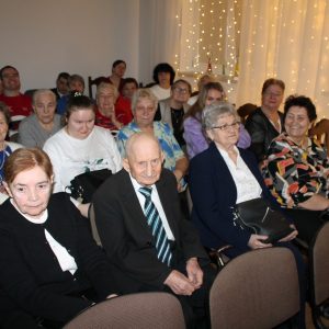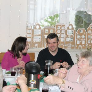 Wigilijne spotkanie rozpoczął wzruszający występ artystyczny naszych uczestników, pełen kolęd, słów, refleksji i życzliwości. Następnie wysłuchaliśmy błogosławieństwa z ust ks. proboszcza, po którym nastąpił moment dzielenia się opłatkiem – pełen wzruszeń i serdecznych uścisków. Przy odświętnie nakrytych stołach, wypełnionych tradycyjnymi potrawami wigilijnymi, spędziliśmy wspólnie czas, celebrując ten magiczny czas, pełen wdzięczności i świątecznej radości.