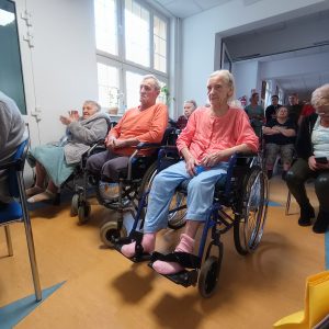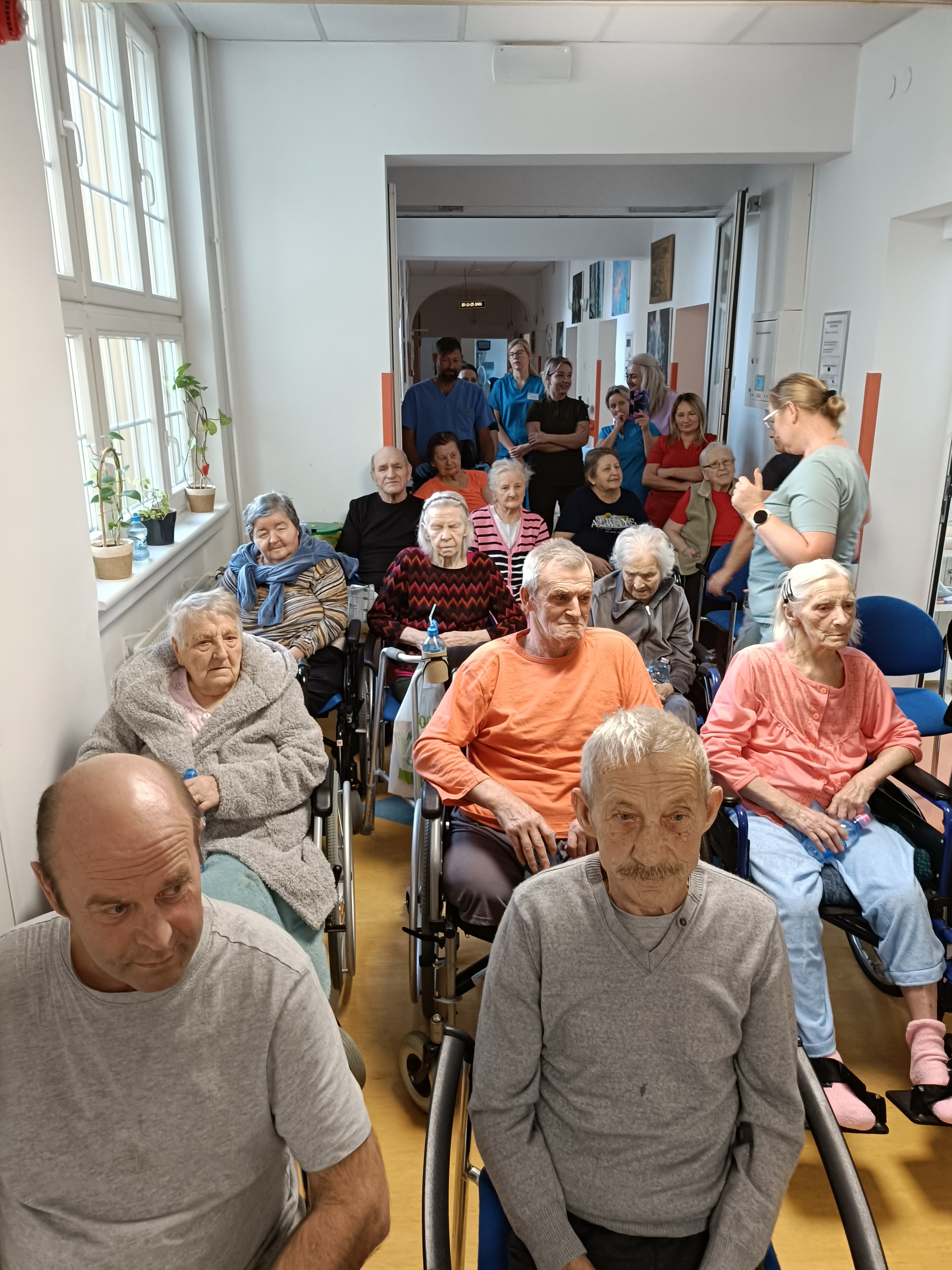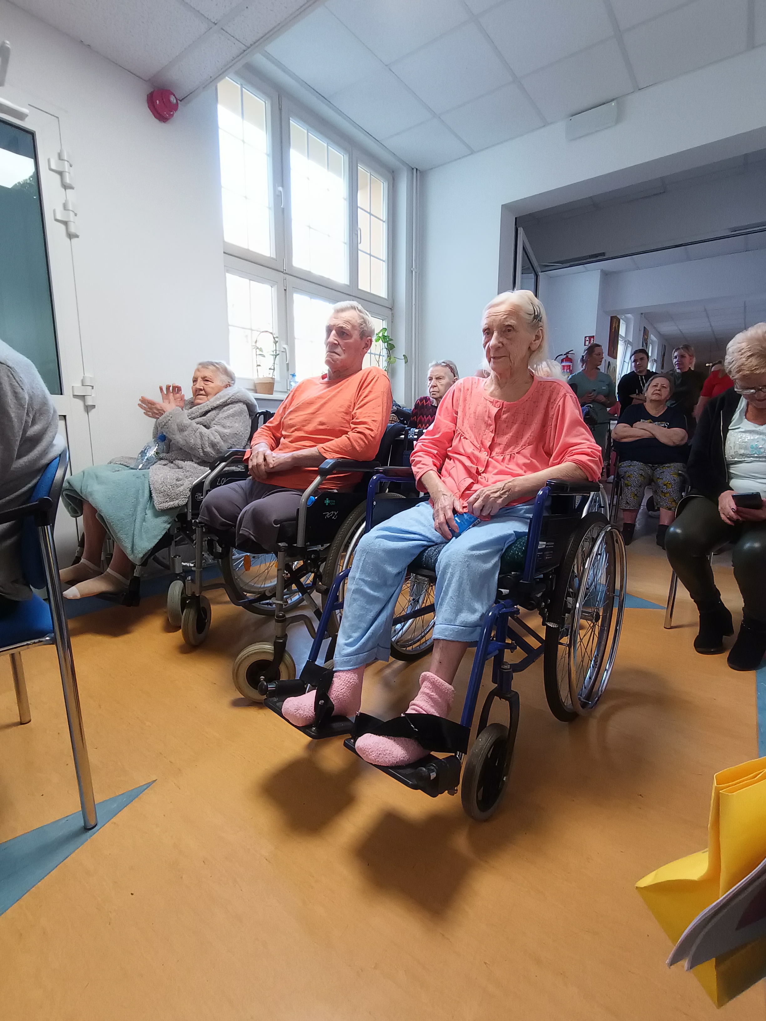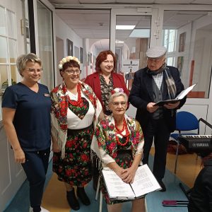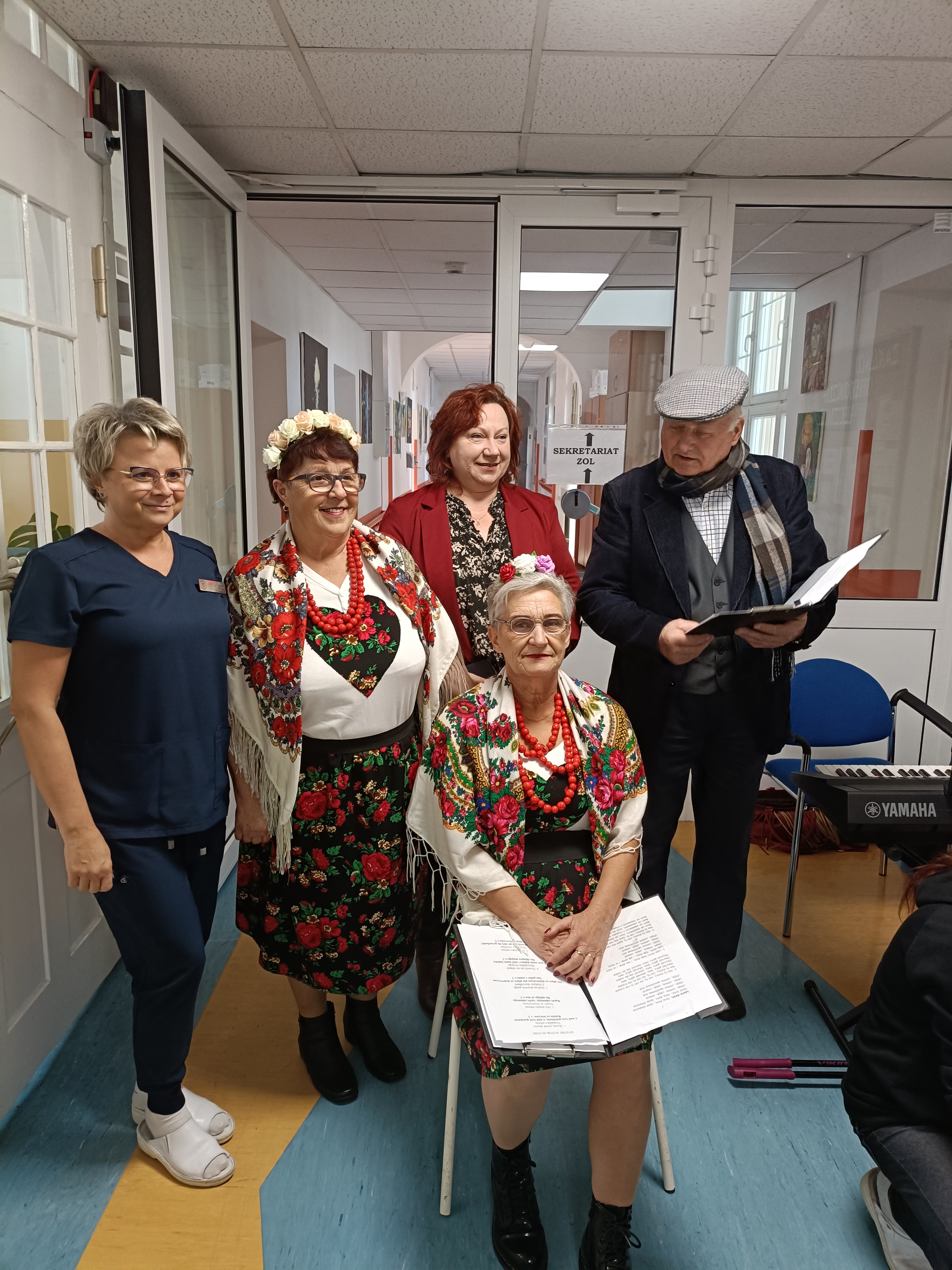 W ramach integracji i międzypokoleniowego spotkania przygotowaliśmy krótki koncert wokalny z repertuarem o tematyce ludowo- folkowej oraz patriotycznej, nawiązującej do zbliżającego się Święta Niepodległości. Wspólnie śpiewanie znanych i lubianych utworów stworzyło ciepłą, wzruszającą i wyjątkową atmosferę oraz przywołało wiele pięknych wspomnień wśród pacjentów.