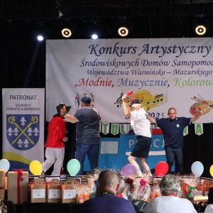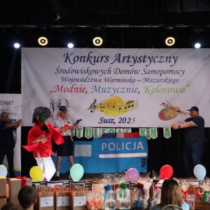 W dniu 05.06.2025r. odbyła się w Suszu 9 już edycja konkursu artystycznego „Modnie, Muzycznie i Kolorowo”, której tematem przewodnim w tym roku było „Stulecie Kina”. Nasi uczestnicy zaprezentowali krótką scenę z filmu „Maska”, która wywołała falę śmiechu na sali. Wszyscy dali się ponieść wyjątkowej atmosferze. Na miejscu czekały na nas pyszne poczęstunki, które szybko poprawiły nam humor i dodały energii do dalszej zabawy. Sporą frajdę sprawił nam także konkurs plastyczny, w którym mogliśmy wykazać się kreatywnością i własnym spojrzeniem na temat kina. Powstało mnóstwo barwnych prac, a samo tworzenie okazało się świetną zabawą! Największe wrażenie zrobiły na nas wspaniałe występy – pełne pasji, kreatywności i pozytywnej energii. Cieszymy się, że mogliśmy być częścią tego wydarzenia, wspólnie świętując stulecie kina i dobrze się bawiąc. To był dzień pełen wrażeń, który na pewno długo zostanie w naszej pamięci!