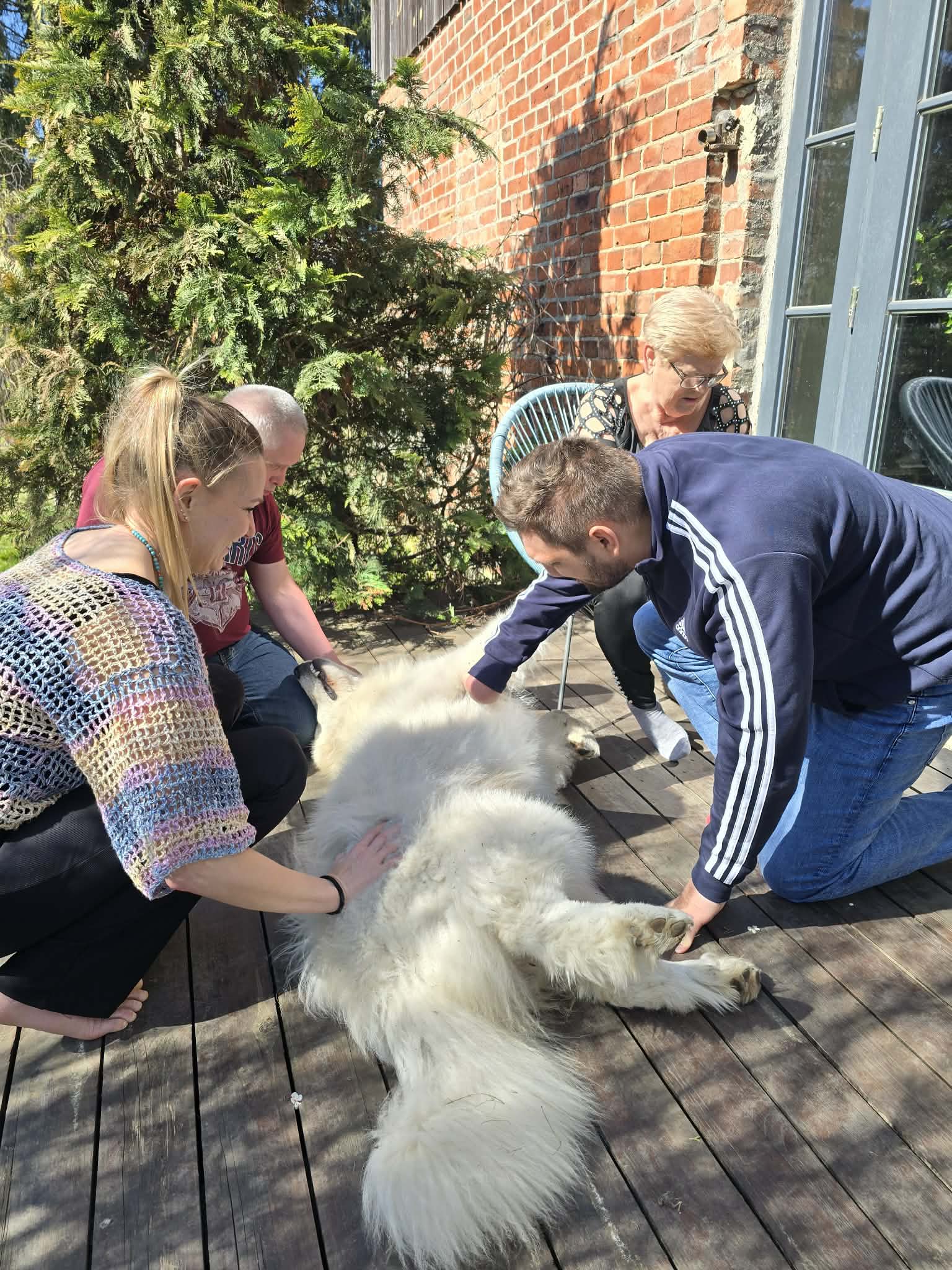 Dodatkową atrakcją była dogoterapia, która wzbudziła wiele radości i pozytywnych emocji. Kontakt z łagodnymi, przyjaznymi psami pomagał w redukcji stresu, poprawiał nastrój oraz zachęcał do spontanicznej aktywności i interakcji.