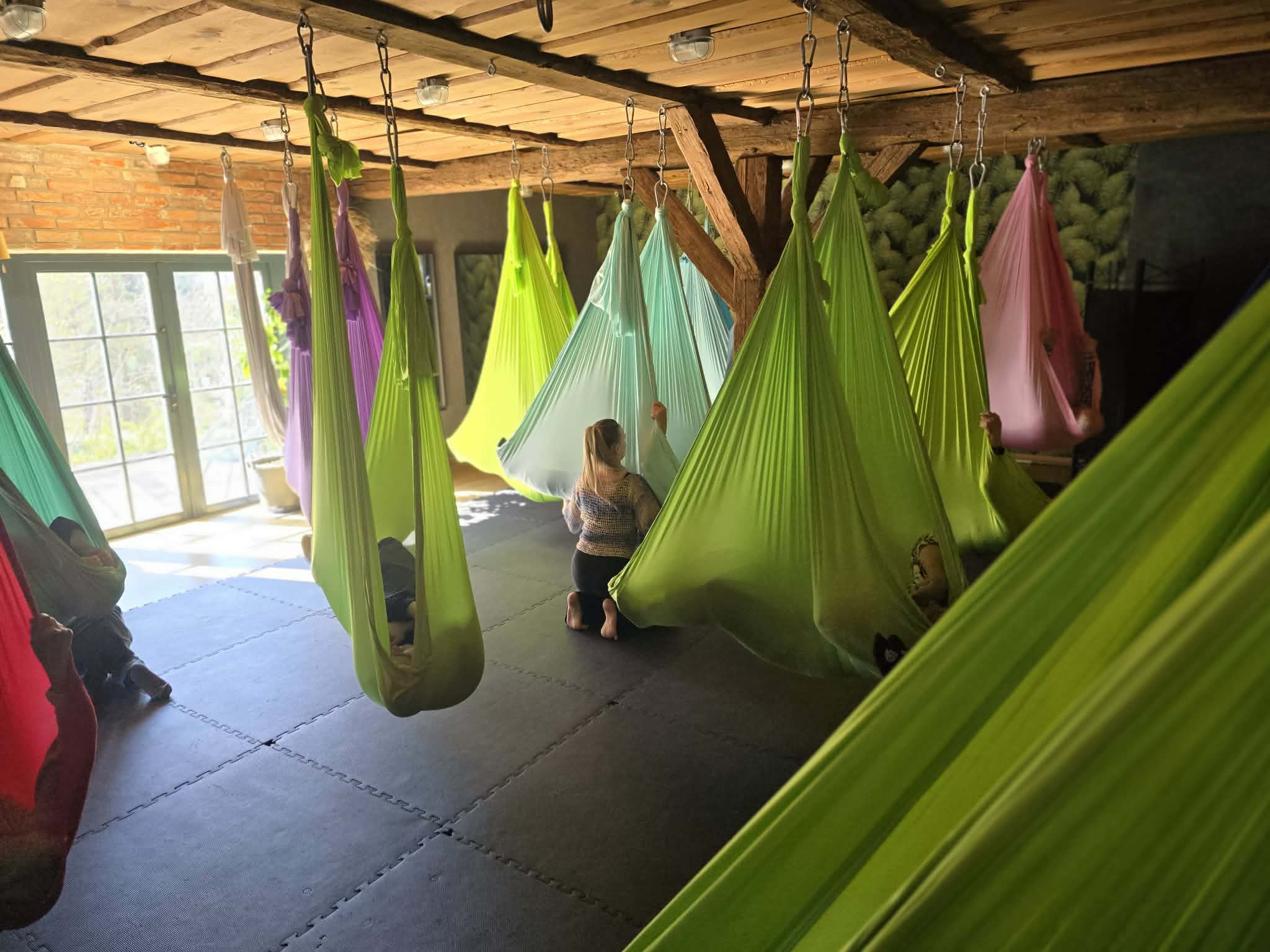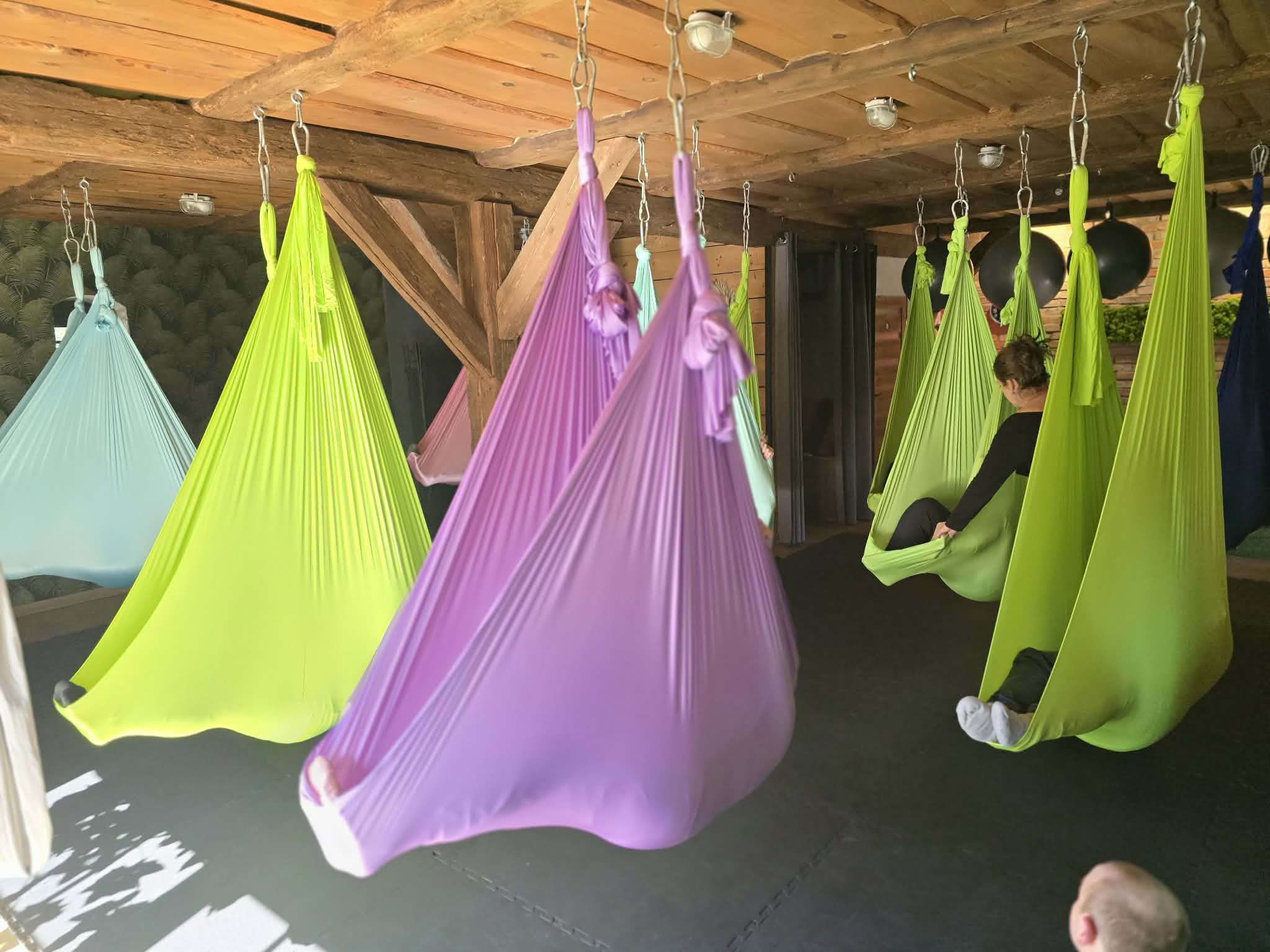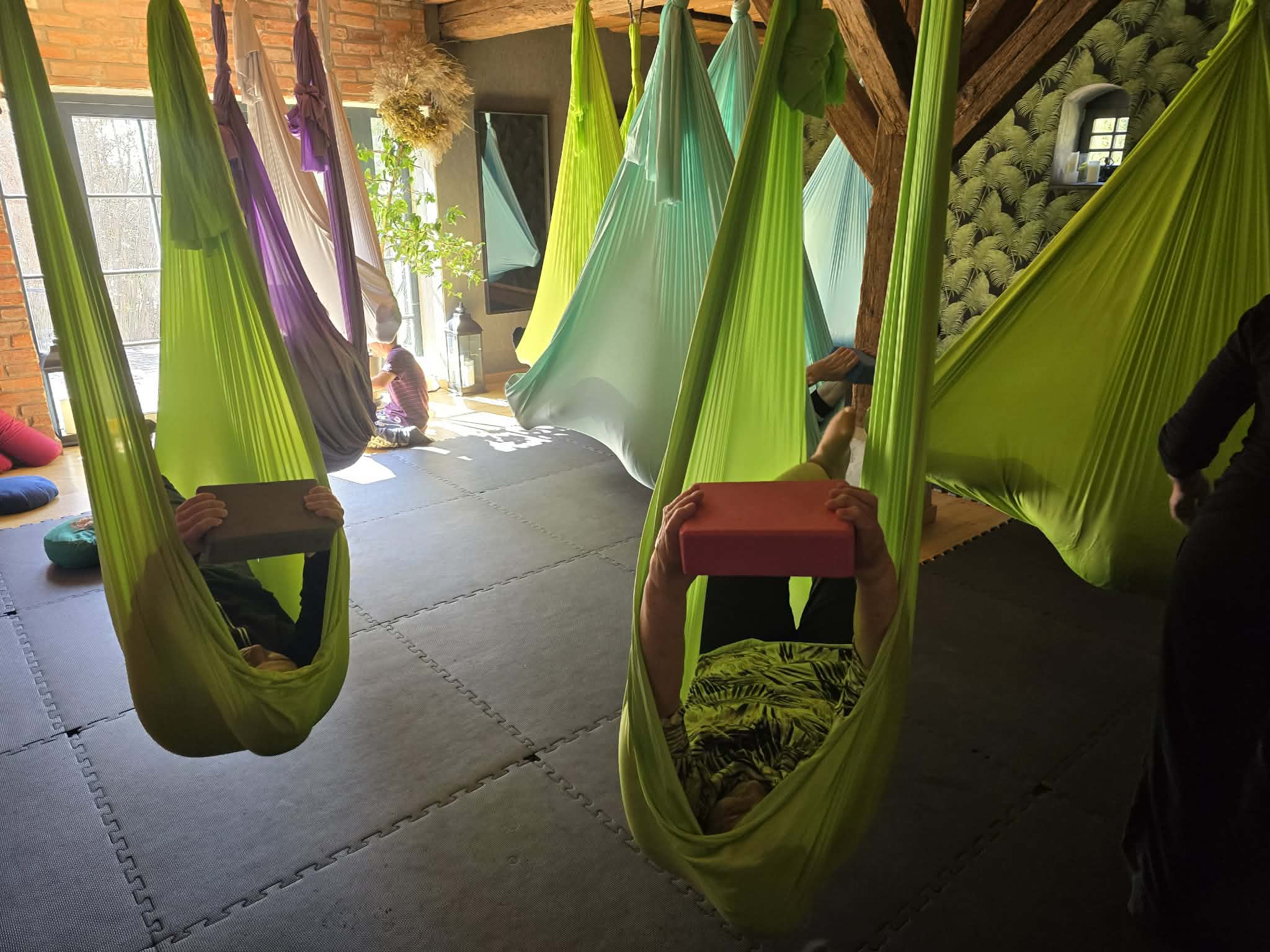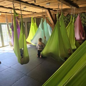 Zajęcia z aerial jogi w Hortus w Szczęsnem