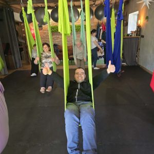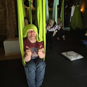 Po raz kolejny mogliśmy brać udział w zajęciach z aerial jogi w Hortus w Szczęsnem. Zajęcia były dla uczestników naszego Domu wyjątkowym i inspirującym doświadczeniem.